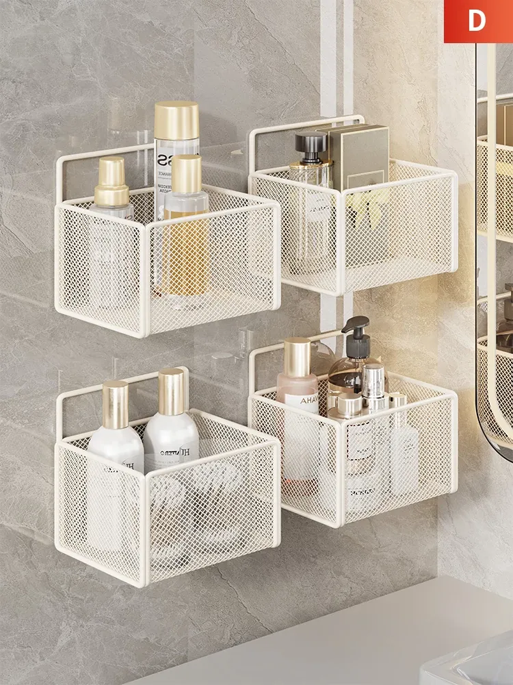 バスルーム壁掛け収納棚 - おしゃれで便利な洗面台・トイレ用のノーネイルフックバスケット!スペースを有効活用し、すっきりとした空間を演出します。