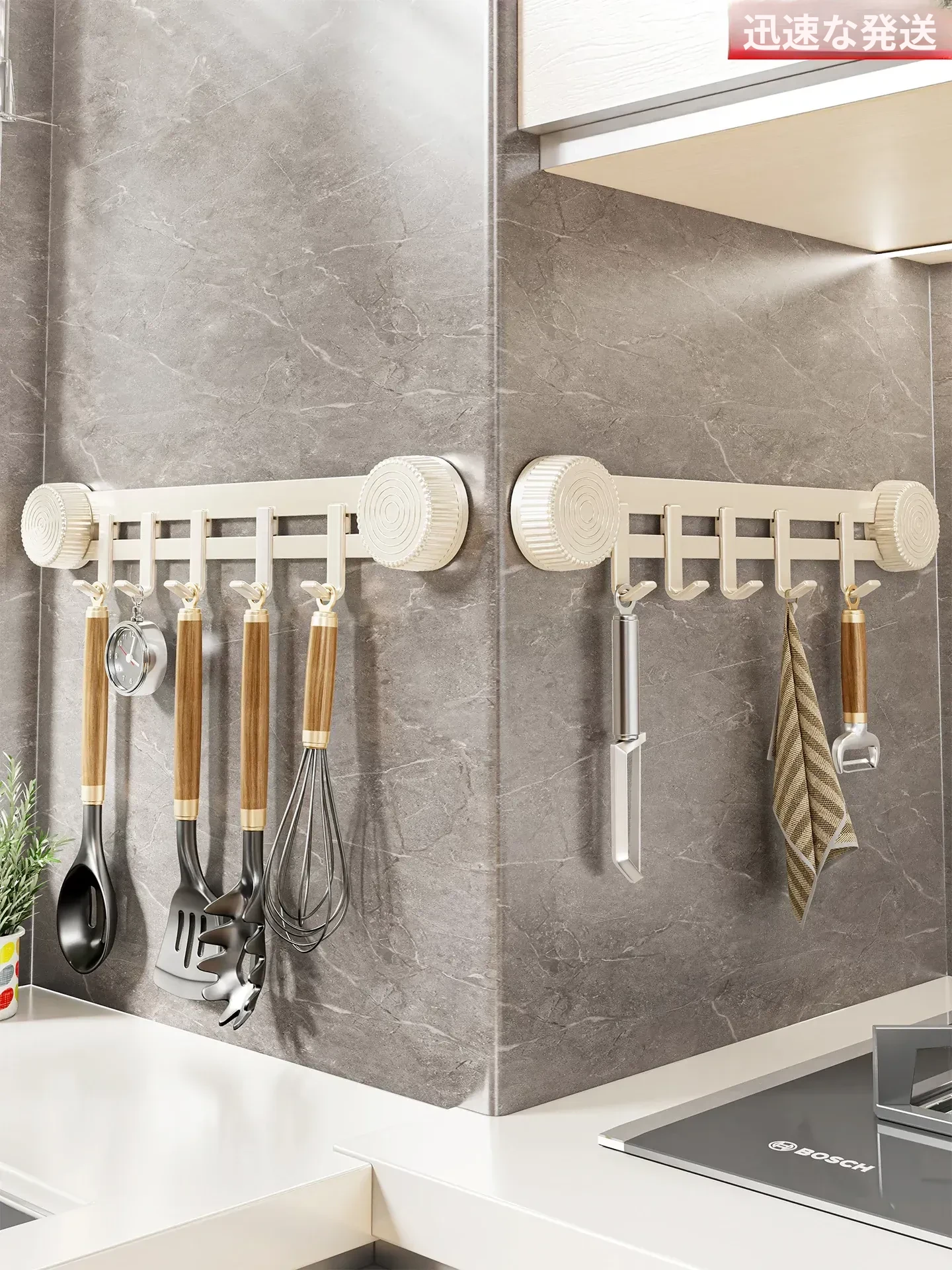キッチン用フック付き鍋具収納ラック - スプーンやヘラを整理!穴を開けずに簡単取り付け、吸盤式壁掛けデザインでスッキリ収納。おしゃれで便利なキッチンの強い味方!