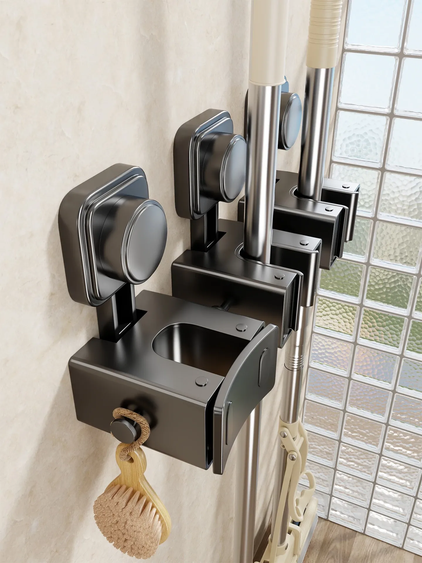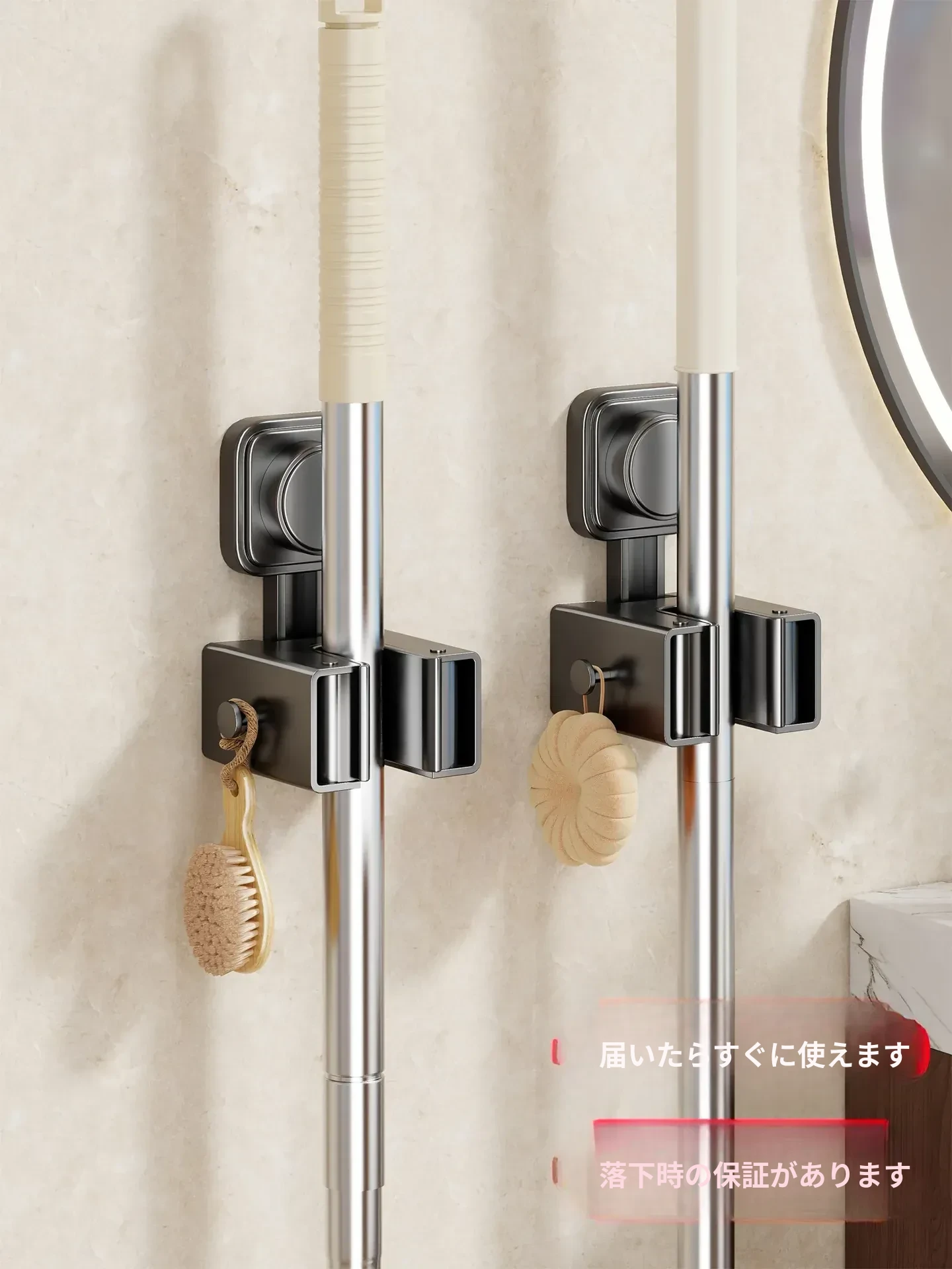 壁掛けモップホルダー - バスルームやトイレに最適!穴を開けずに簡単取り付け、吸盤でしっかり固定。すっきり収納で衛生的な空間を実現する便利アイテム!