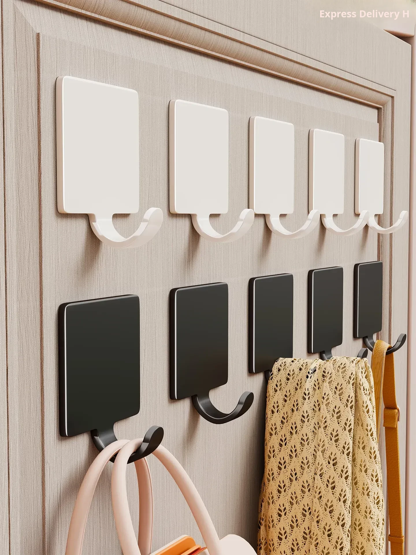 Strong Adhesive Towel Hooks - No Drill, Heavy-Duty Wall-Mounted Hooks for Kitchen and Bathroom, Seamless One-Row Design for Door and Wall, Easy Installation Without Marks