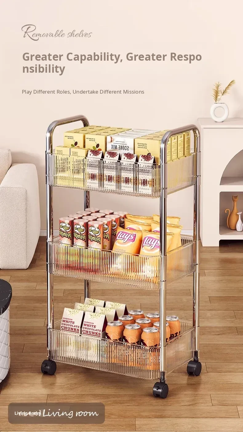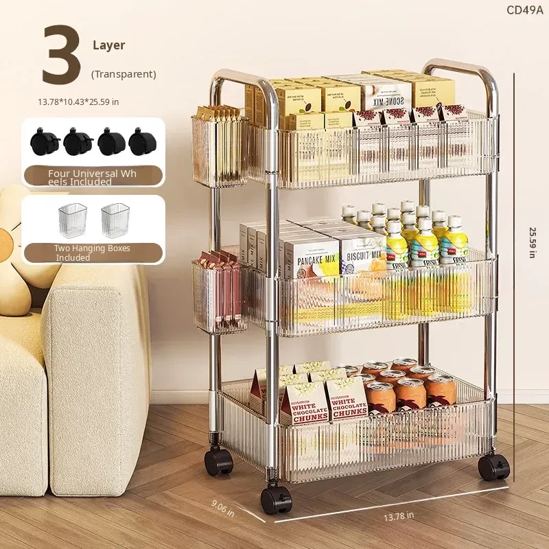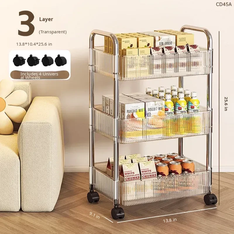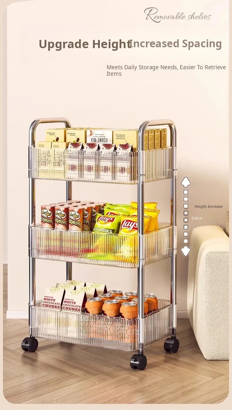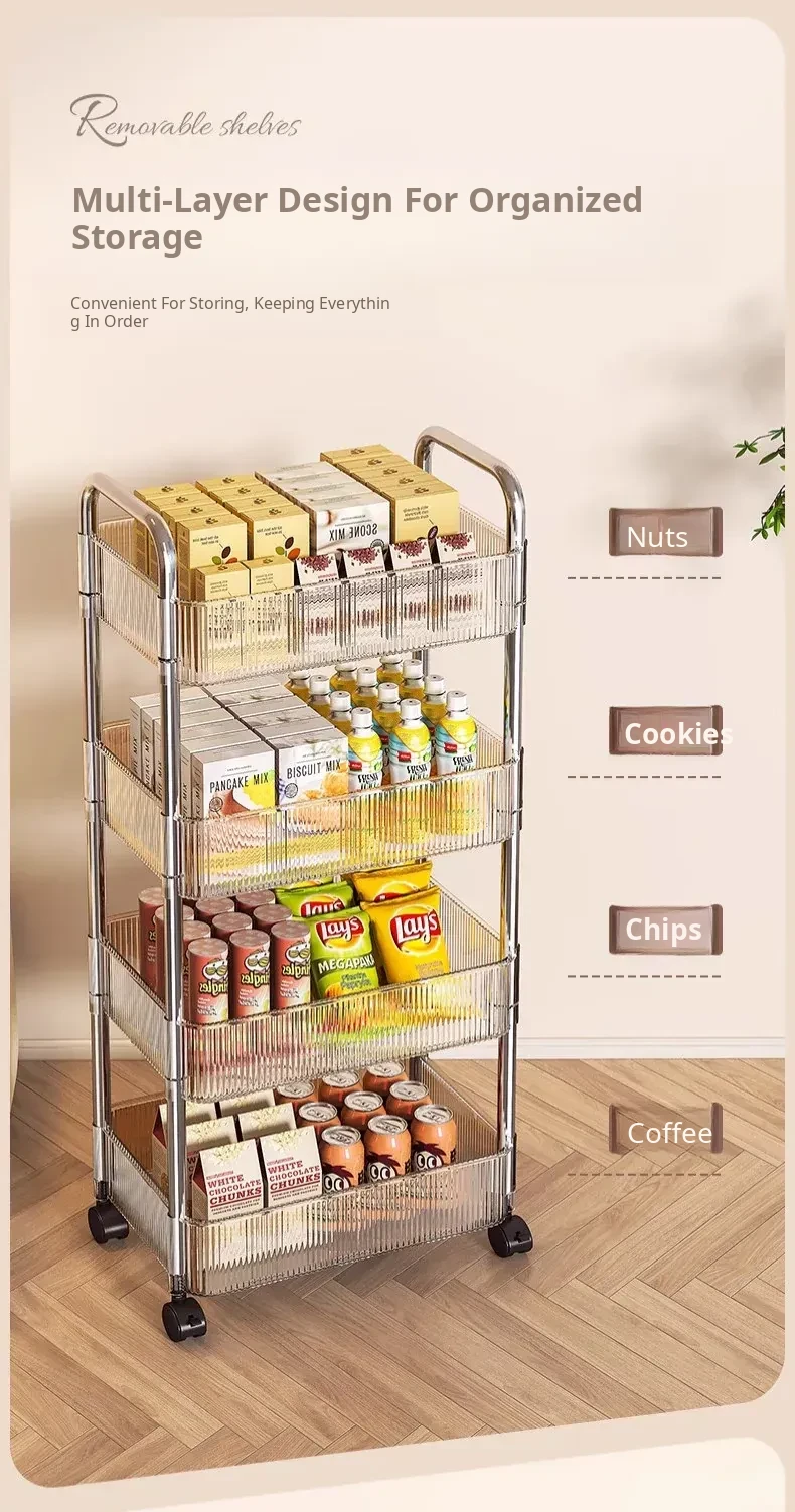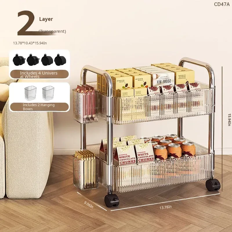 Acrylic Snack Trolley - Mobile Multi-Layer Storage Rack for Dorm, Bedroom, and Living Room - Perfect for Organizing Cosmetics and Snacks!