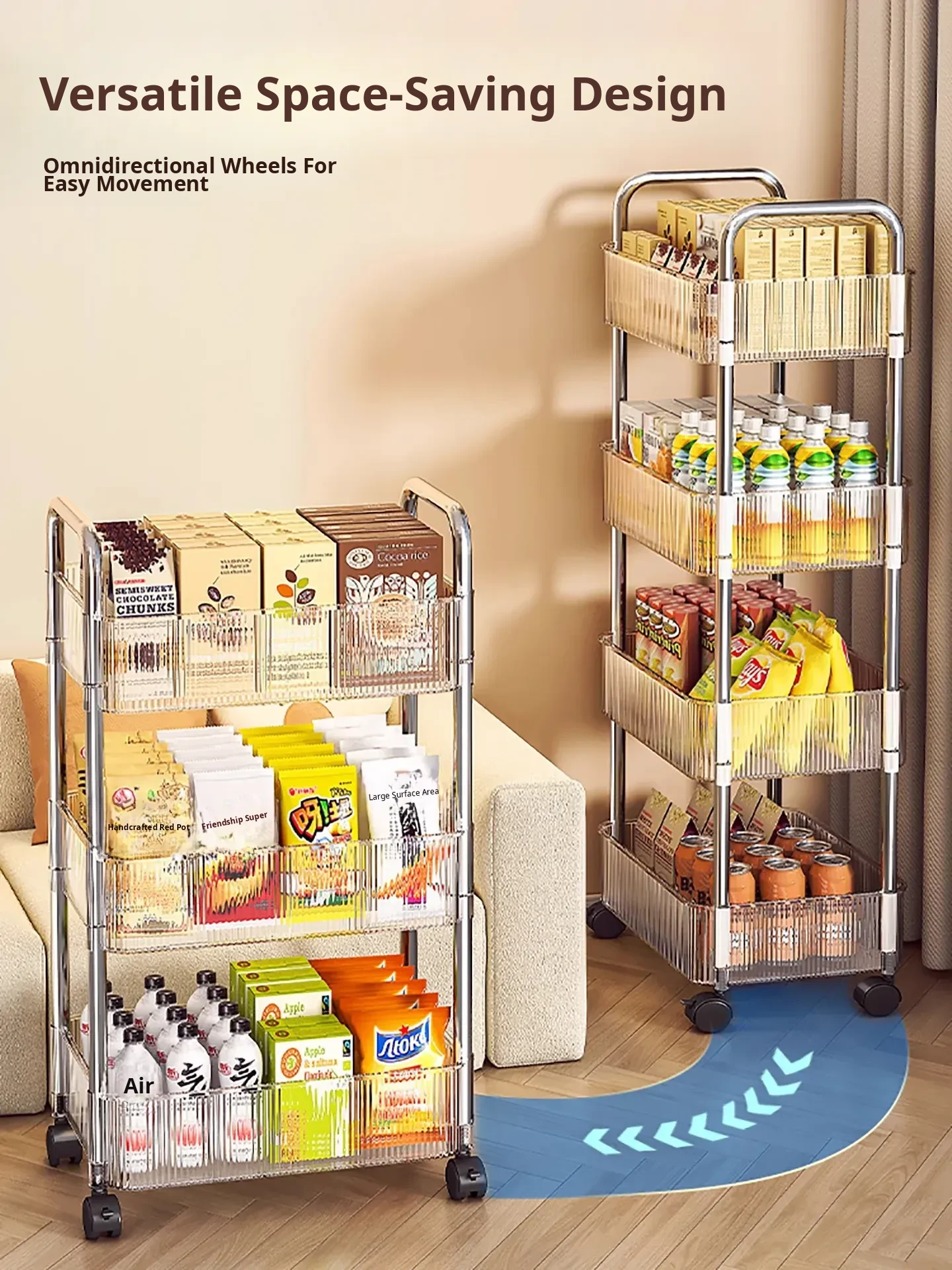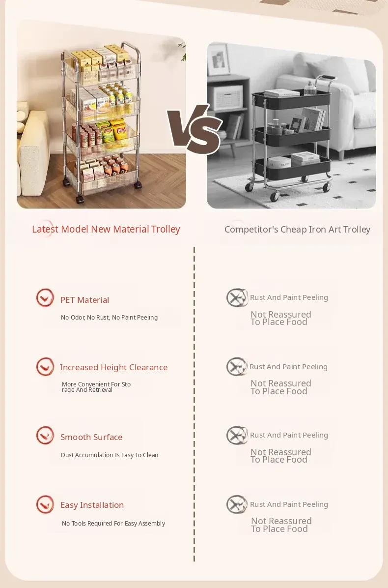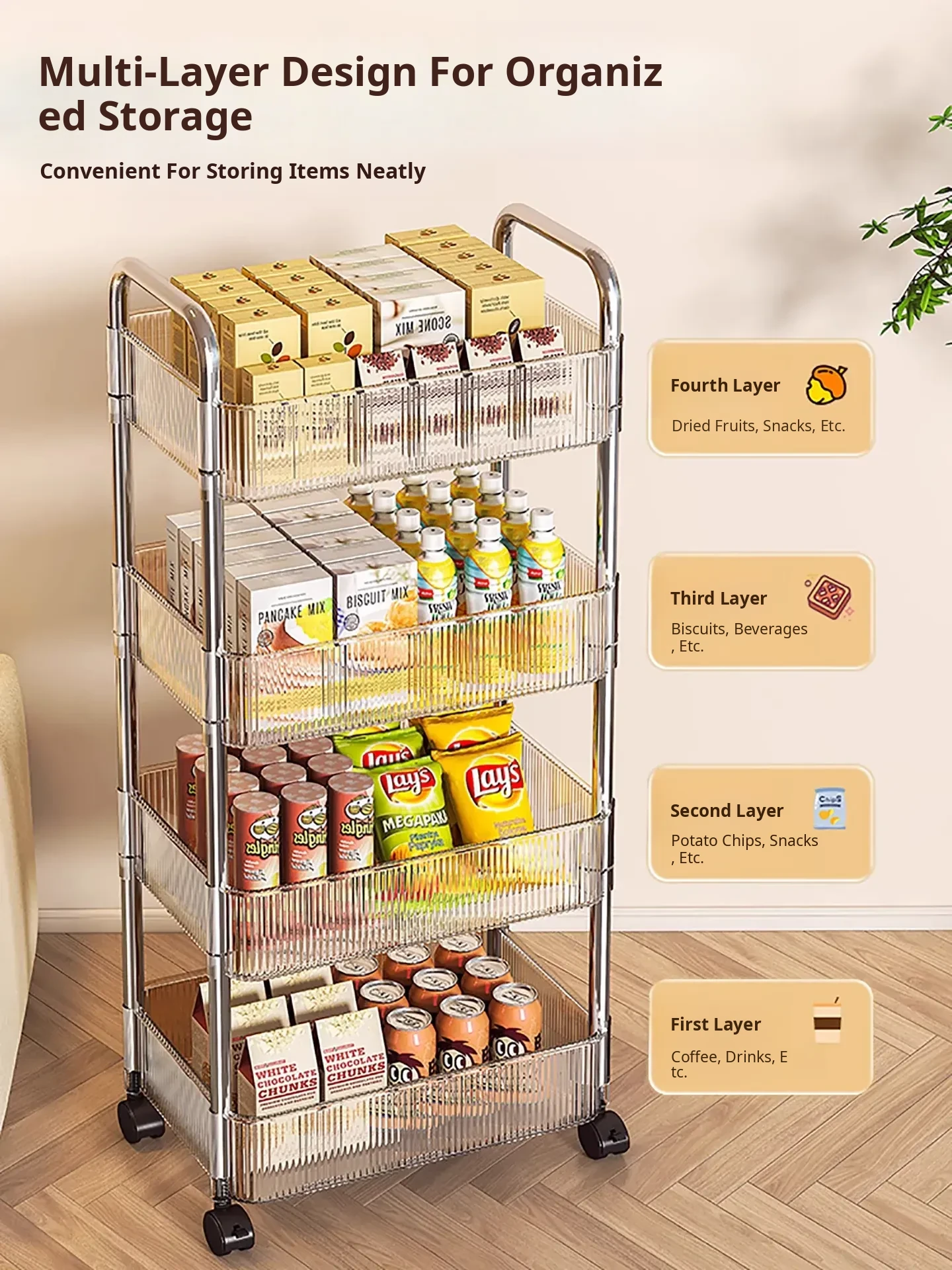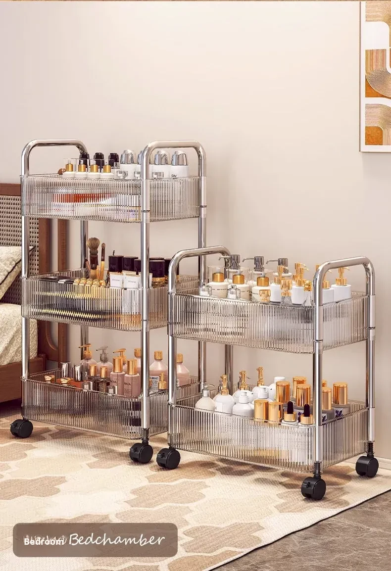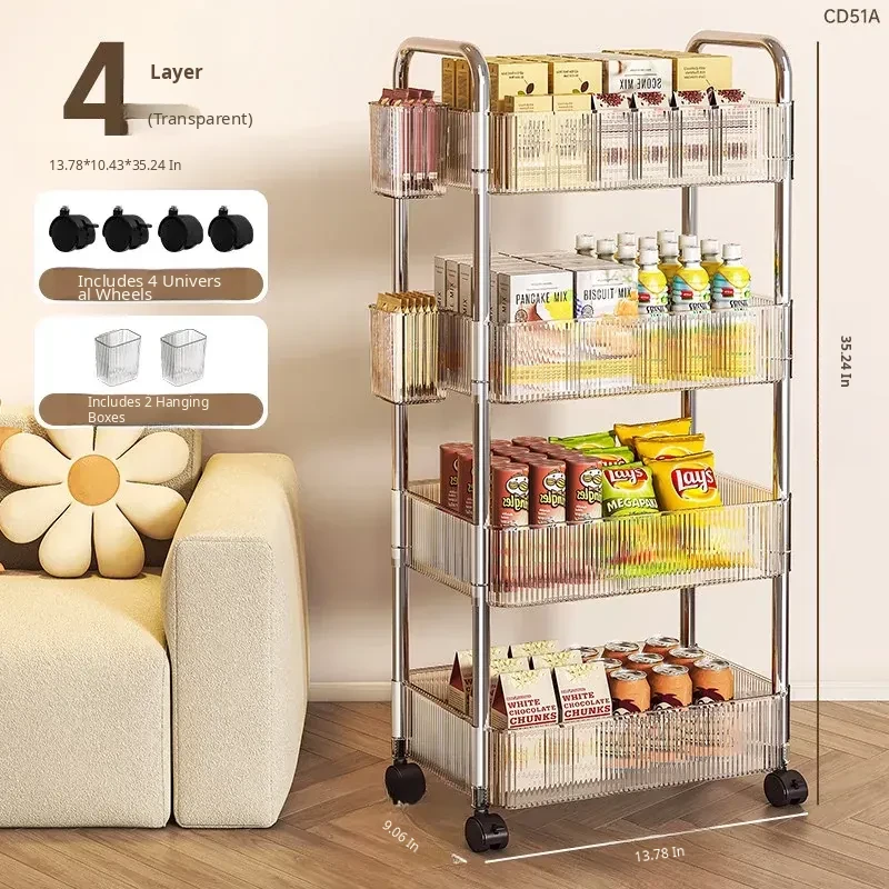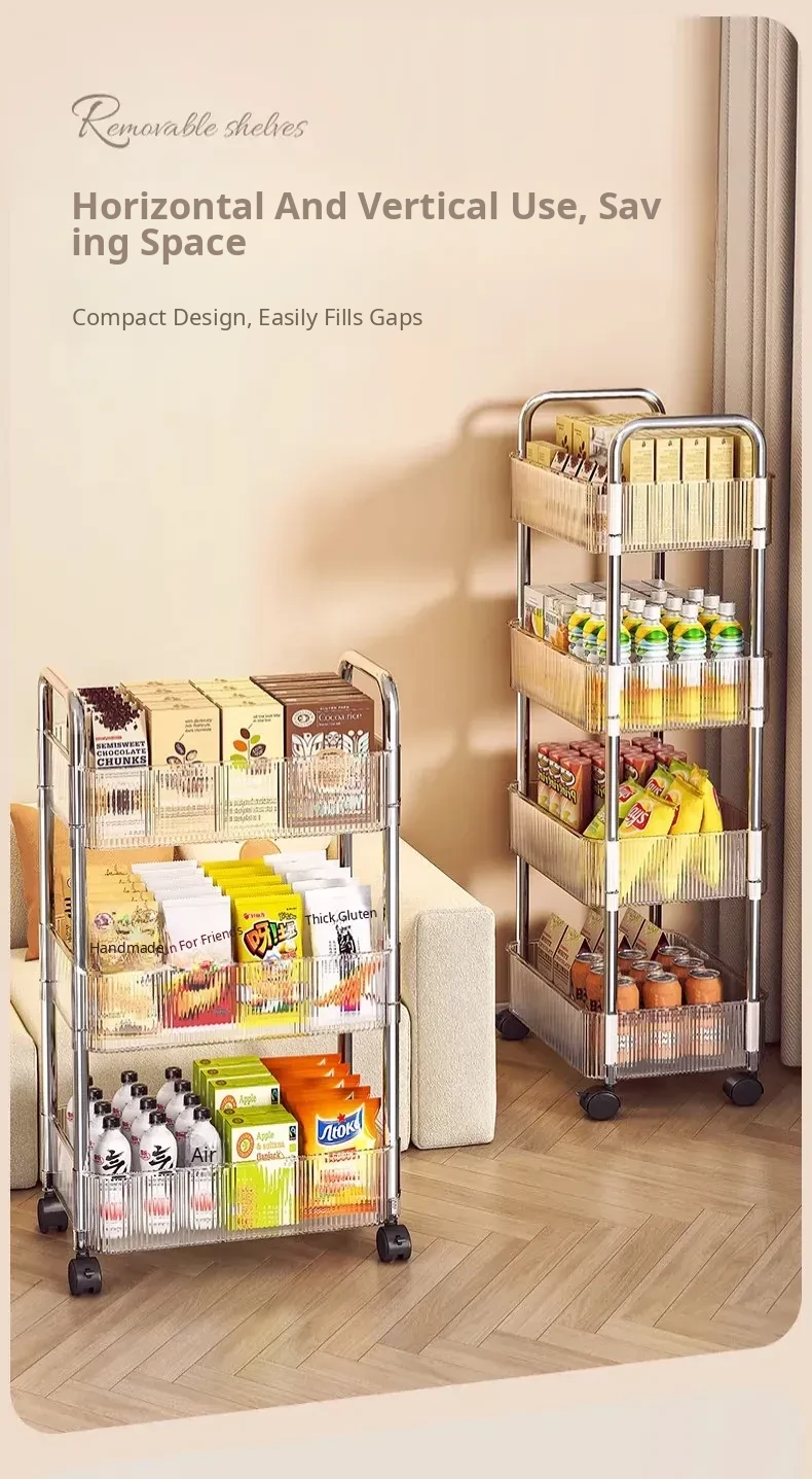 Acrylic Snack Trolley - Mobile Multi-Layer Storage Rack for Dorm, Bedroom, and Living Room - Perfect for Organizing Cosmetics and Snacks!