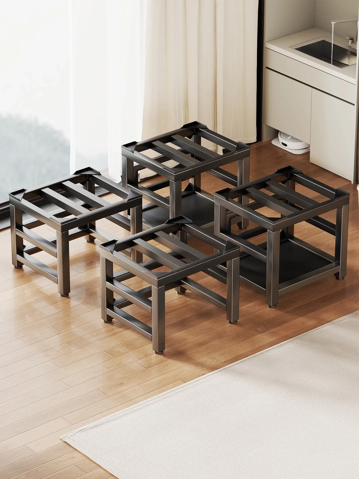 Adjustable Washing Machine Stand - Anti-Vibration Elevated Base for Front-Load Washers and Refrigerators, Mobile Storage Rack for Enhanced Stability and Convenience