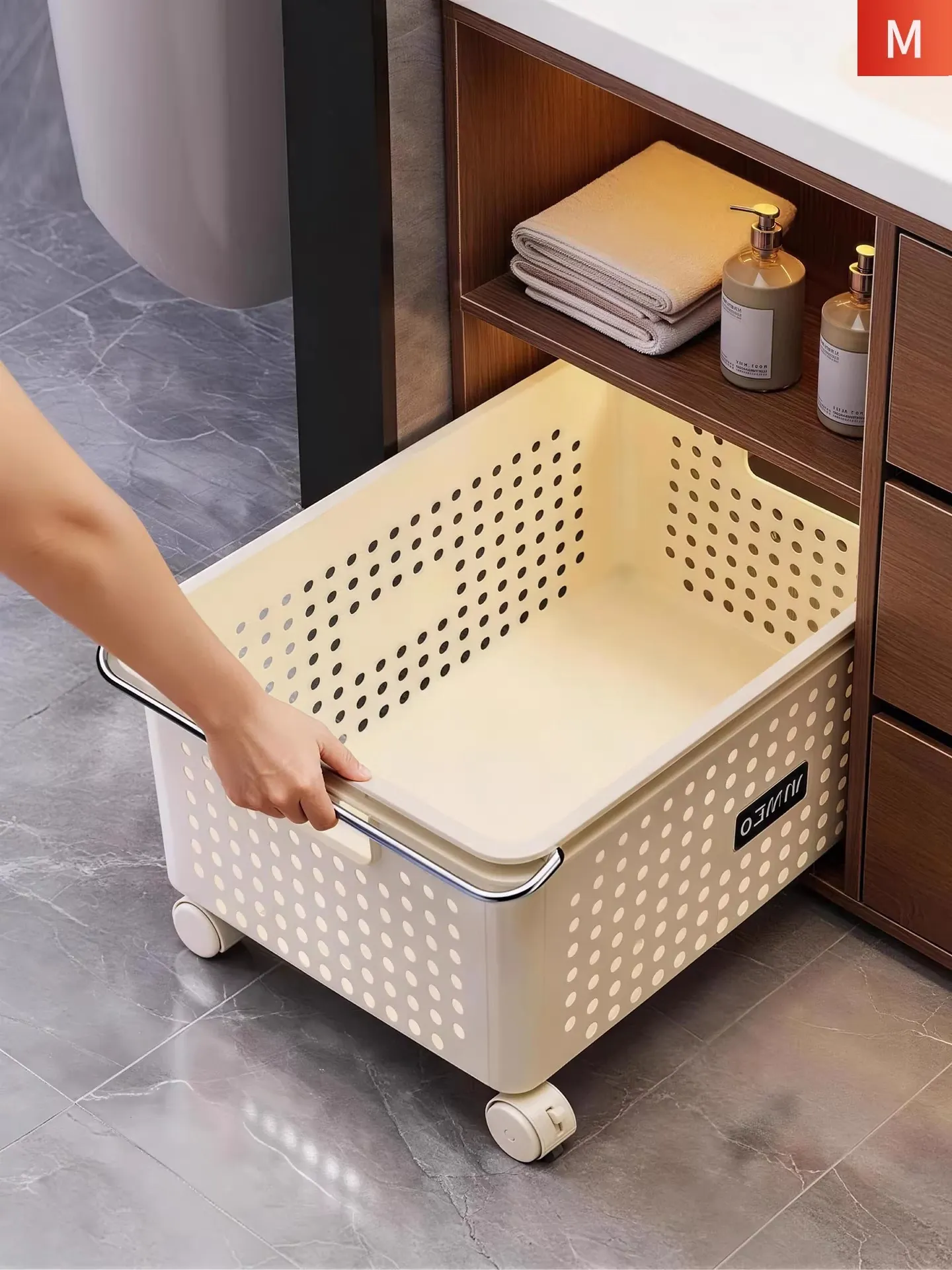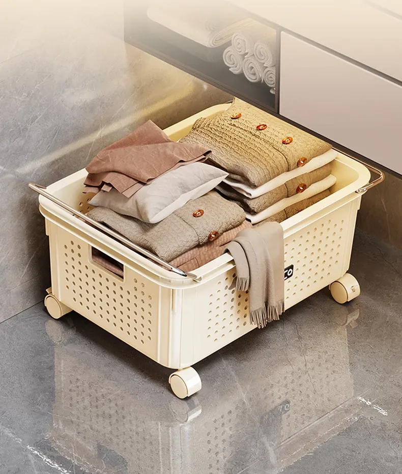 Bathroom Cabinet Under-Sink Storage Shelf with Laundry Basket - Portable Organizing Bin for Home, Ideal for Laundry Room and Bathroom Sink, Perfect for Storing Detergents and Essentials