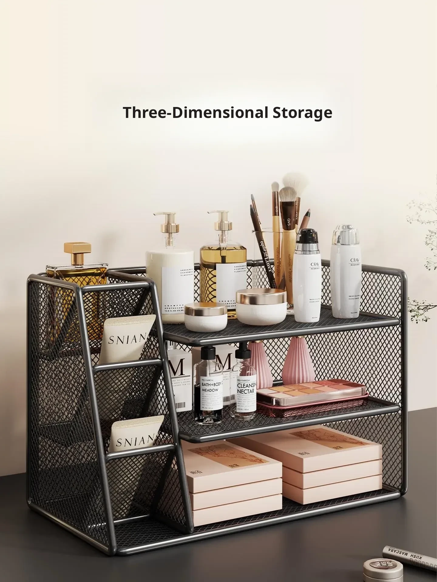 Cosmetic Organizer Storage Box - Stylish Makeup Holder for Lipsticks and Skincare Products, Perfect for Student Dorms and Desktop Vanity Organization