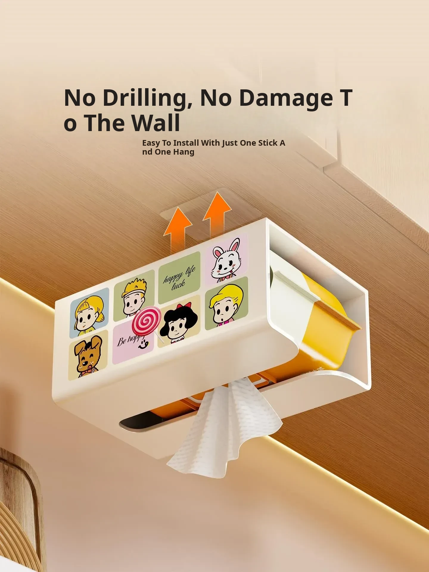Creative Wall-Mounted Tissue Box - No-Drill, Seamless Design for Home & Kitchen - Stylish Tissue Holder for Living Room and Easy Storage Solution