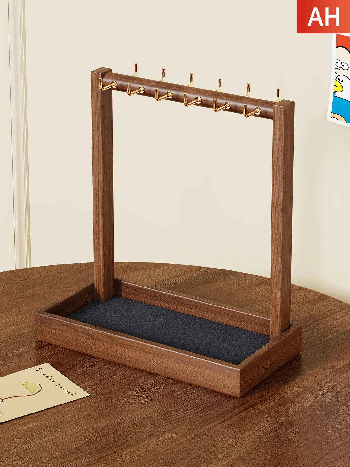 Twelve Hooks [Black Felt] Solid Wood Style