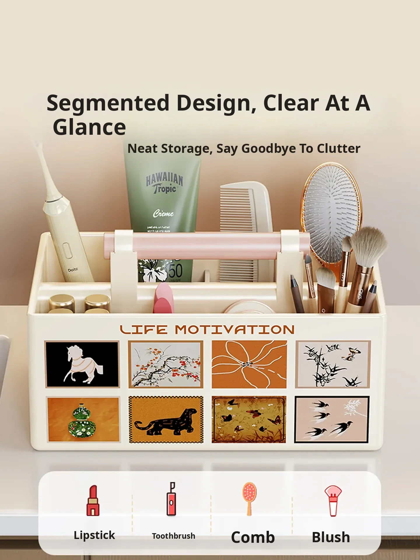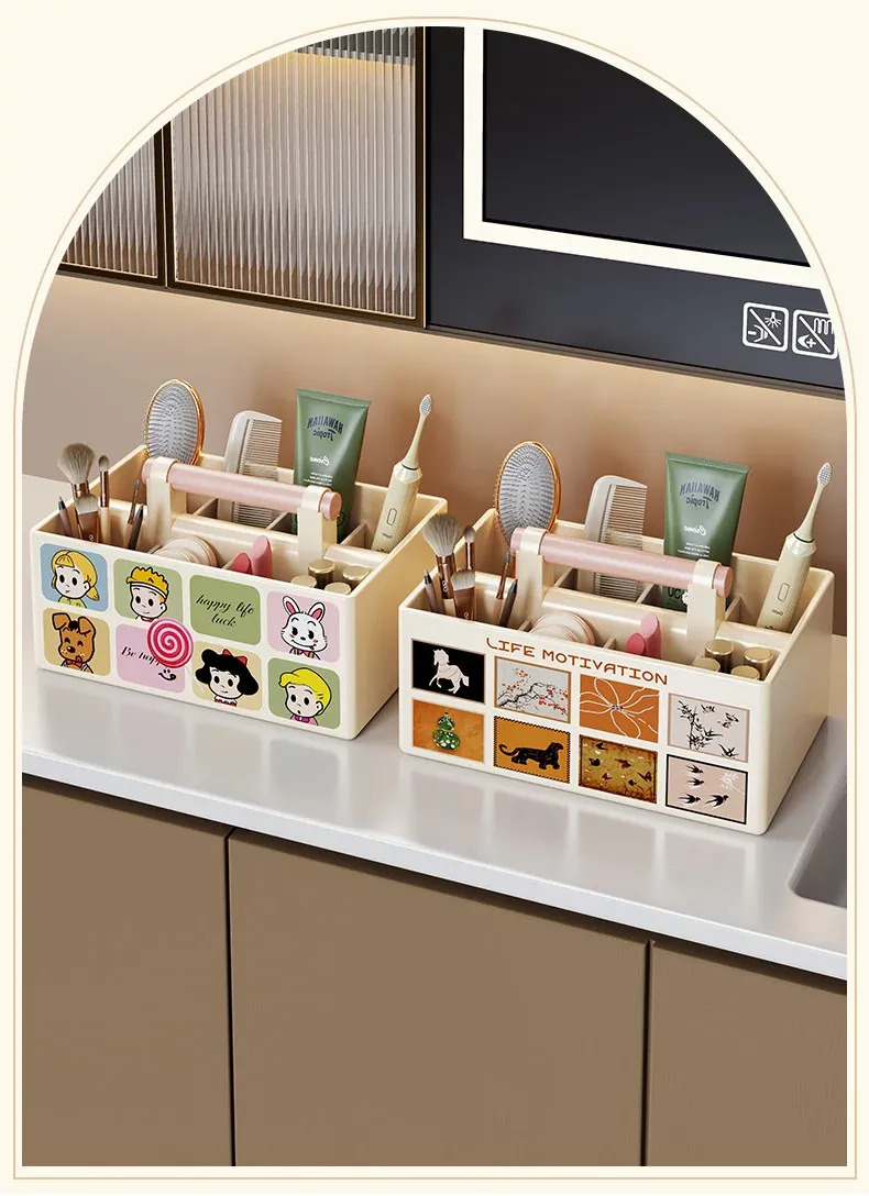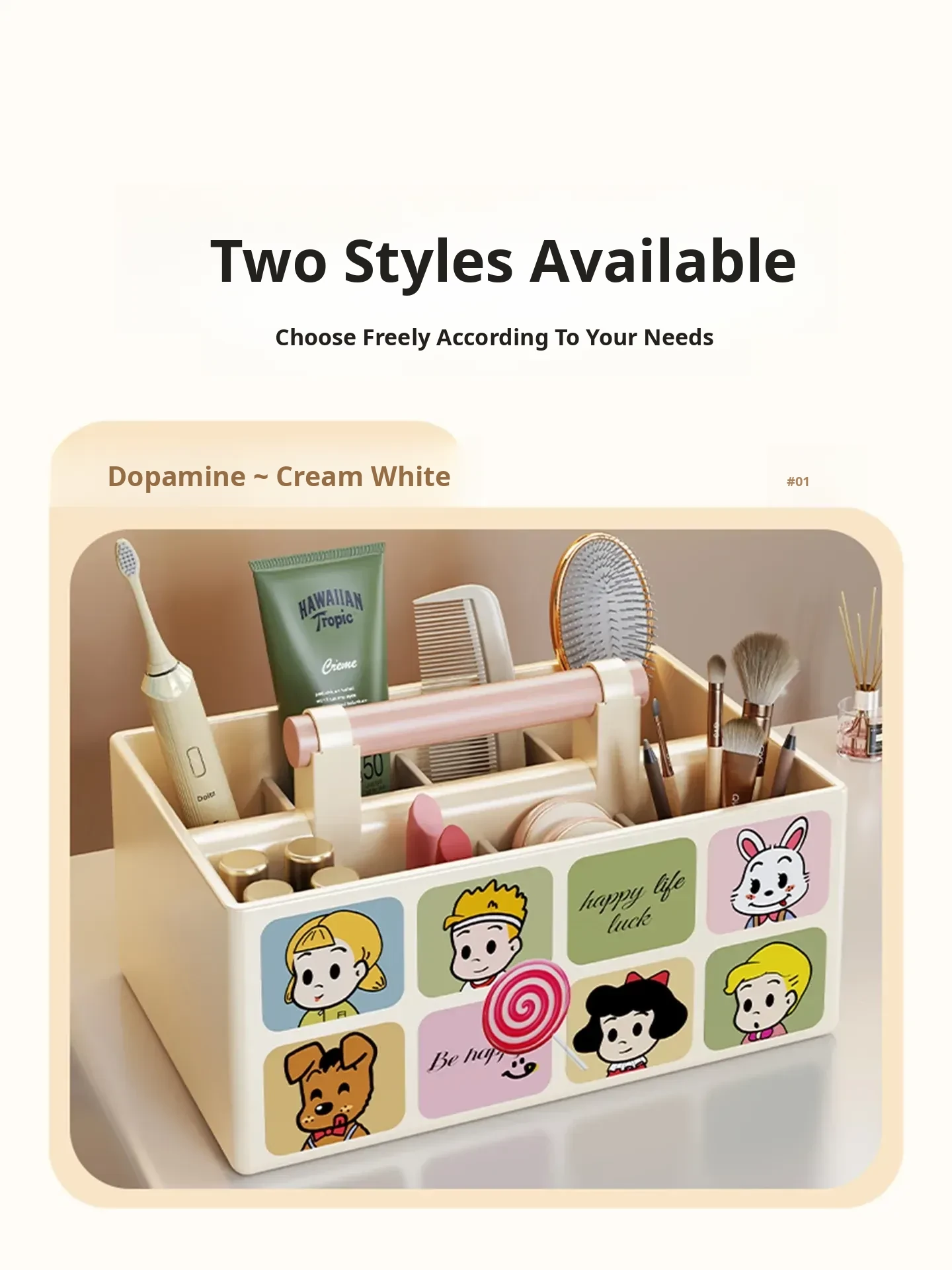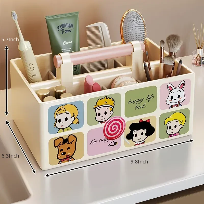Desktop Organizer Box with Dividers for Cosmetics - Multi-functional Storage Basket for Home, Snacks, Dorms, and Kitchen Organization