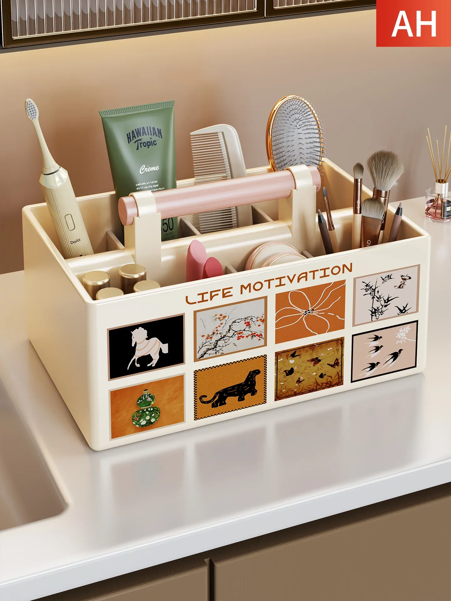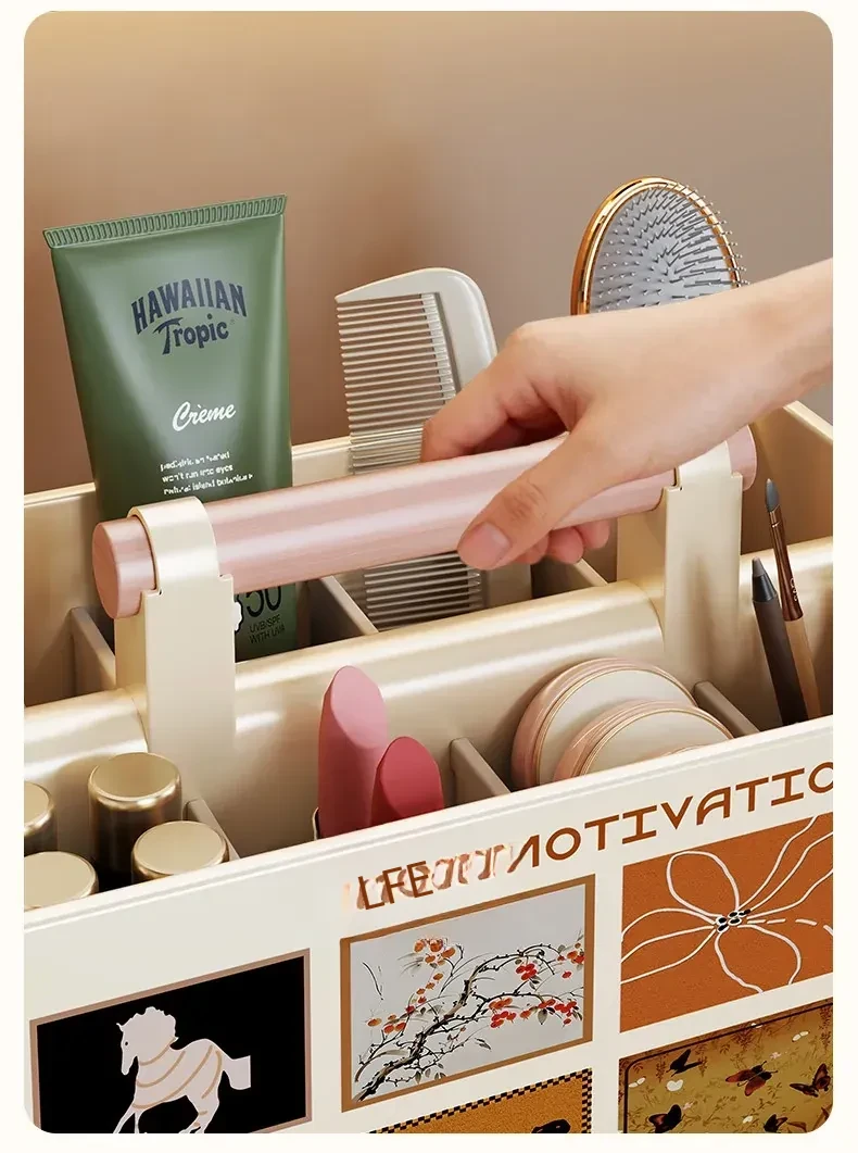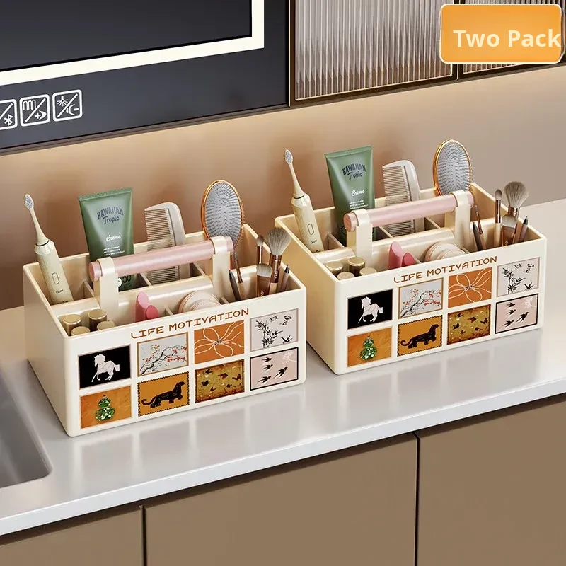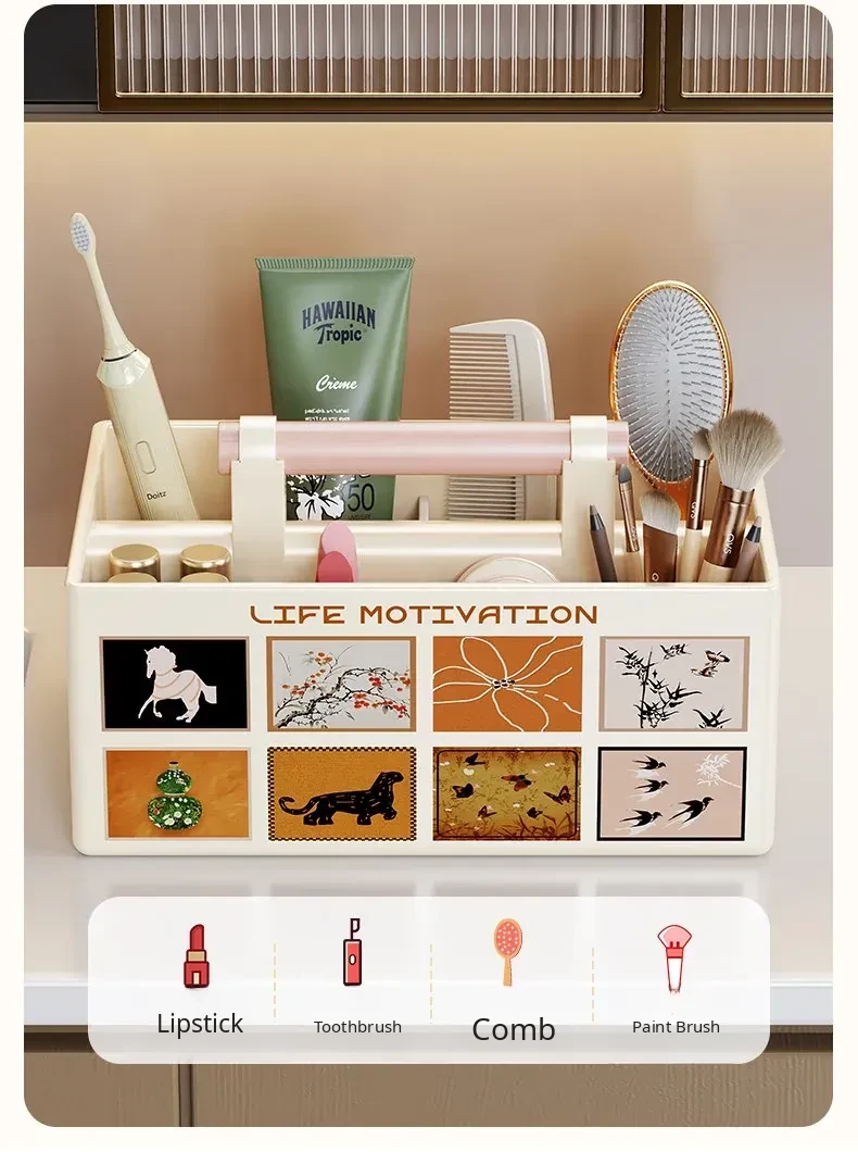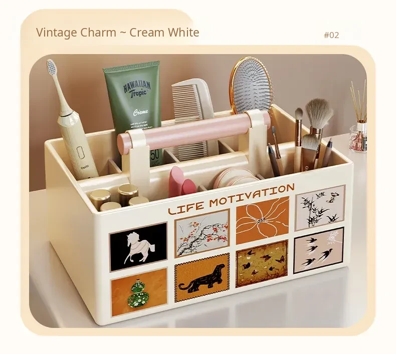 Desktop Organizer Box with Dividers for Cosmetics - Multi-functional Storage Basket for Home, Snacks, Dorms, and Kitchen Organization