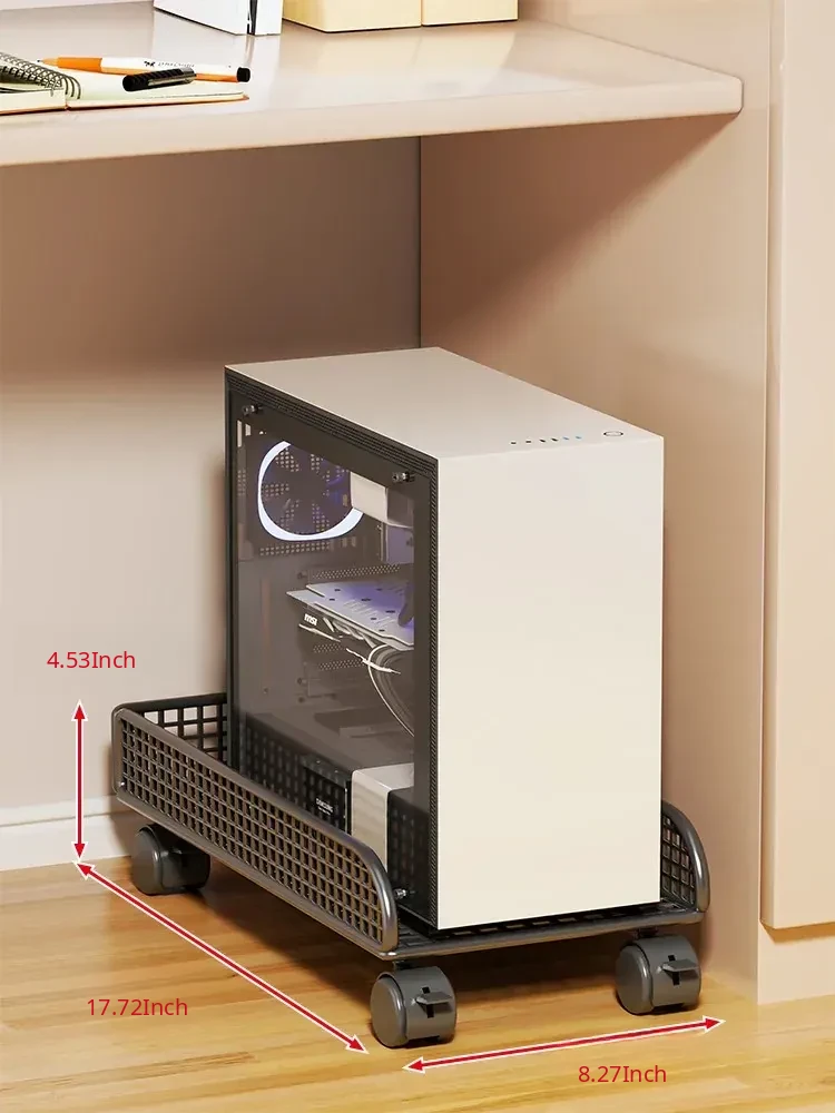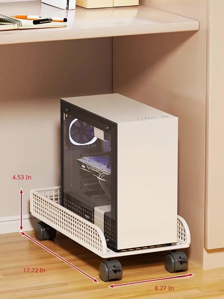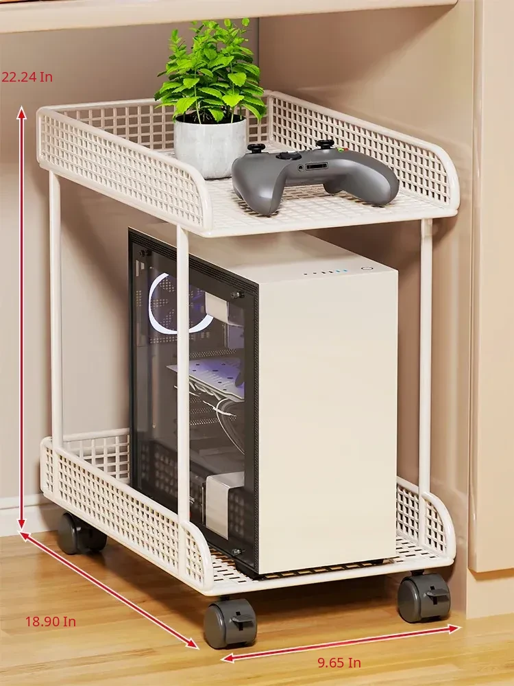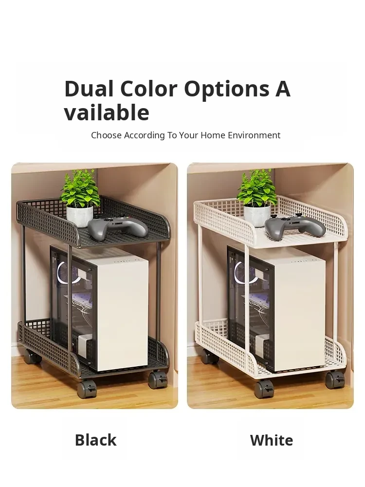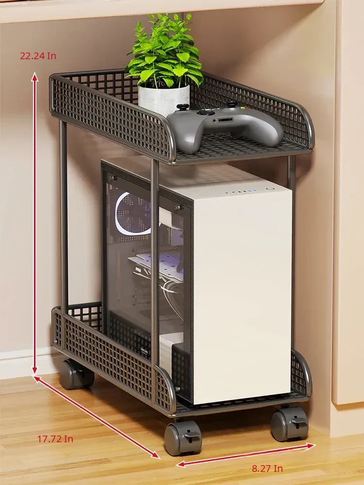 Dual-Layer Desktop PC Stand with Rolling Base - Space-Saving Storage Rack for Computer Tower and Accessories, Ideal for Home and Office Use