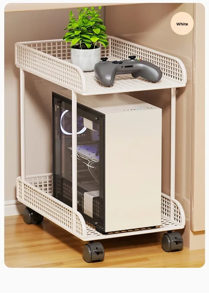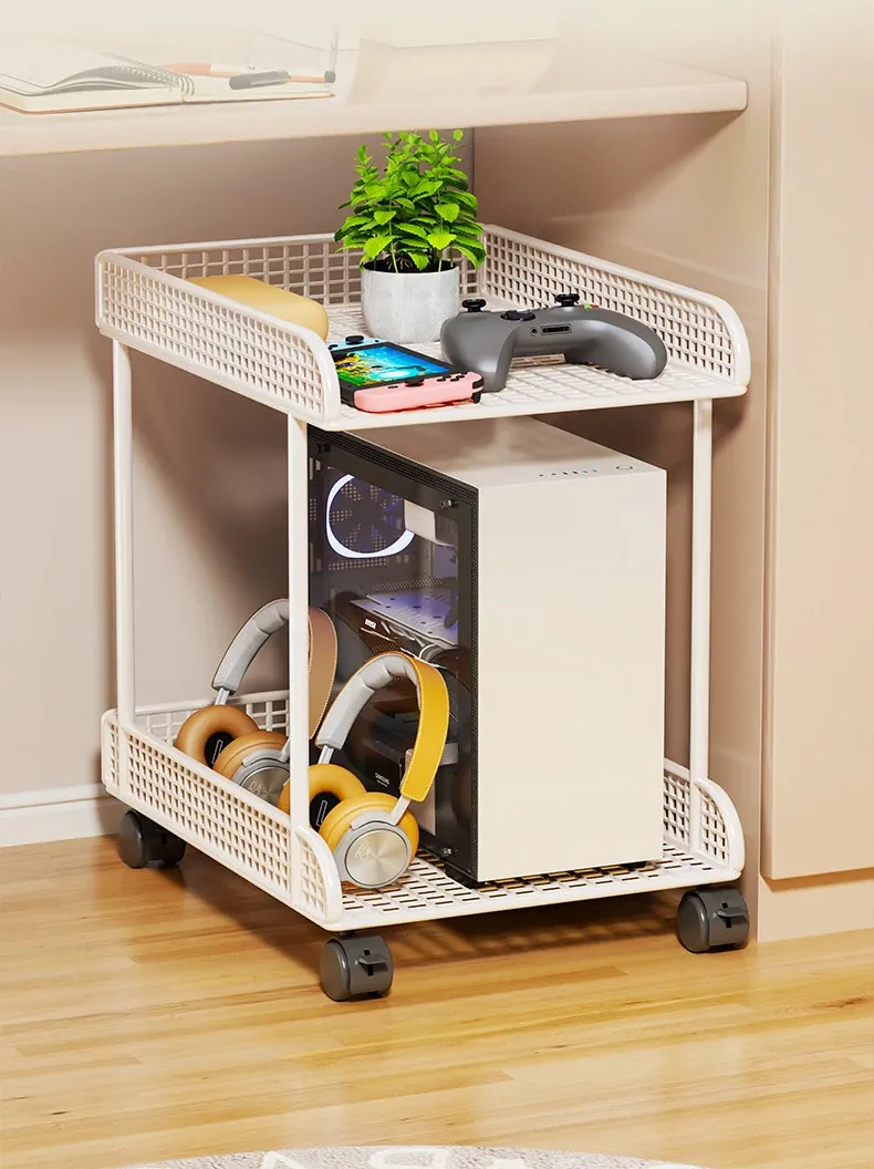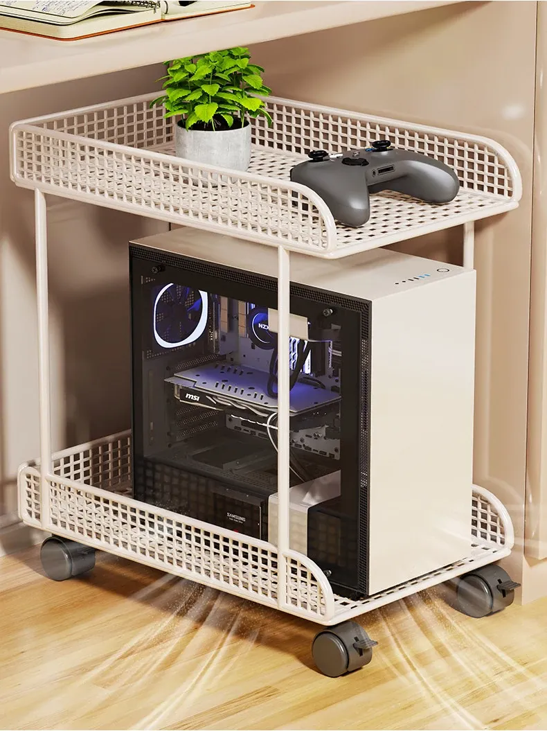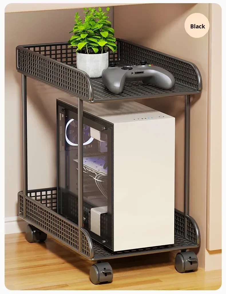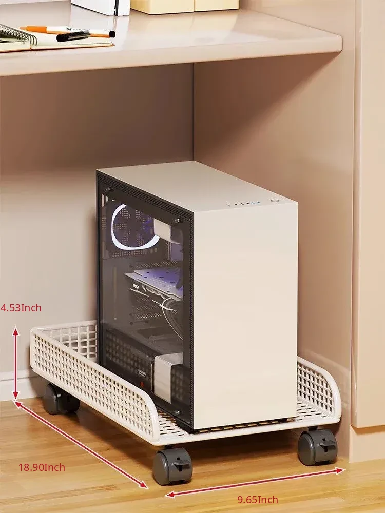 Dual-Layer Desktop PC Stand with Rolling Base - Space-Saving Storage Rack for Computer Tower and Accessories, Ideal for Home and Office Use