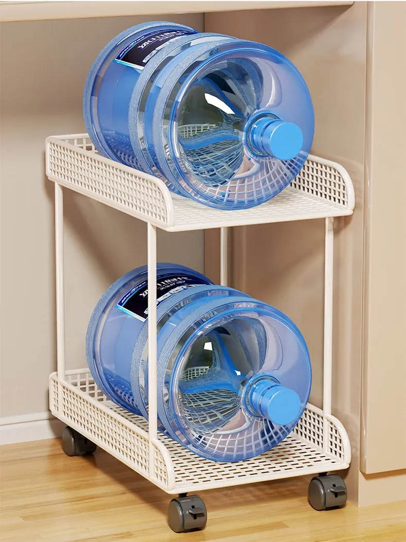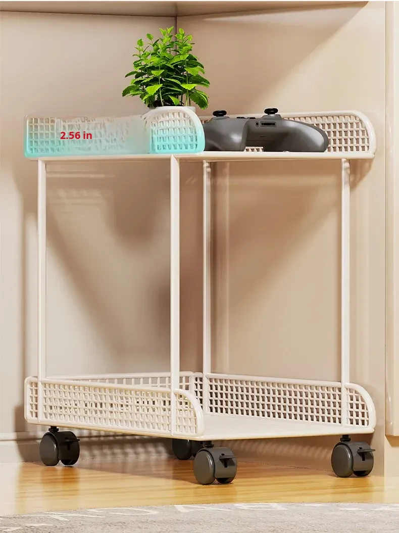 White Small Double-Layer Main Rack [Mobile with Brakes]
