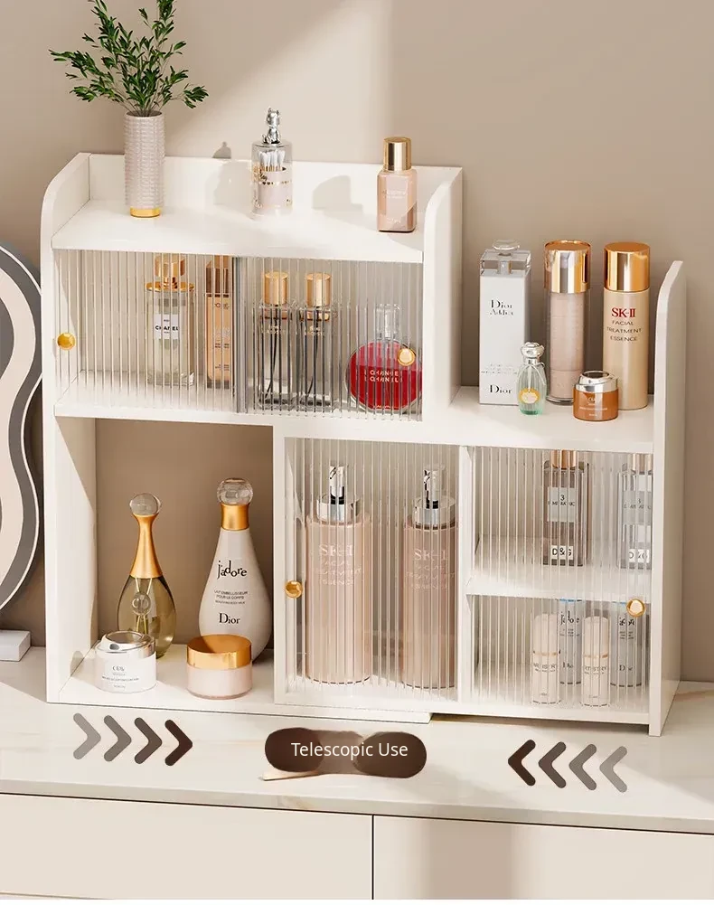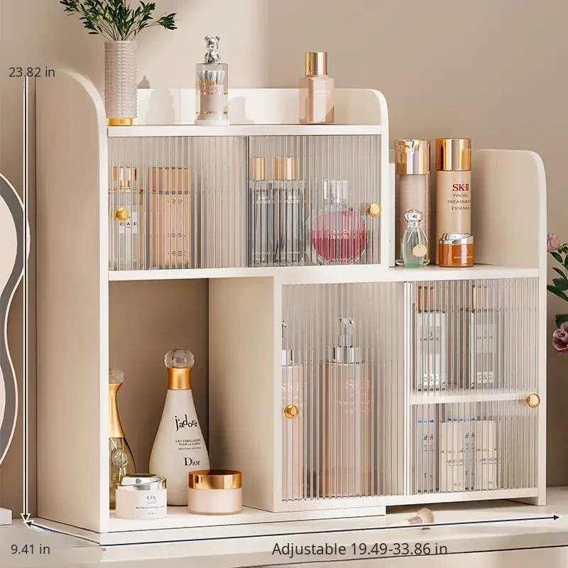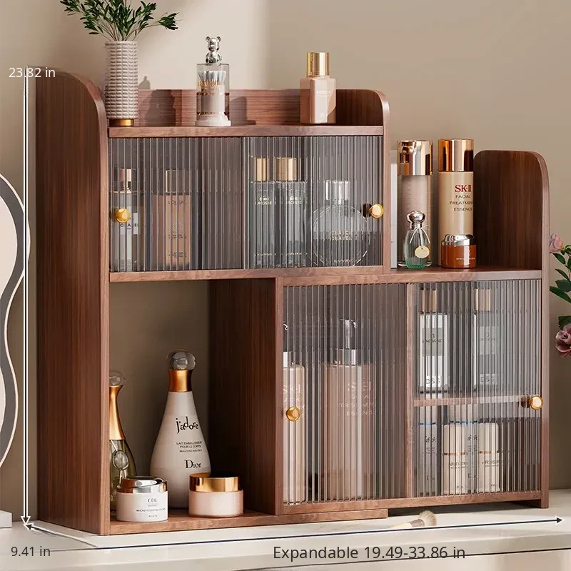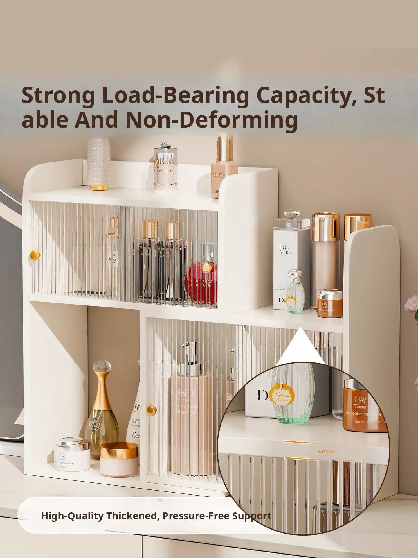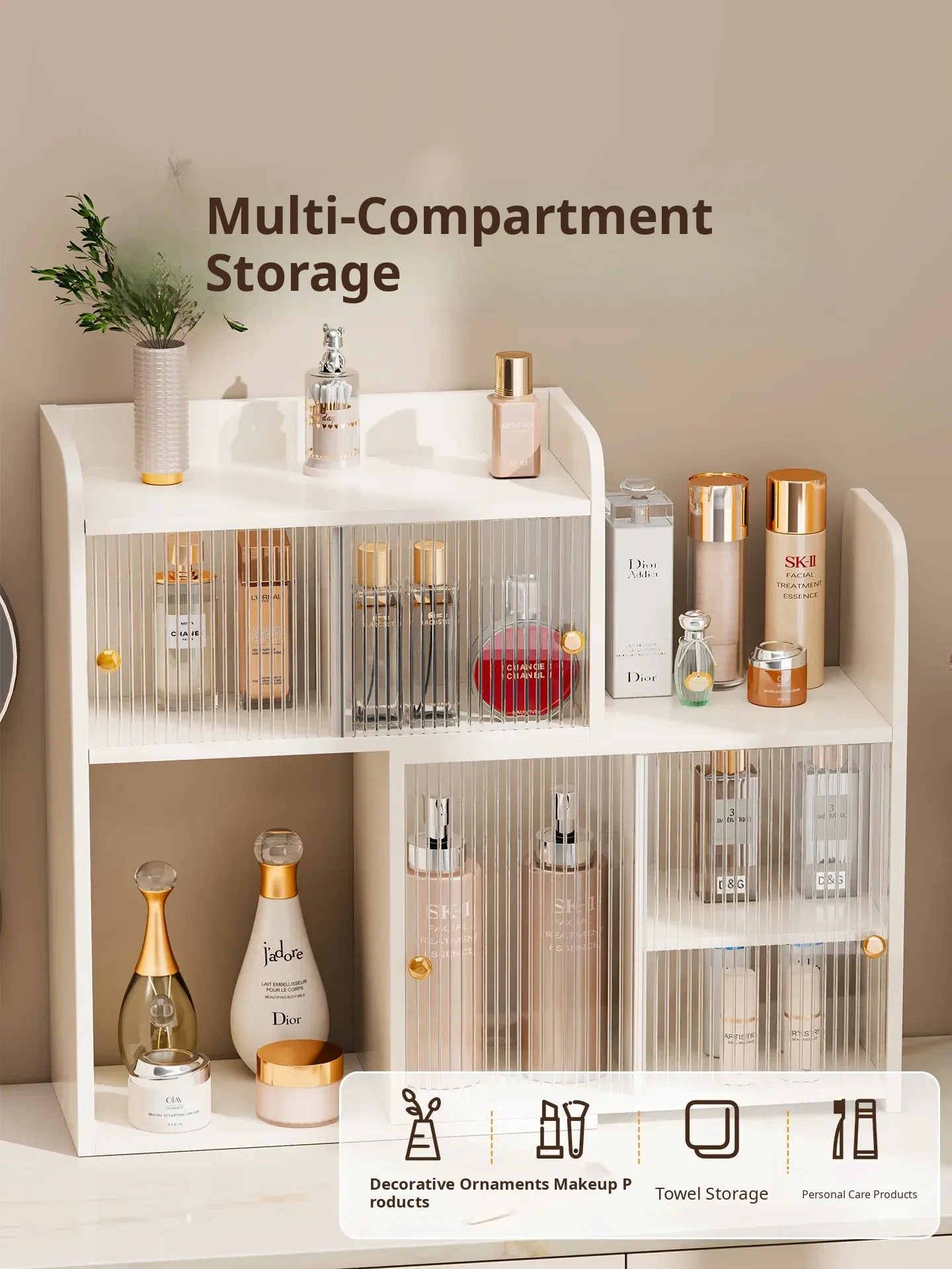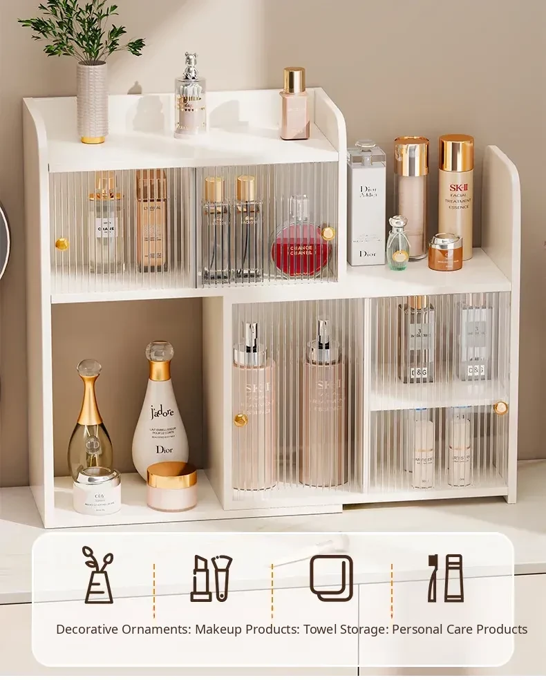 Elegant Corner Desktop Makeup Organizer - Stylish Vanity Storage for Perfumes and Skincare Products, Featuring a Chic Cup Holder for Your Countertop