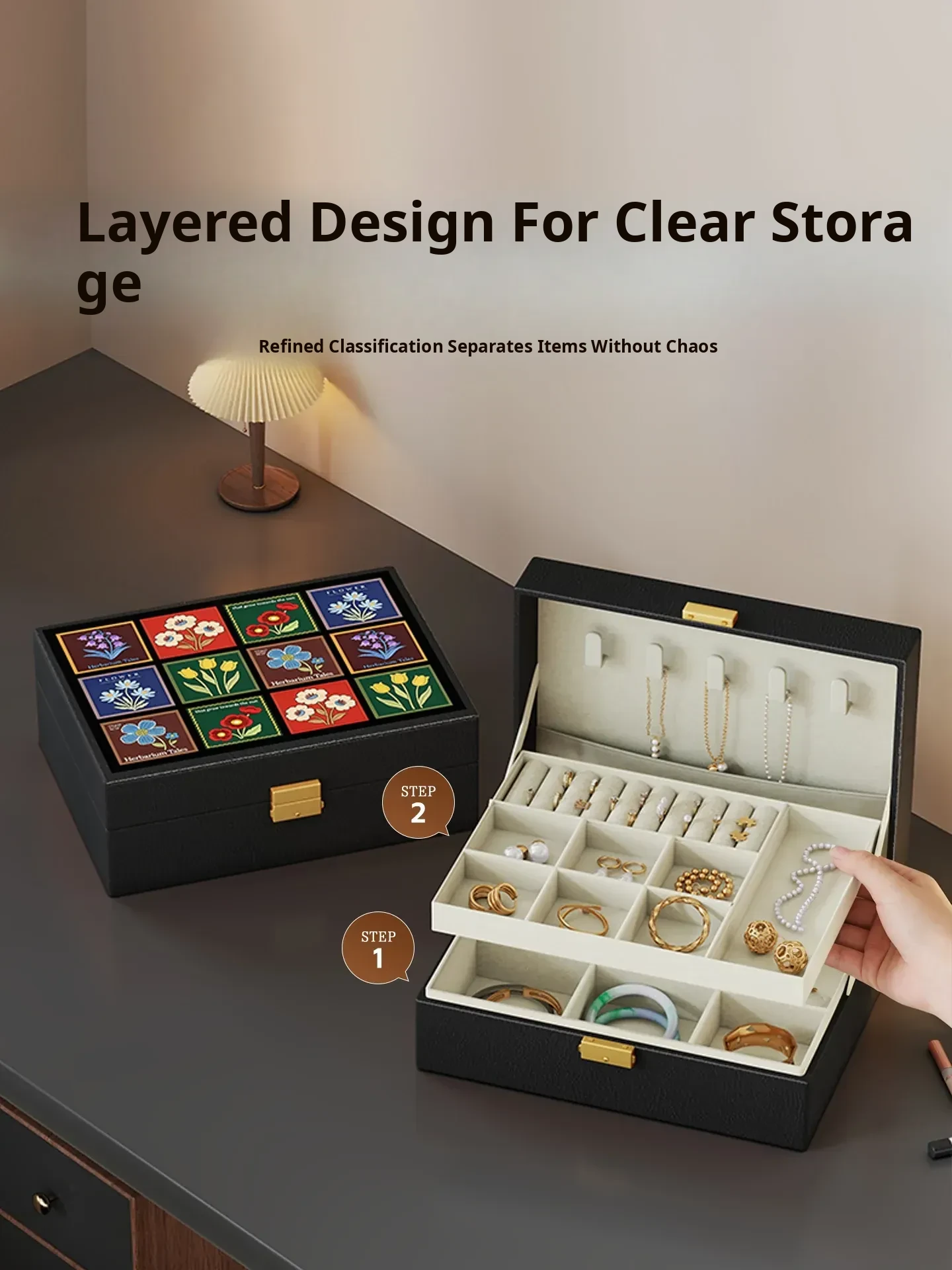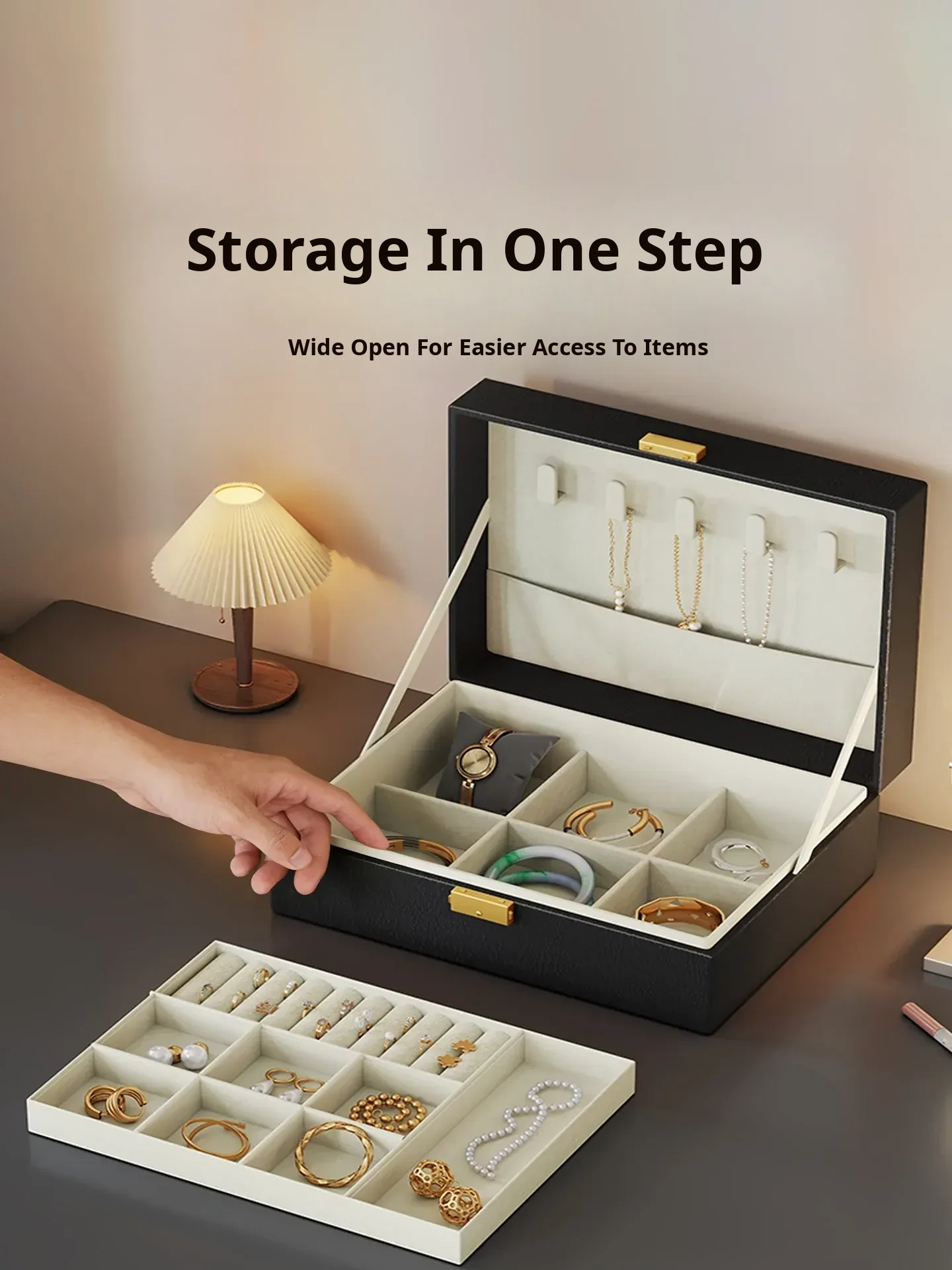 Elegant Jewelry Box - Spacious Organizer for Earrings, Necklaces, Rings, and Accessories - High-Quality Storage Solution for Gold and Precious Gems