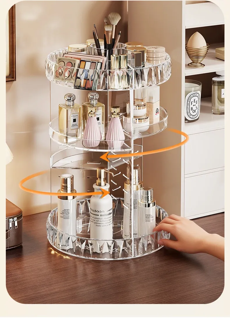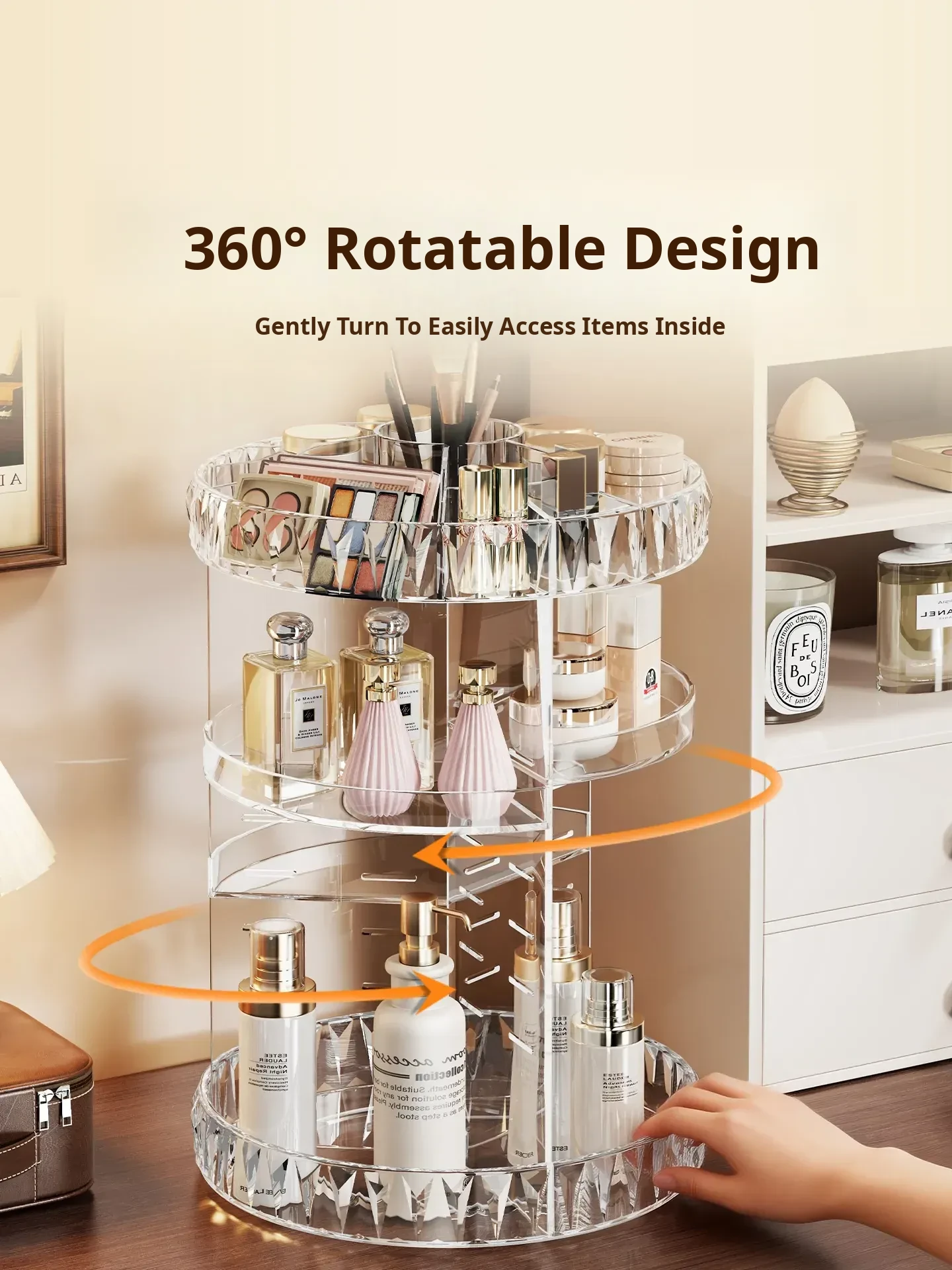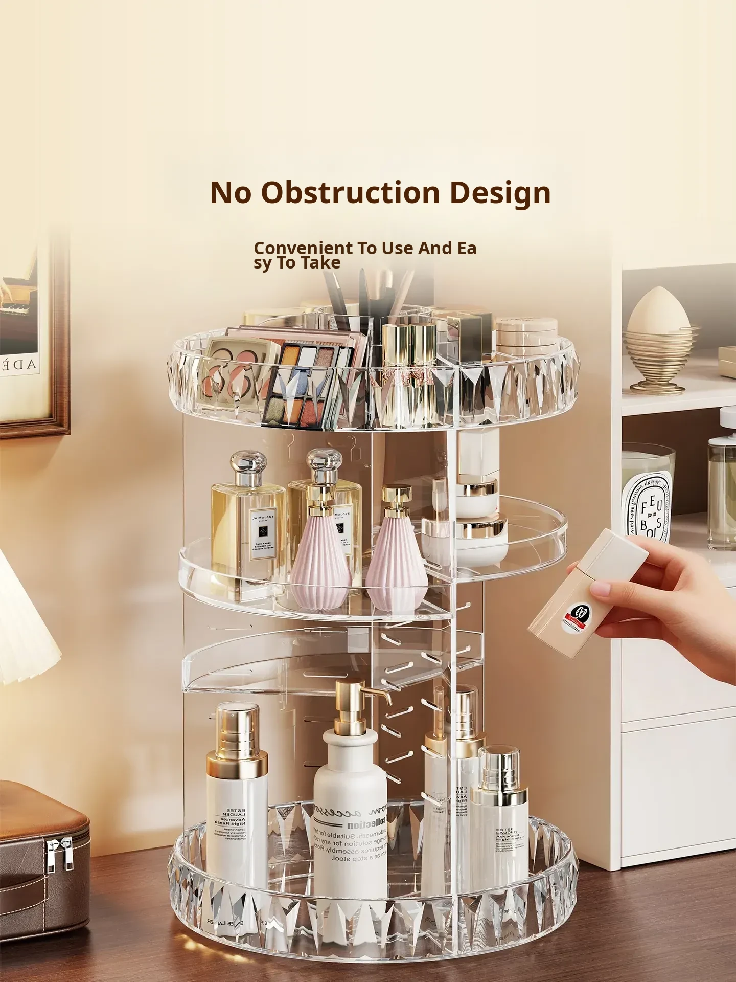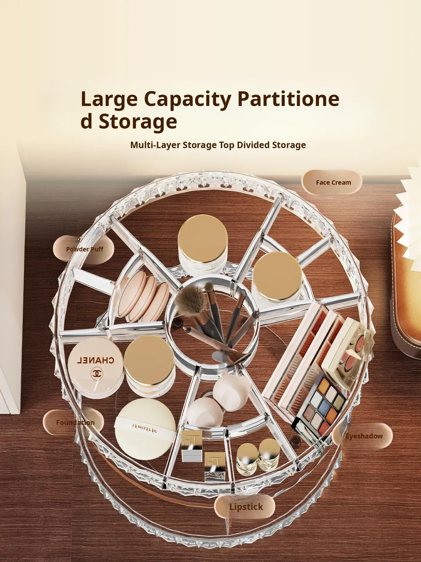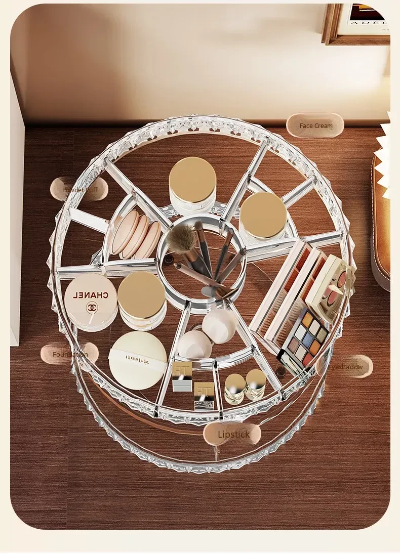 Elegant Rotating Desktop Makeup Organizer - Transparent Cosmetic Storage Rack for Skincare, Perfume, and Lipstick with Divided Compartments - Perfect for Stylish Organization!