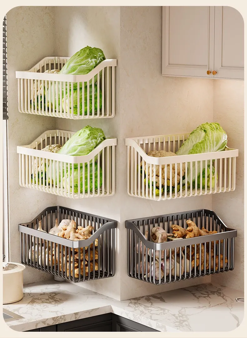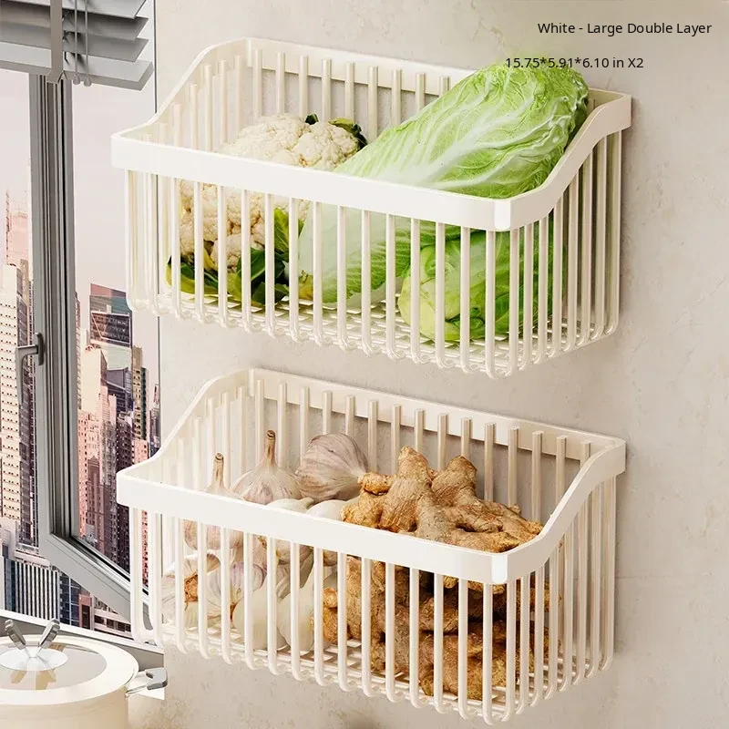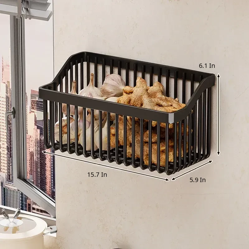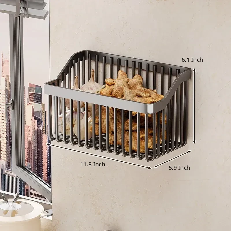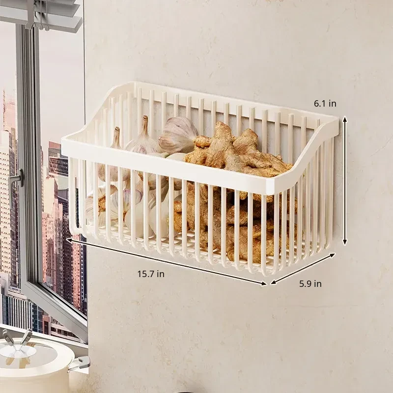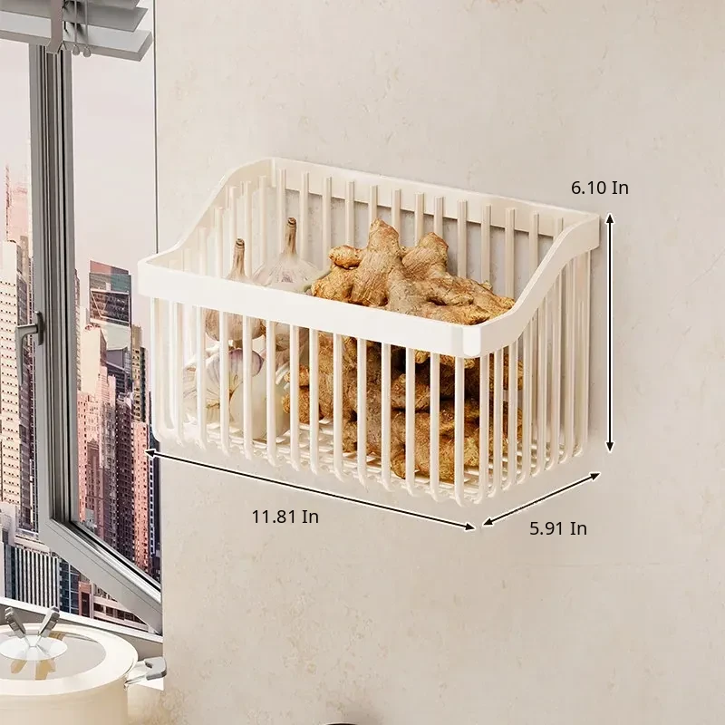 Garlic, Ginger, and Green Onion Storage Box - Wall-Mounted Kitchen Organizer with No Drilling Required, Perfect for Home Use and Easy Access!