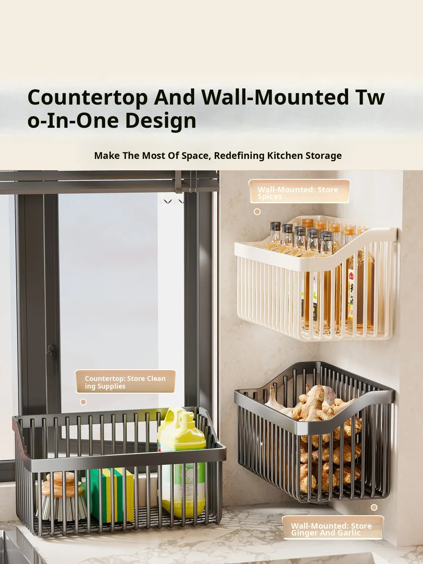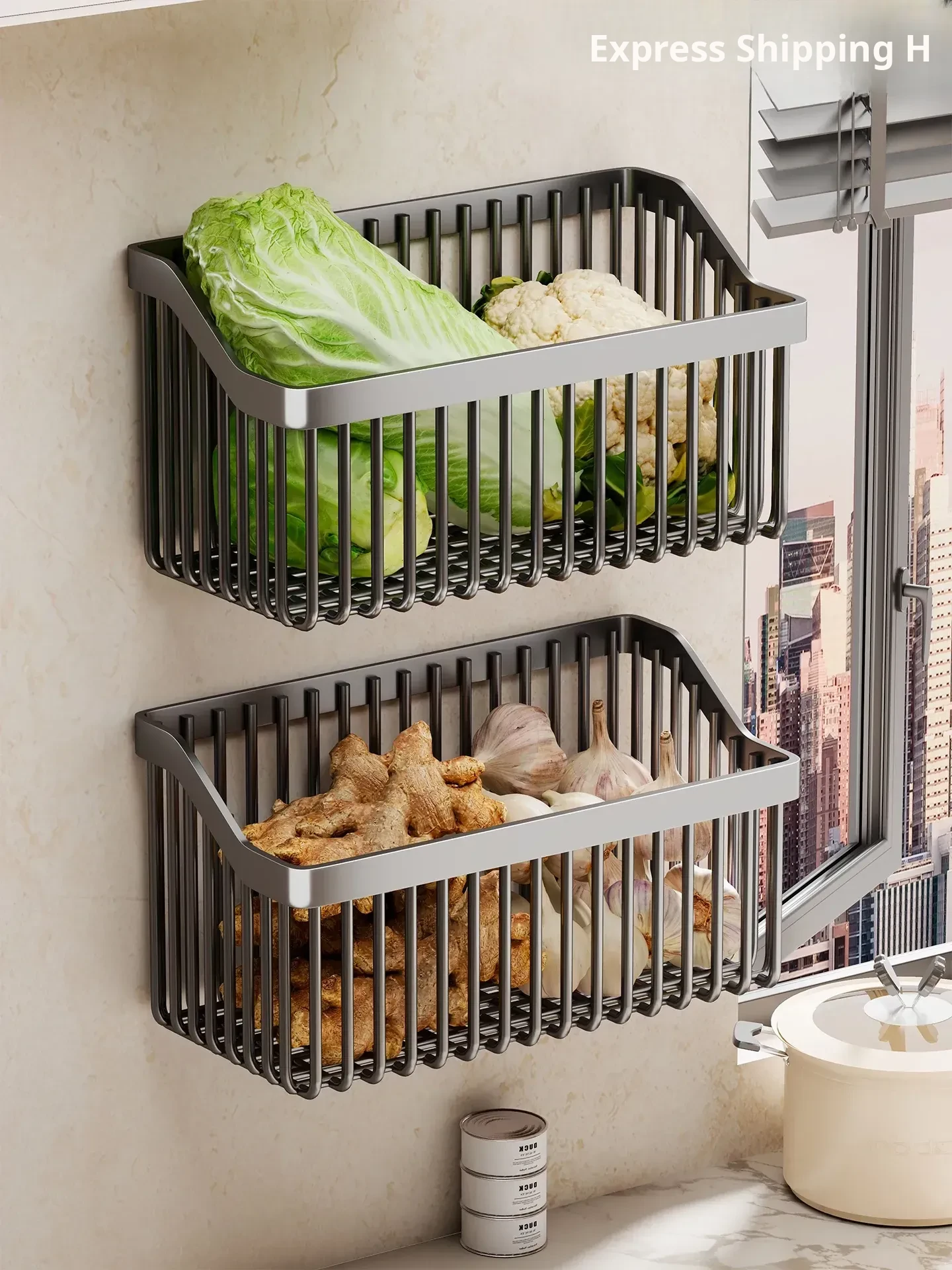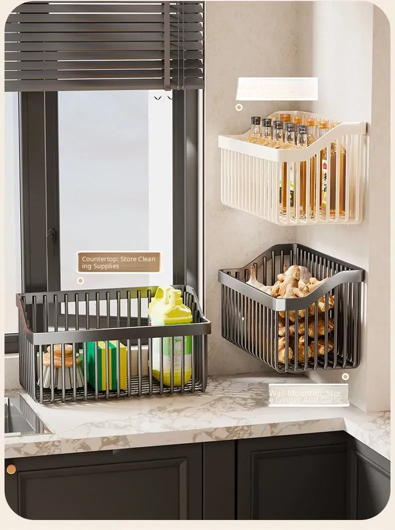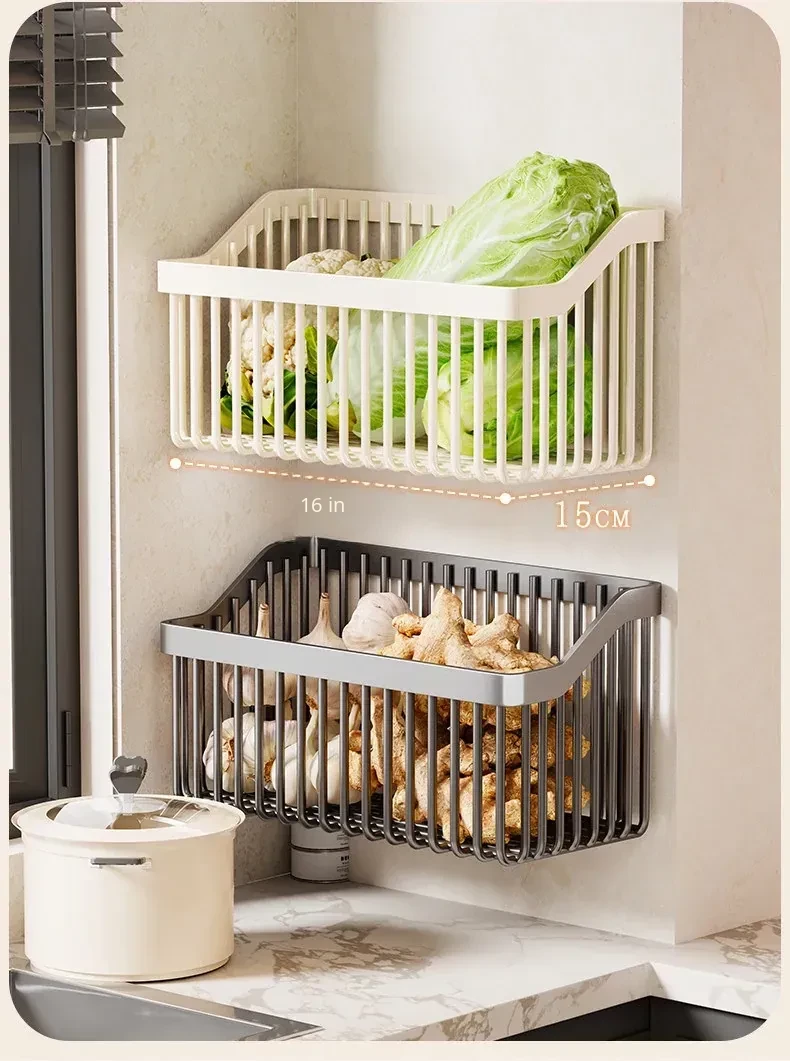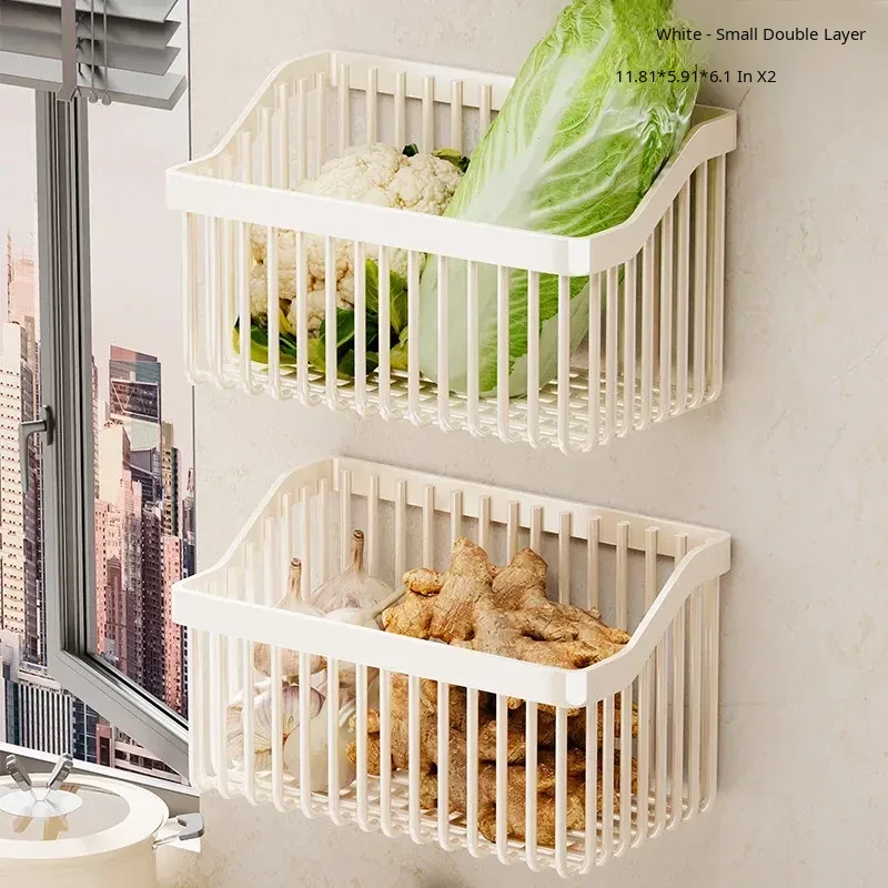 Garlic, Ginger, and Green Onion Storage Box - Wall-Mounted Kitchen Organizer with No Drilling Required, Perfect for Home Use and Easy Access!