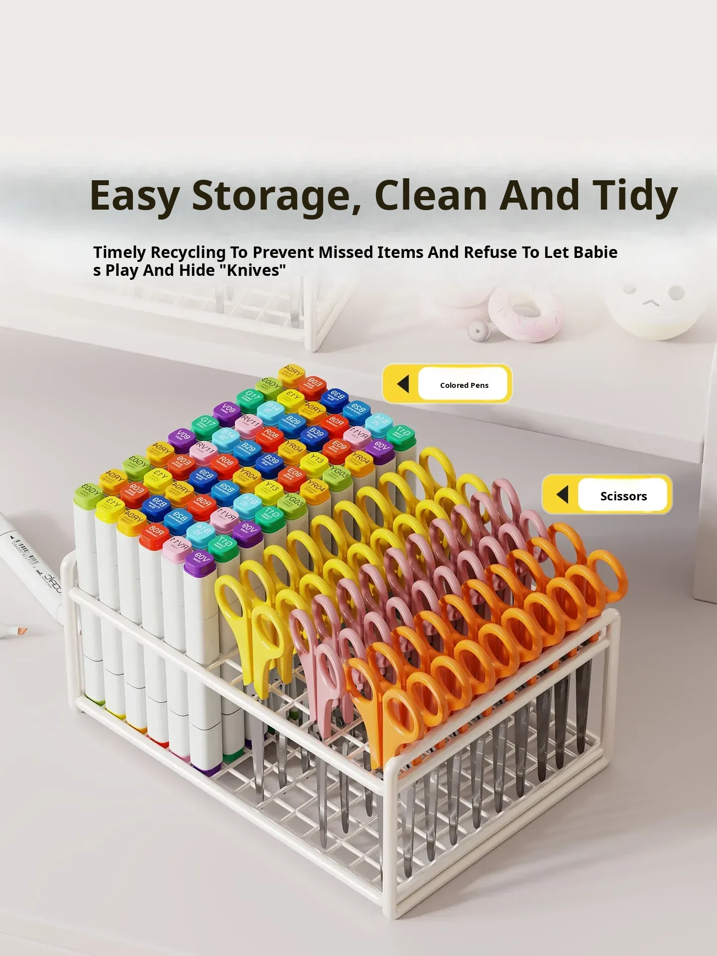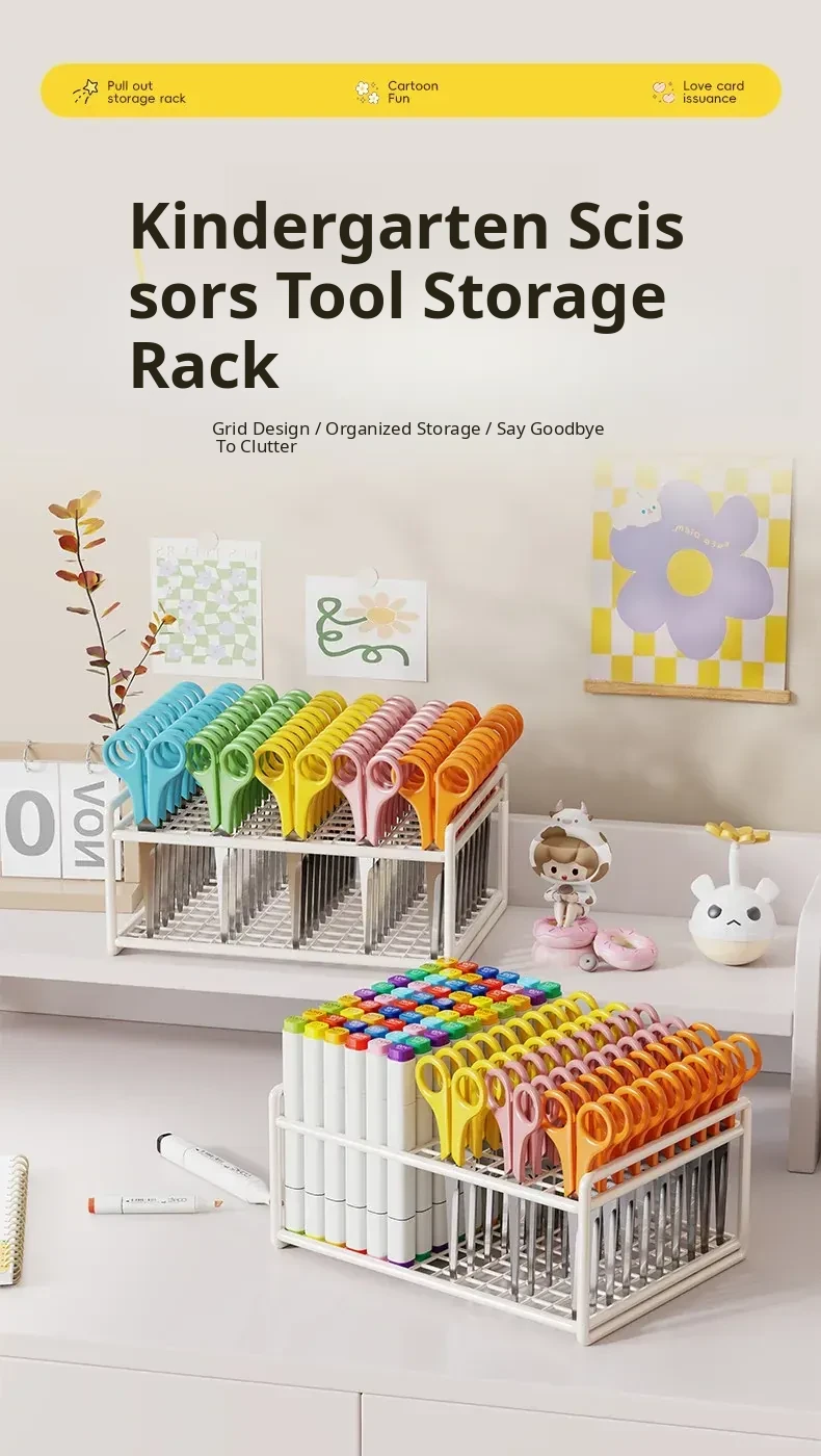 Kids' Safety Scissor Storage Box - Desk Organizer for Art Class, Nursery, and Kindergarten Supplies - Creative and Secure Tool Holder for Young Artists