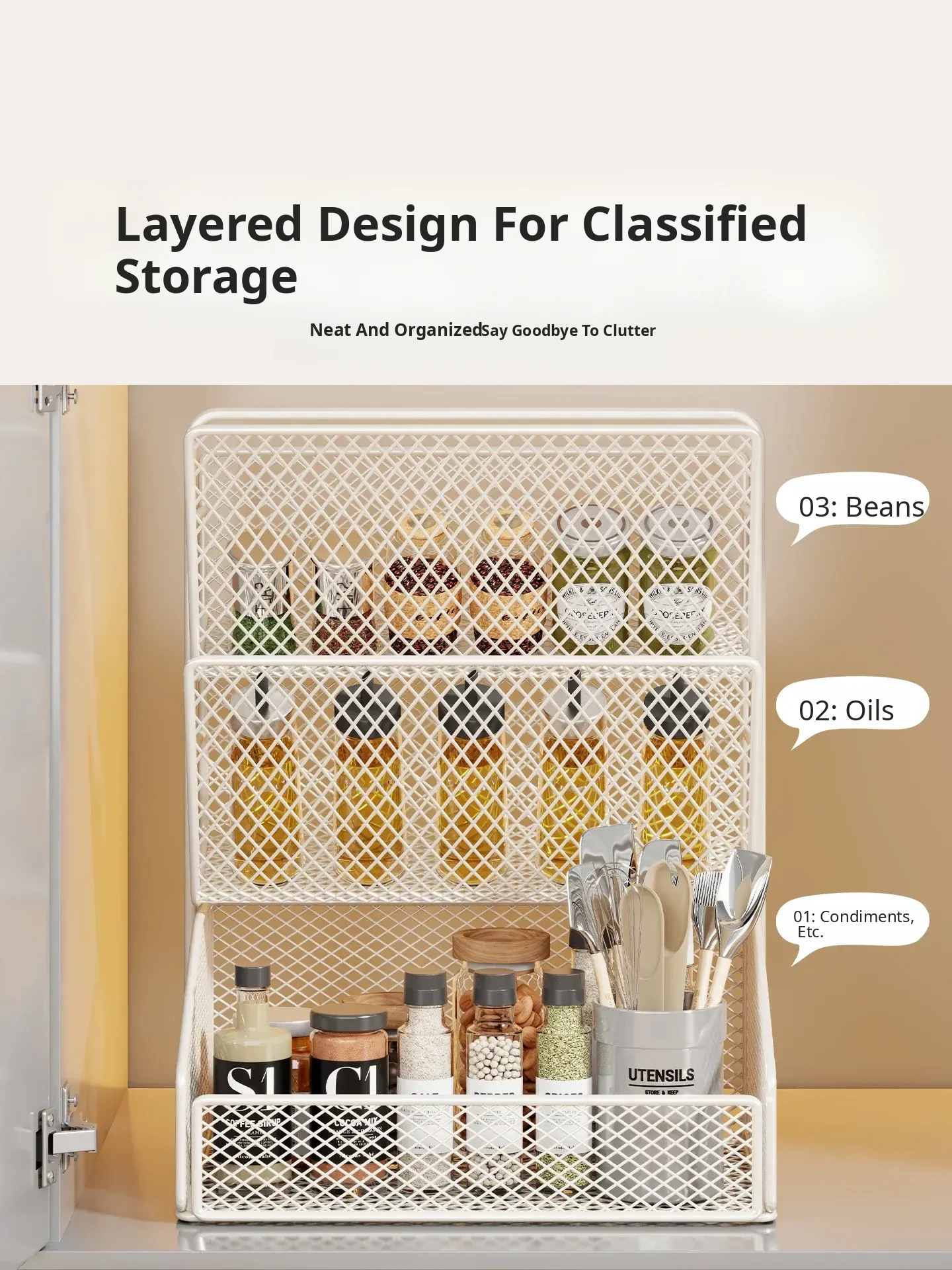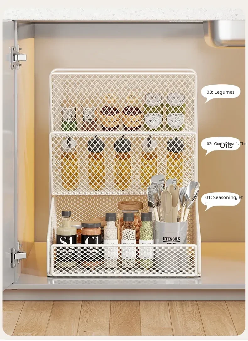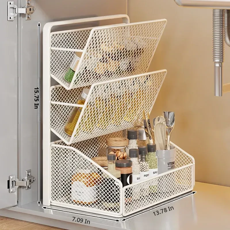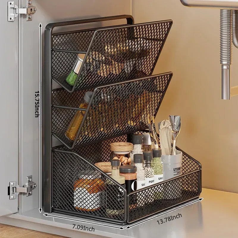 Kitchen Under-Sink Storage Rack - Deep Double-Layer Organizer for Cabinets, No-Drill Spice Rack for Efficient Space Management