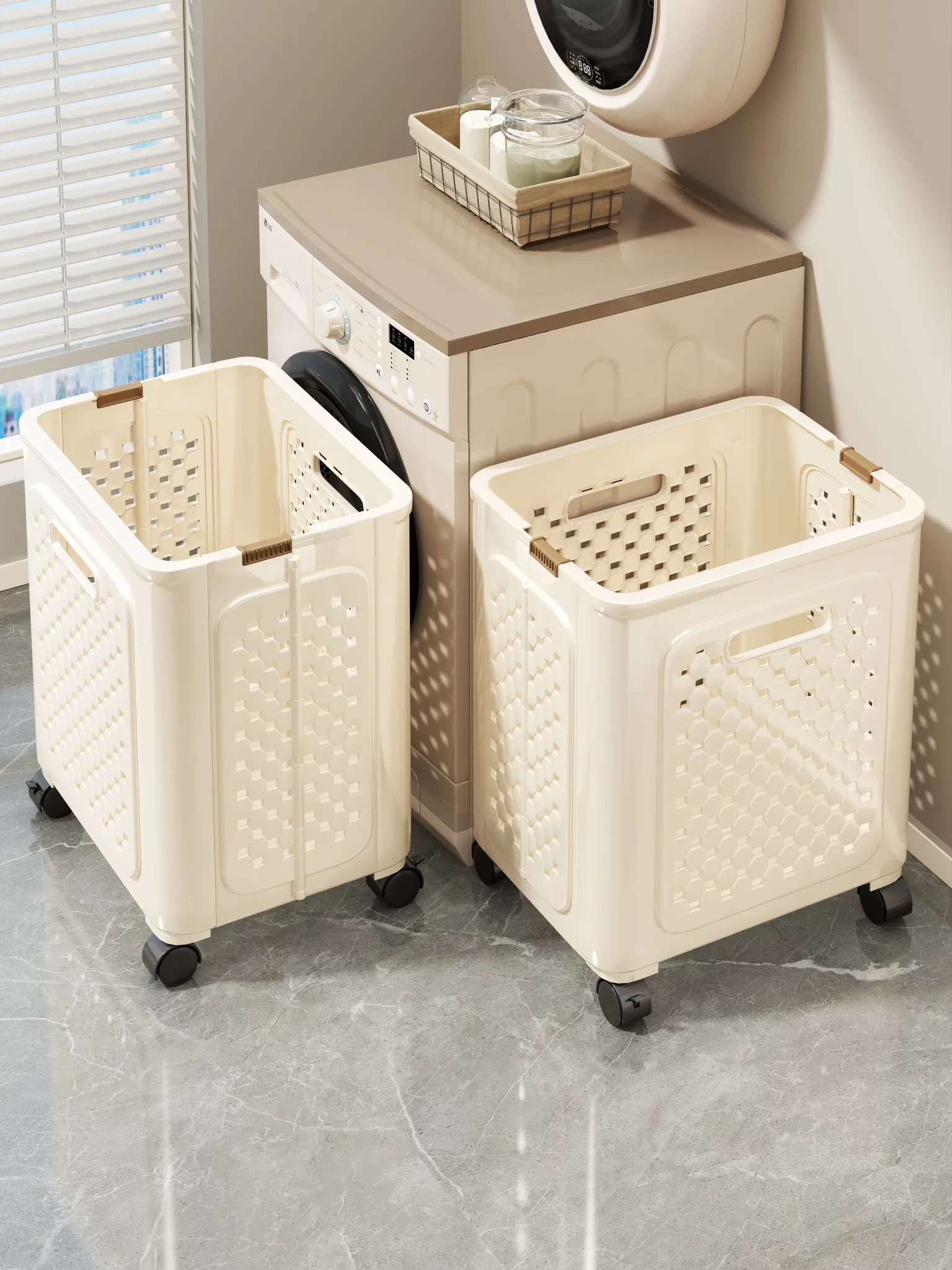 Mobile Laundry Basket with Bathroom Cabinet, Compact Dirty Clothes Cart for Easy Sorting and Storage in Your Laundry Room - Organize Your Space with Style!