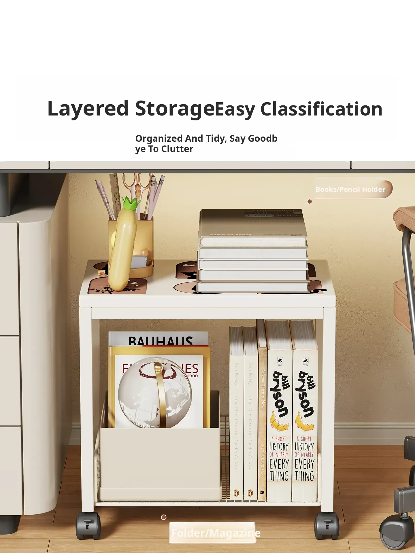 Mobile Under-Table Storage Shelf with Wheels - Versatile Book Cart for High School and Junior High Students - Multi-Layer Organizer Perfect for Books and Bags by Your Desk