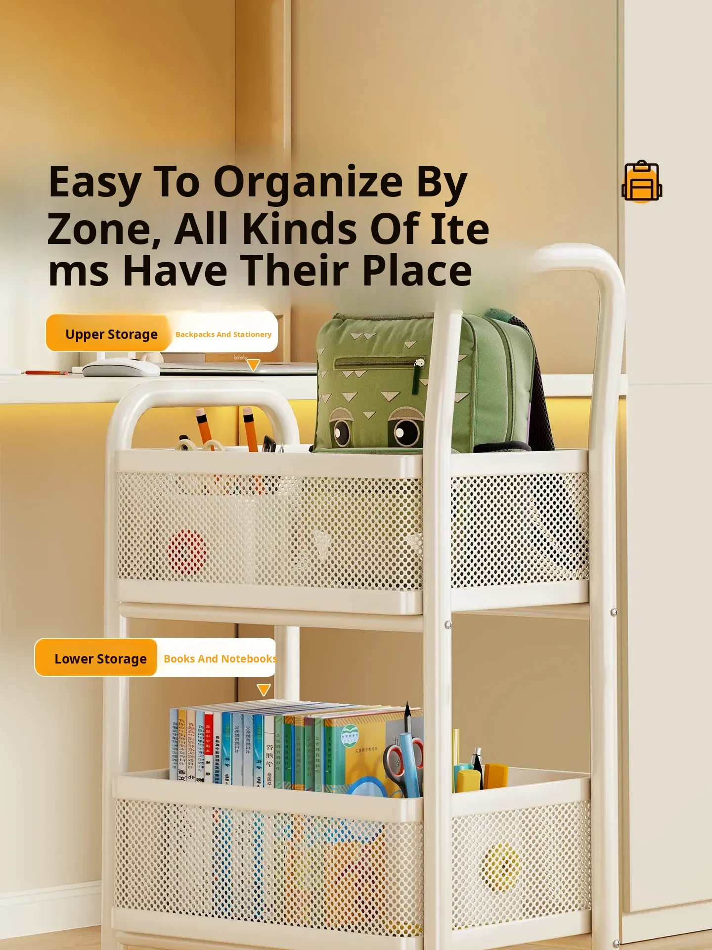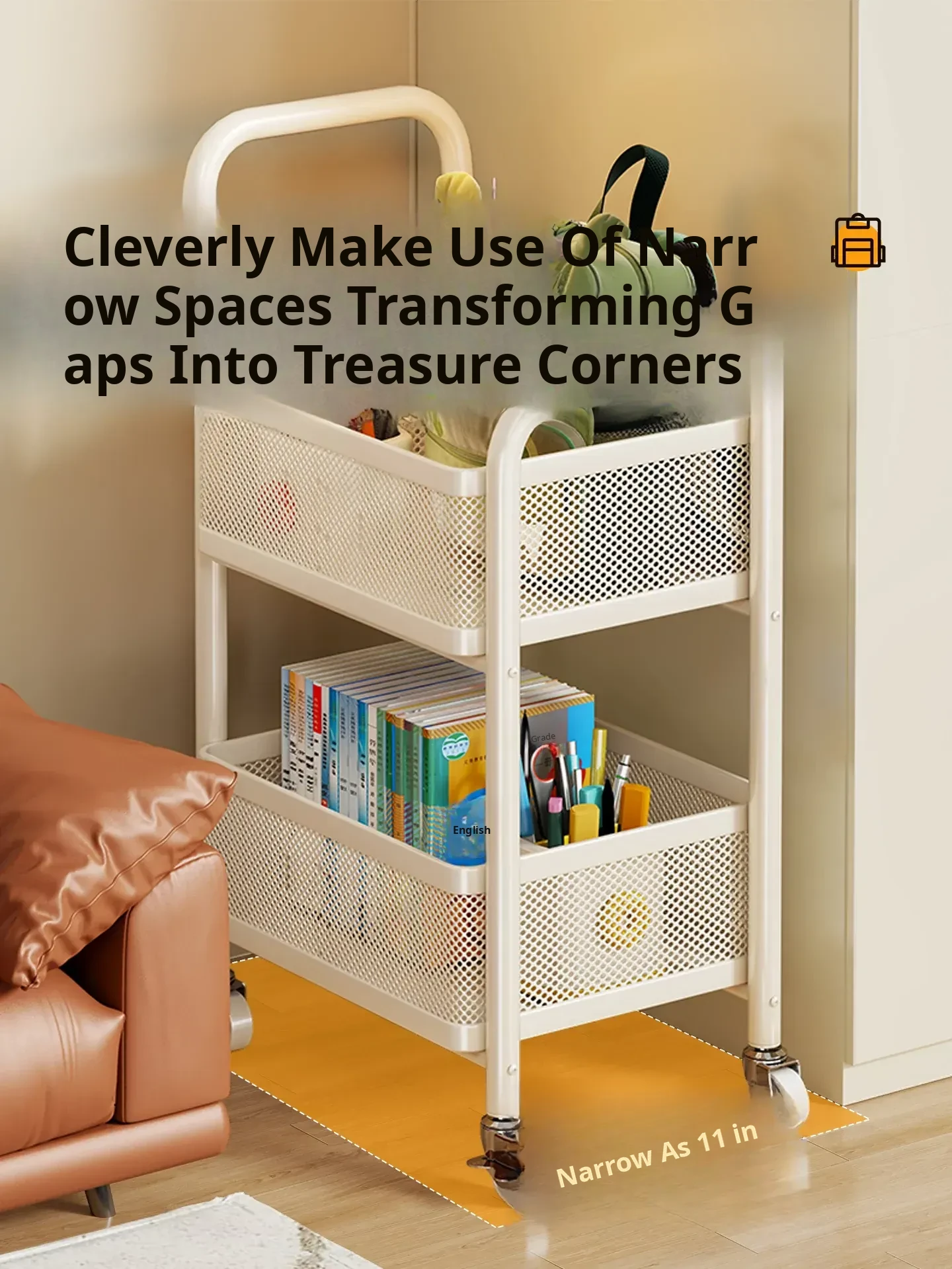 Multifunctional Home Bookshelf Trolley - Spacious Storage Rack for High School Students' Textbooks, Perfect for Organizing Books by Your Desk