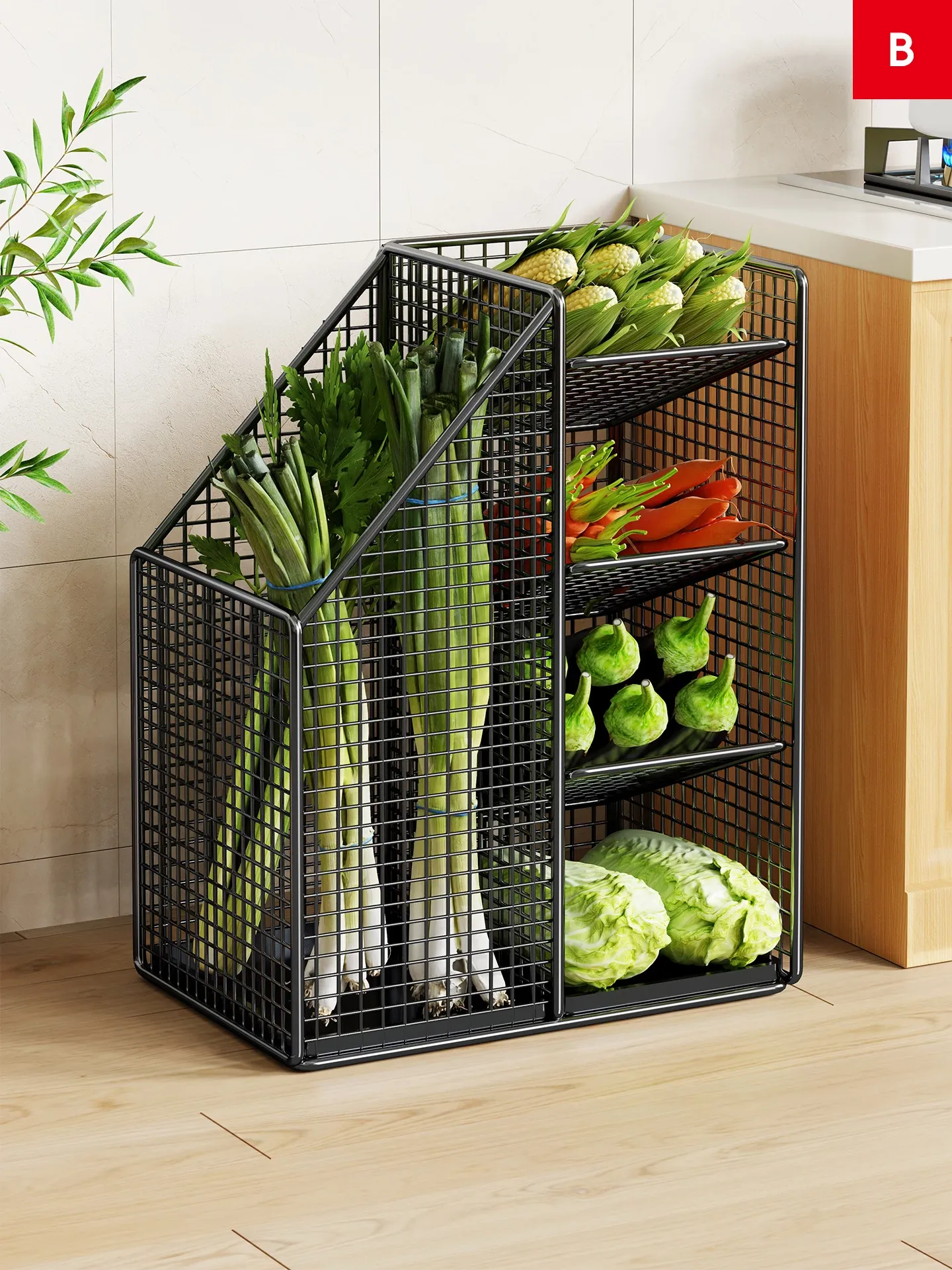 Multi-Layer Kitchen Storage Rack - Versatile Floor Stand for Fruits, Vegetables, and Spices - Perfect Organizer for Onions, Ginger, and Garlic