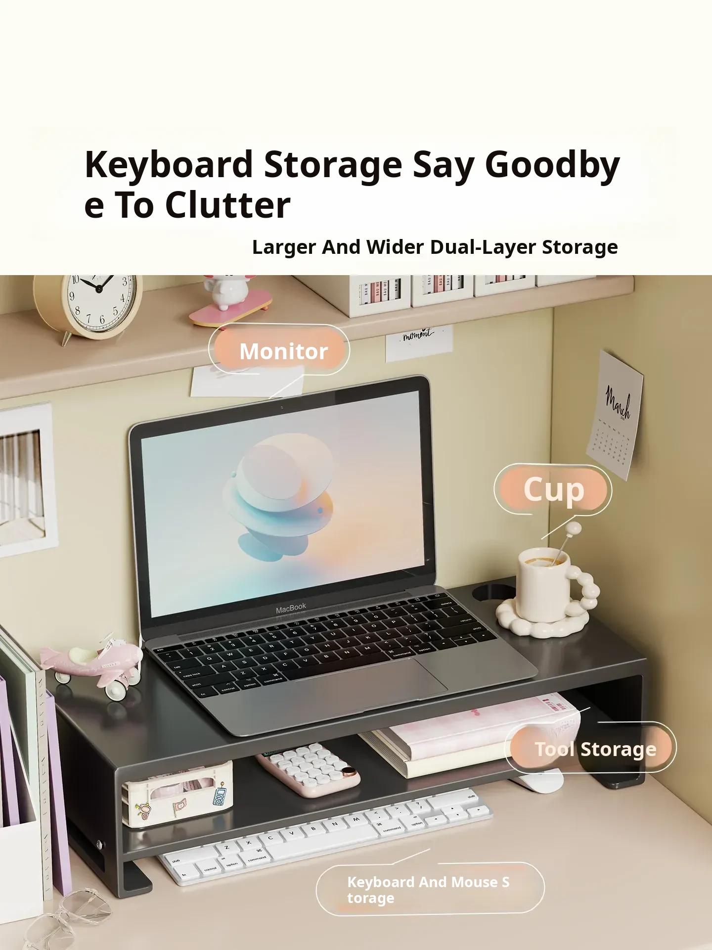 Multi-Layer Monitor Stand and Laptop Riser - Enhance Your Workspace with a Stylish Desktop Organizer for Keyboards and Accessories