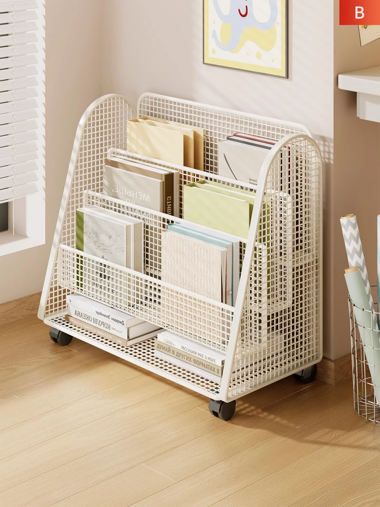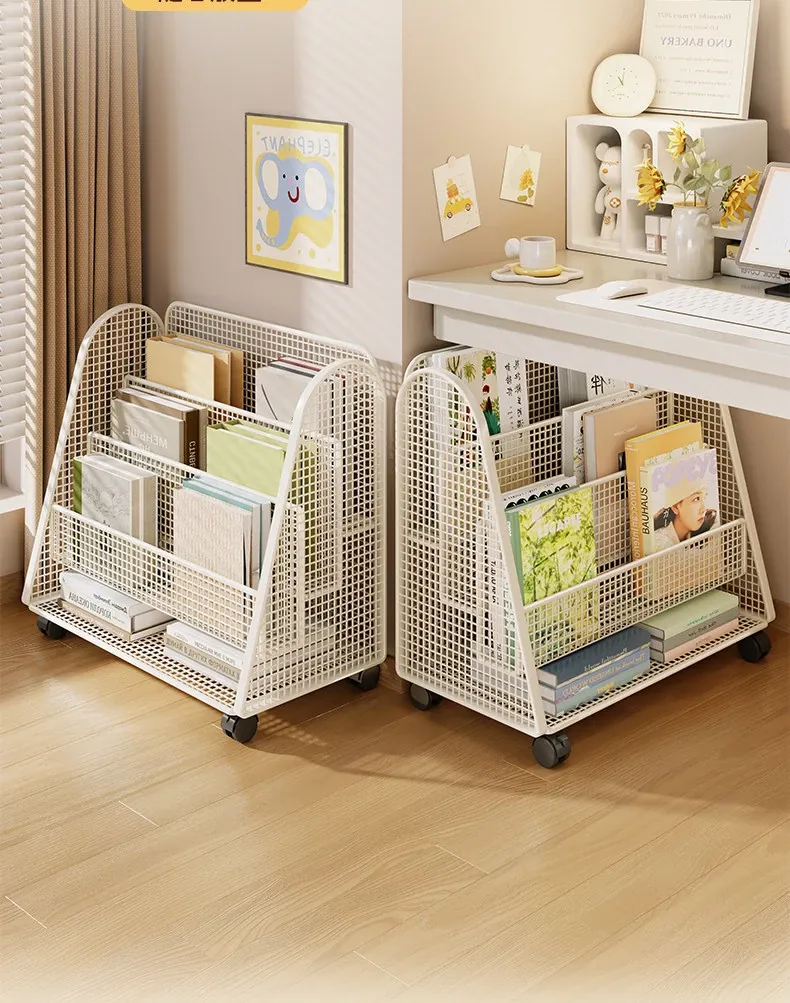 Multi-Layer Portable Children's Bookshelf - Space-Saving Metal Storybook Rack for Kindergarten, Perfect Under-Desk Storage Solution!