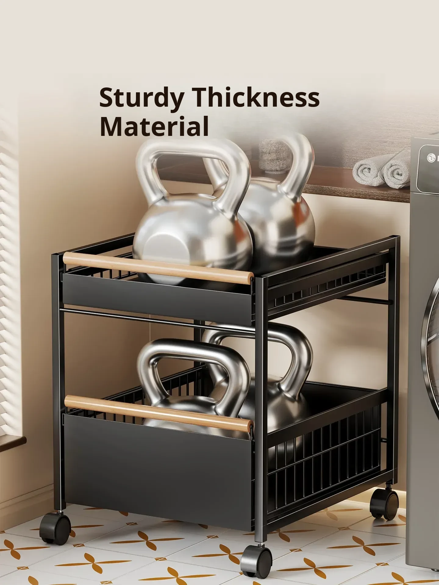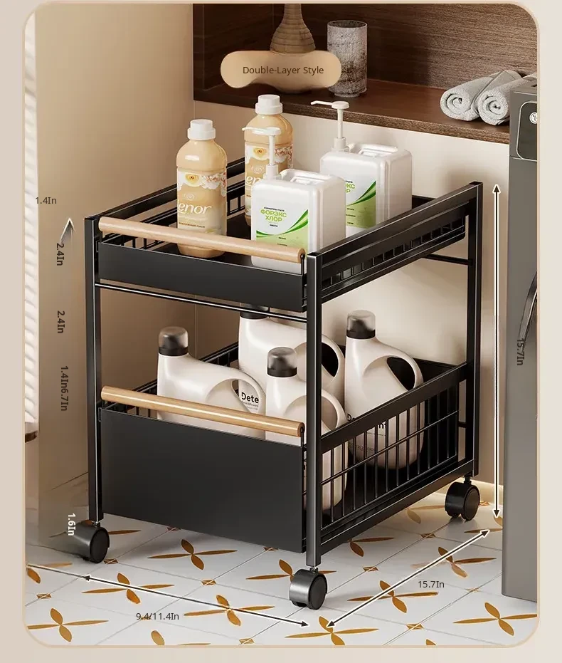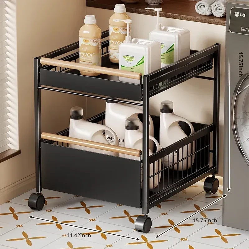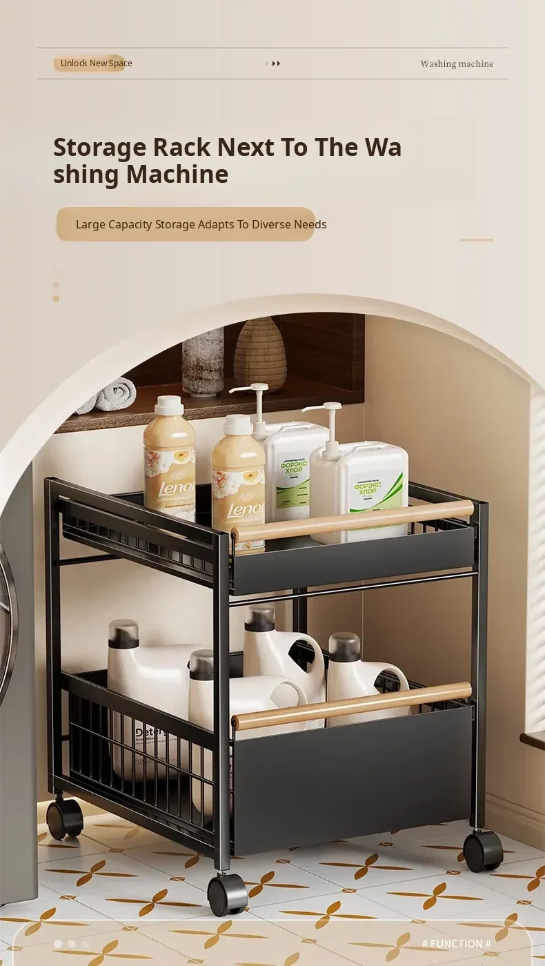 Multi-Layer Rolling Laundry Cart - Space-Saving Storage Rack for Bathroom and Laundry Room, Perfect for Side of Washing Machine, Easy to Move and Organize!