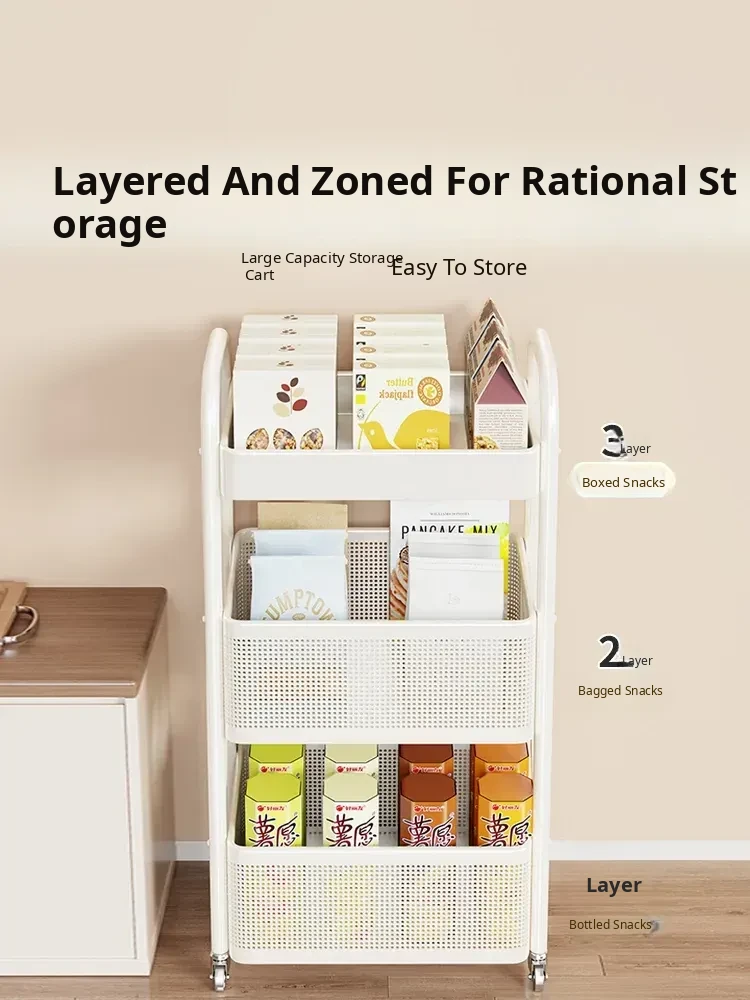 Multi-Layer Rolling Storage Cart - Versatile Organizer for Kitchen, Bedroom, Bathroom, and More - Perfect for Snacks and Essentials - Space-Saving Design for Easy Mobility