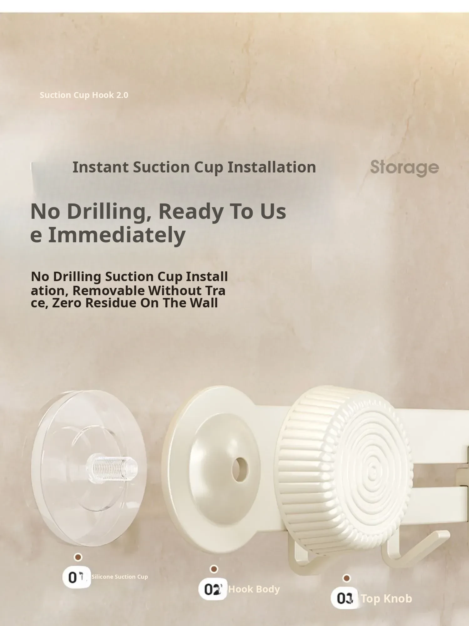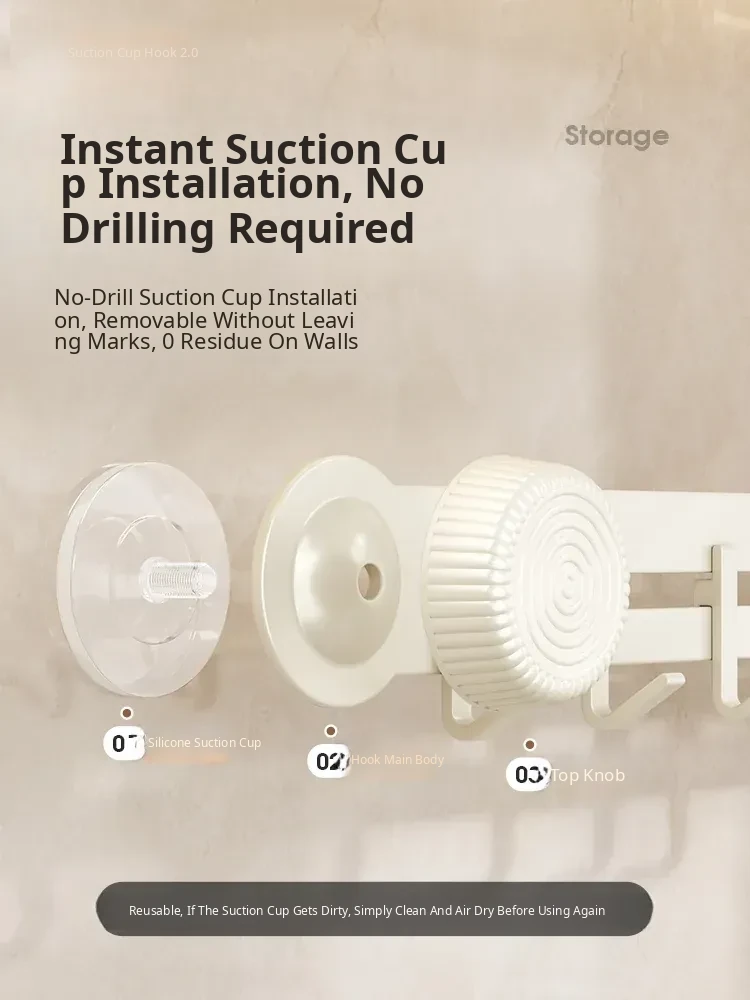 11.81in (5 Hooks, Removable) Suction Cup - Creamy White
