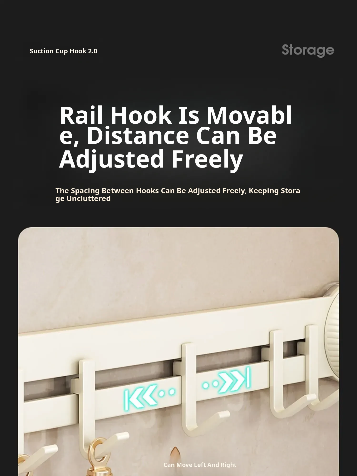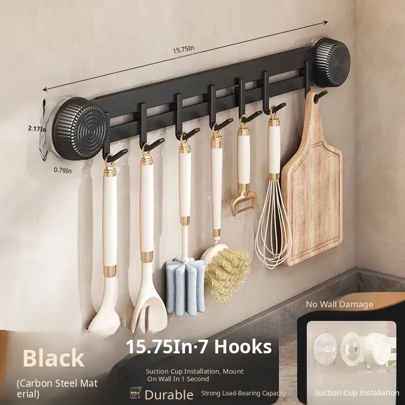 19.69in (9 Hooks, Removable) Suction Cup - Matte Black