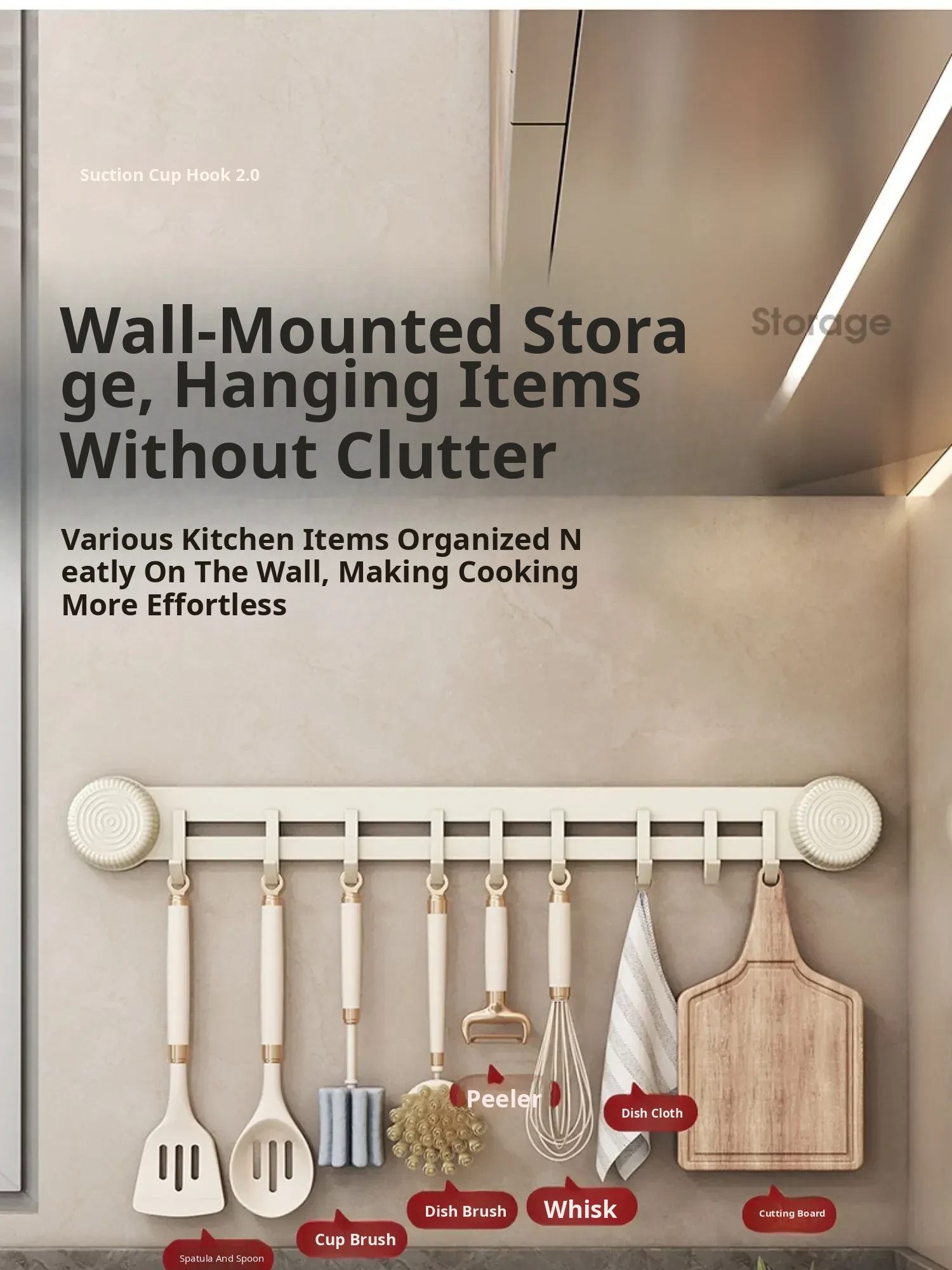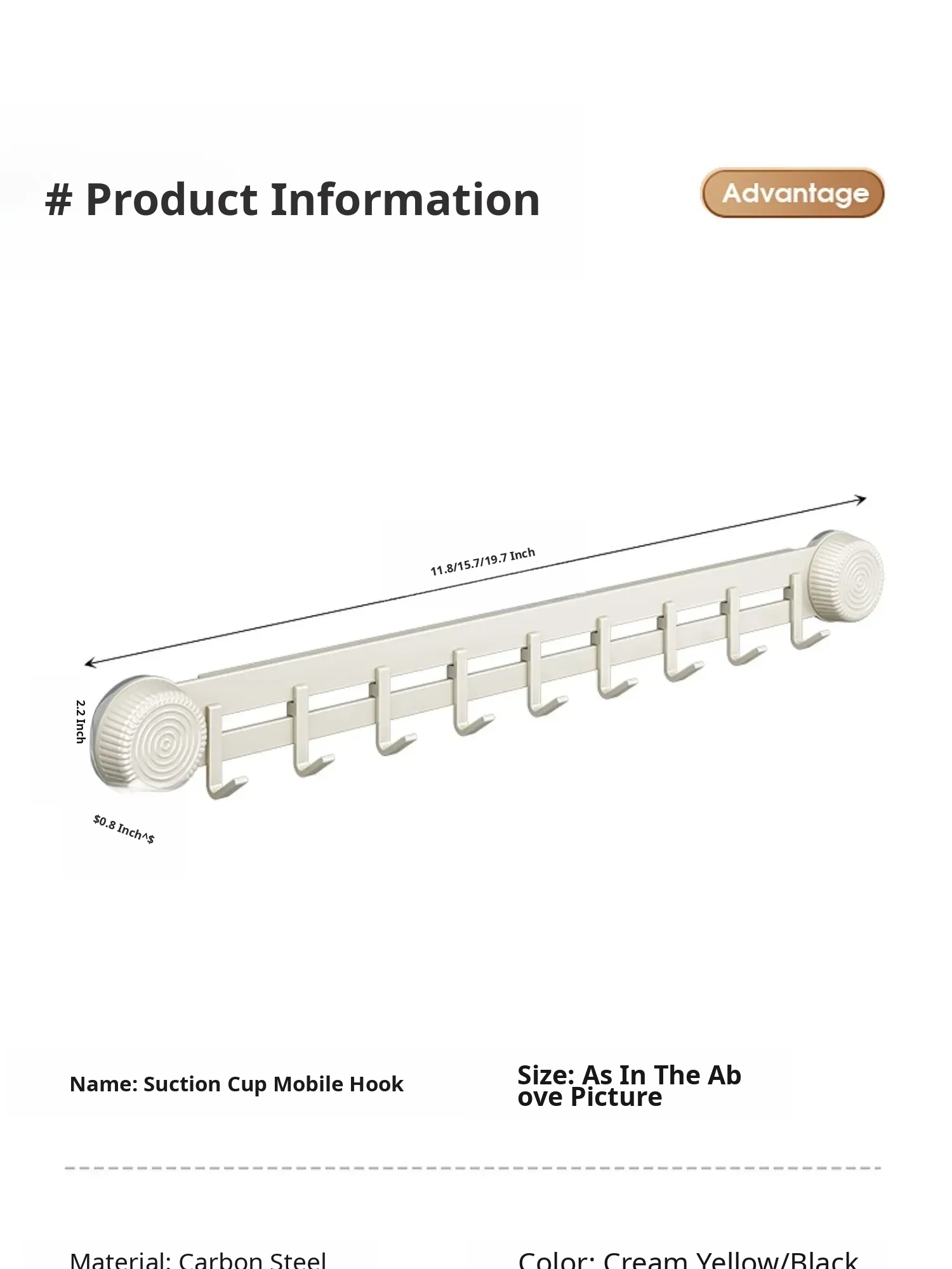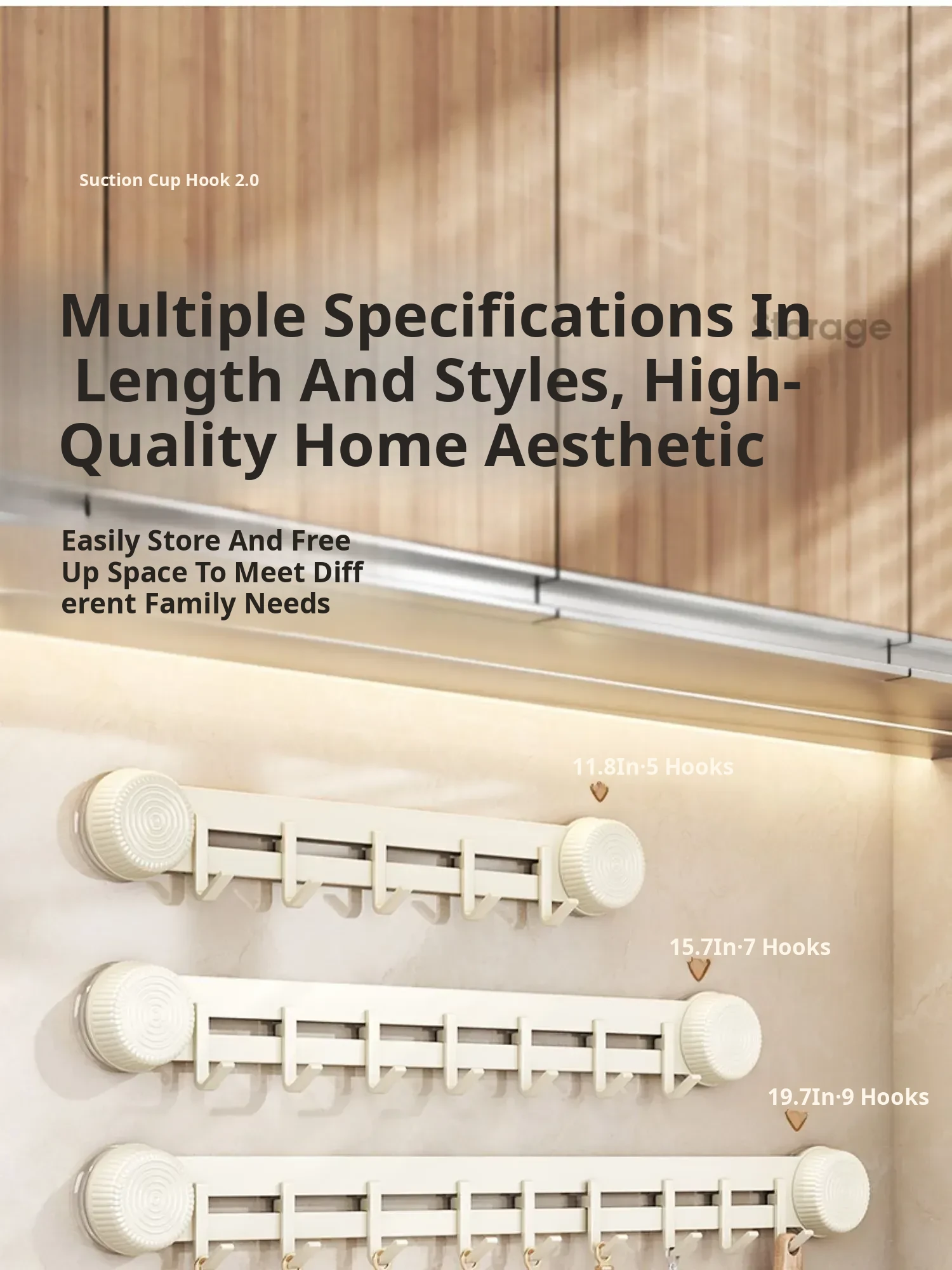 19.69in (9 Hooks, Removable) Suction Cup - Creamy White