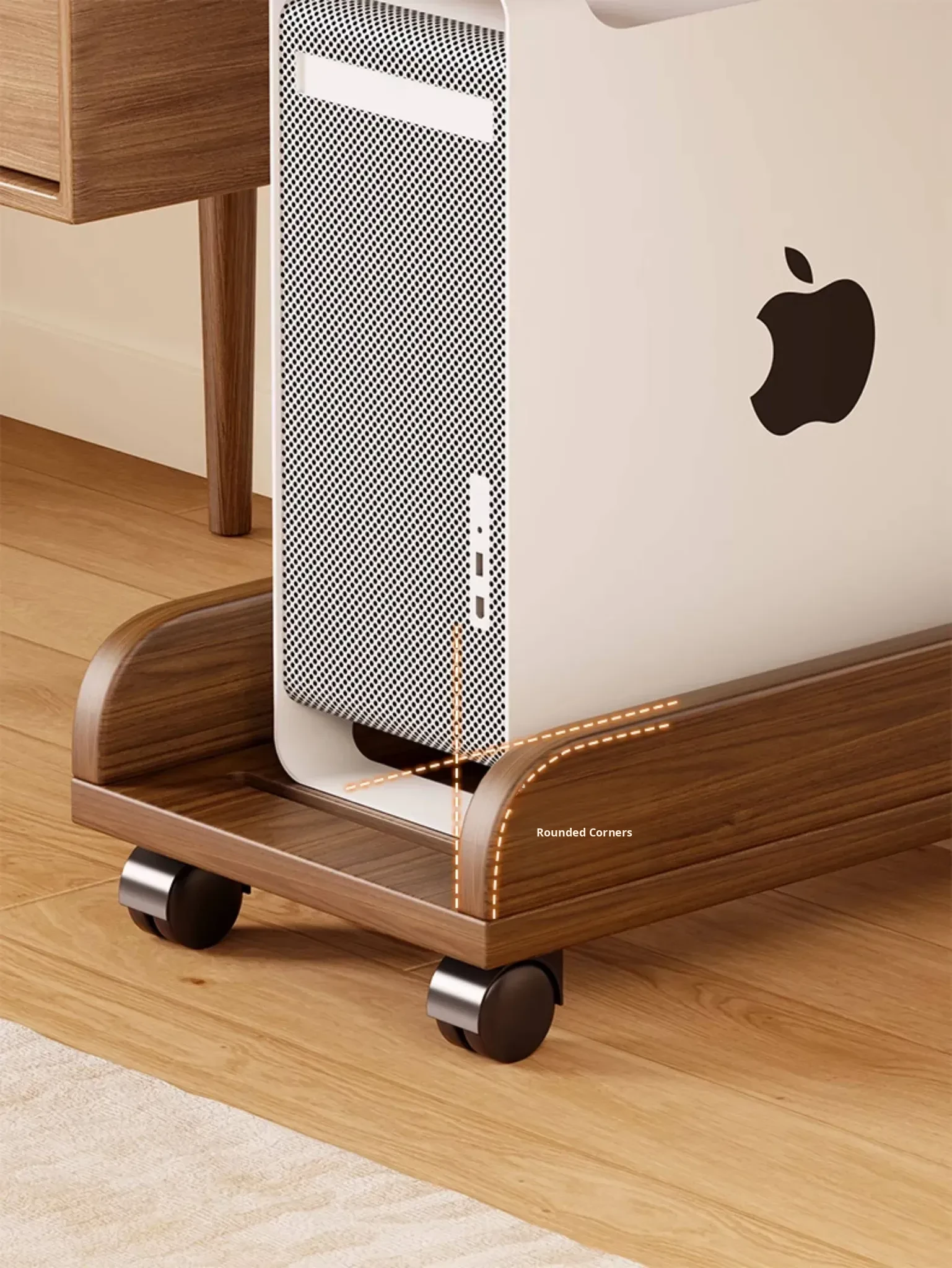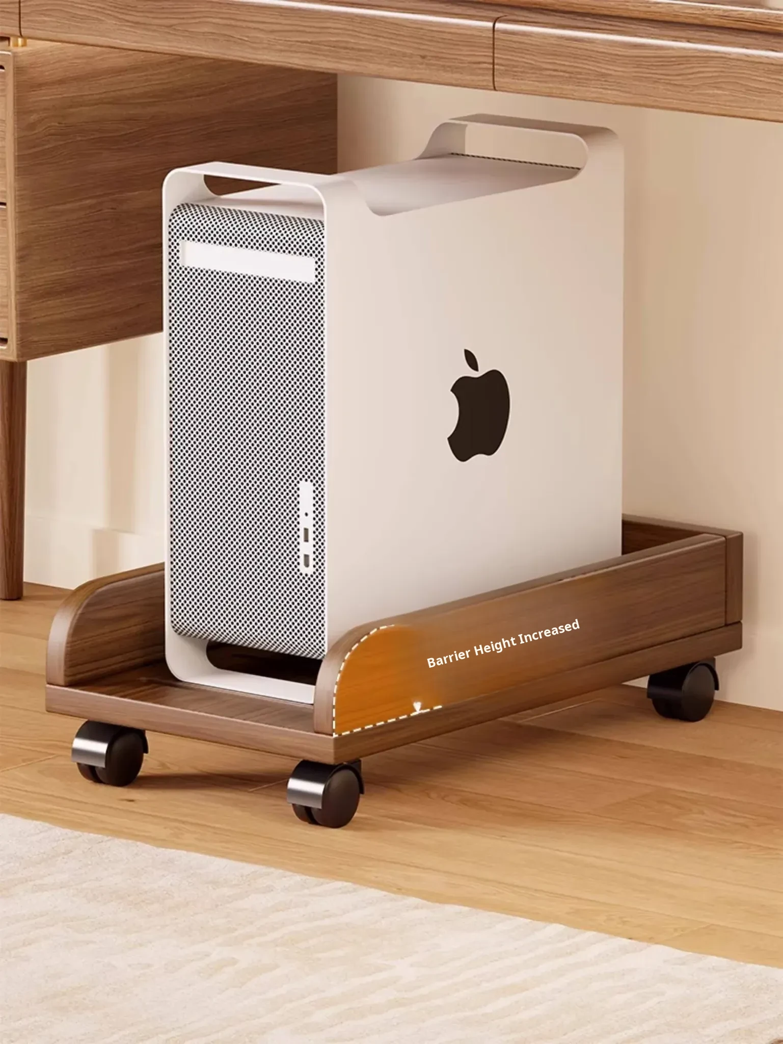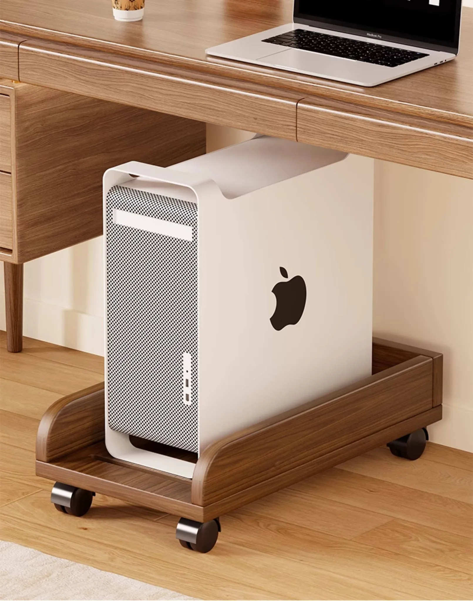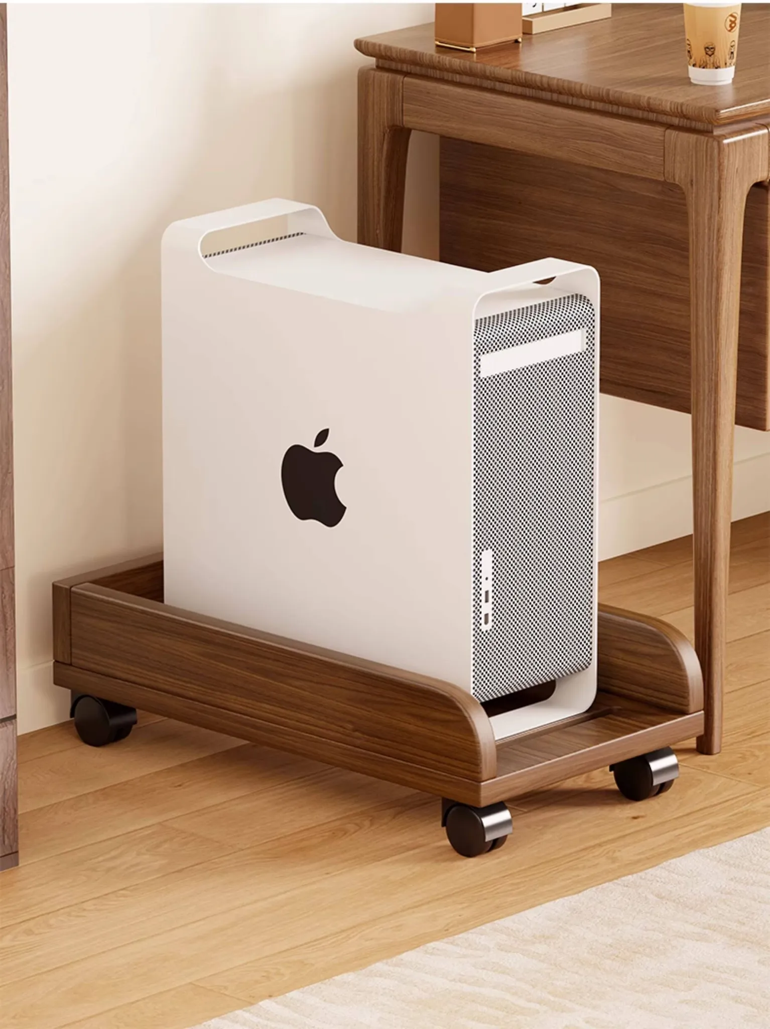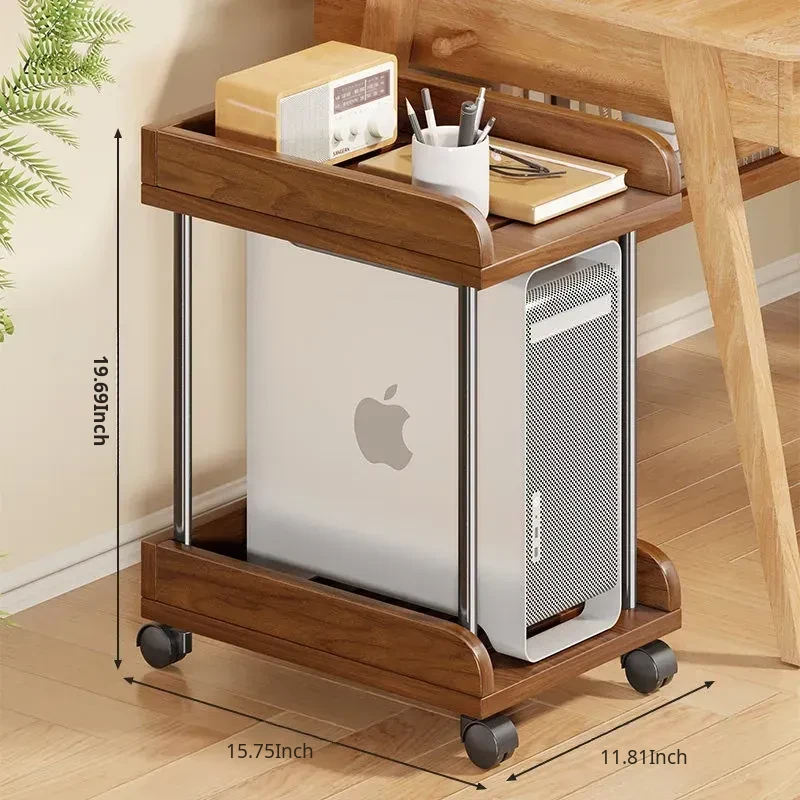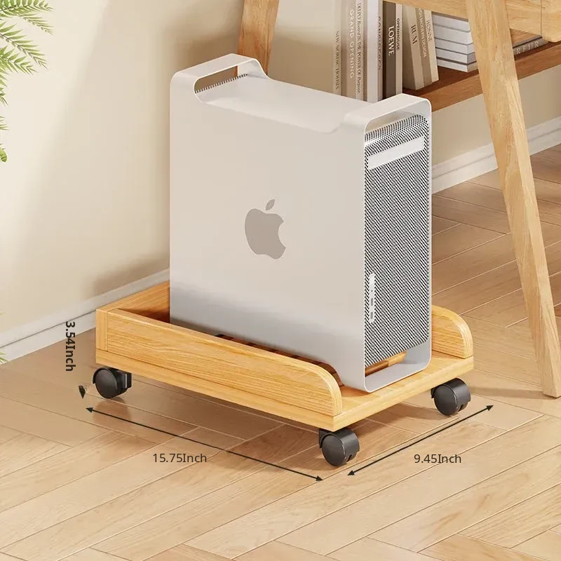 Solid Wood Computer Tower Stand - Movable PC Base Storage Rack for Home and Office Desktop Use - Stylish and Functional Tray Holder