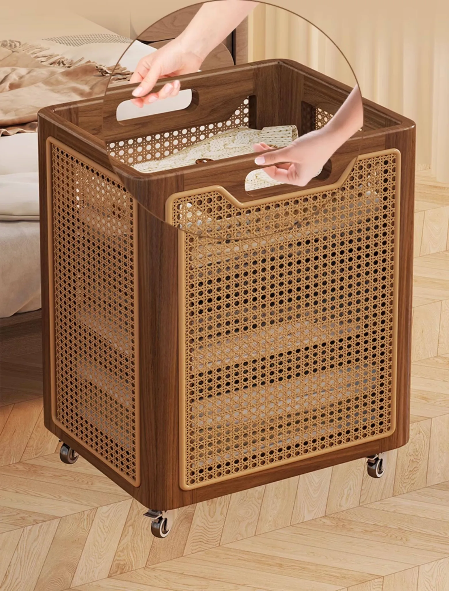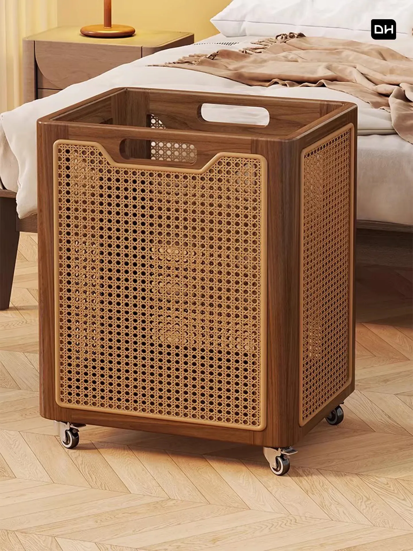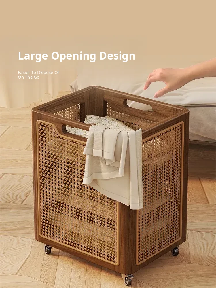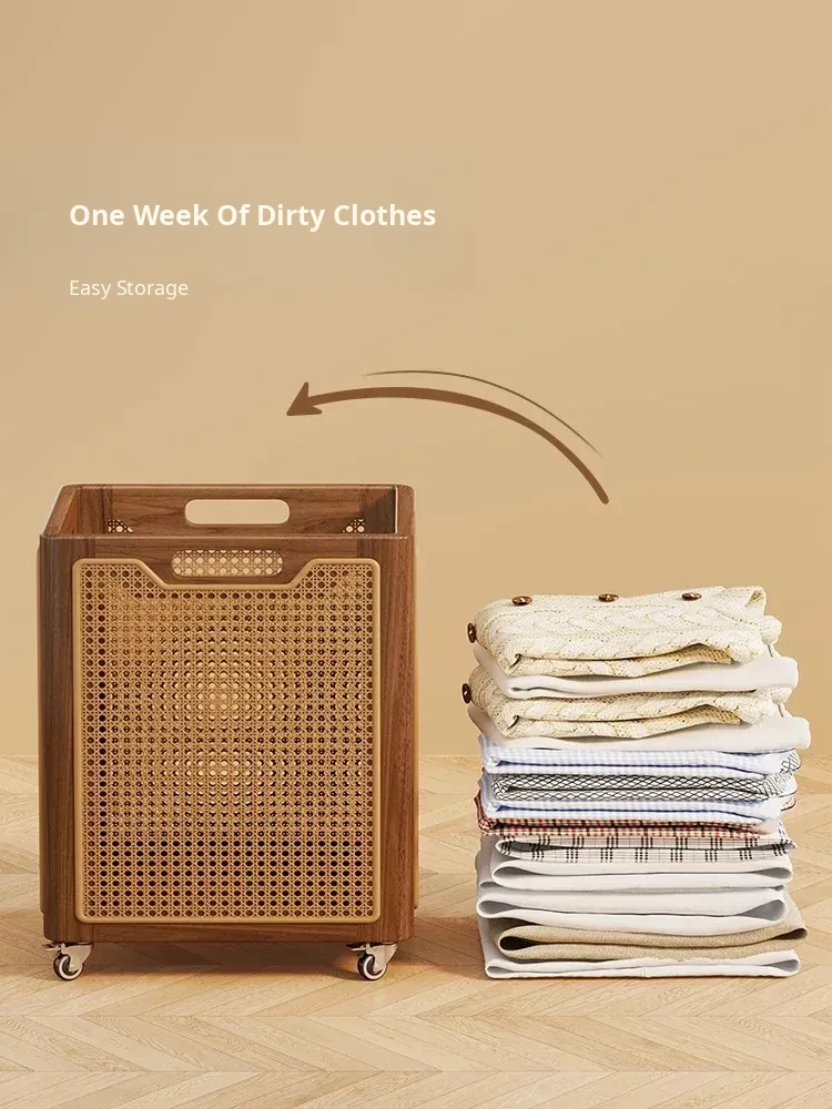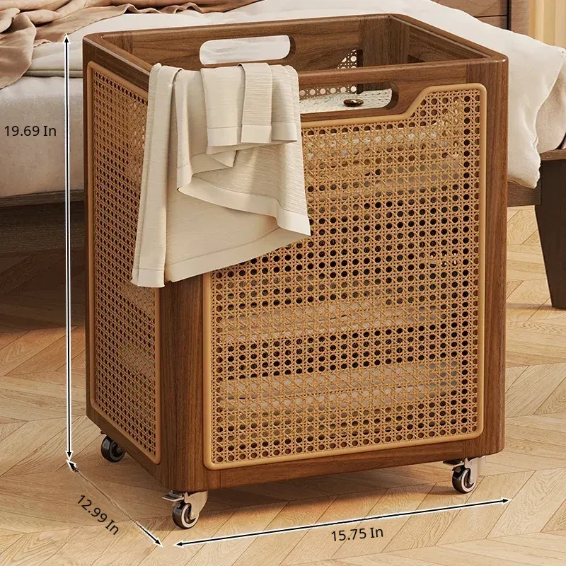 Solid Wood Laundry Basket - Rattan Woven Hamper for Home Use - Large Capacity Storage Bin for Clothes - Perfect for Bedrooms and Balcony Toy Organizing