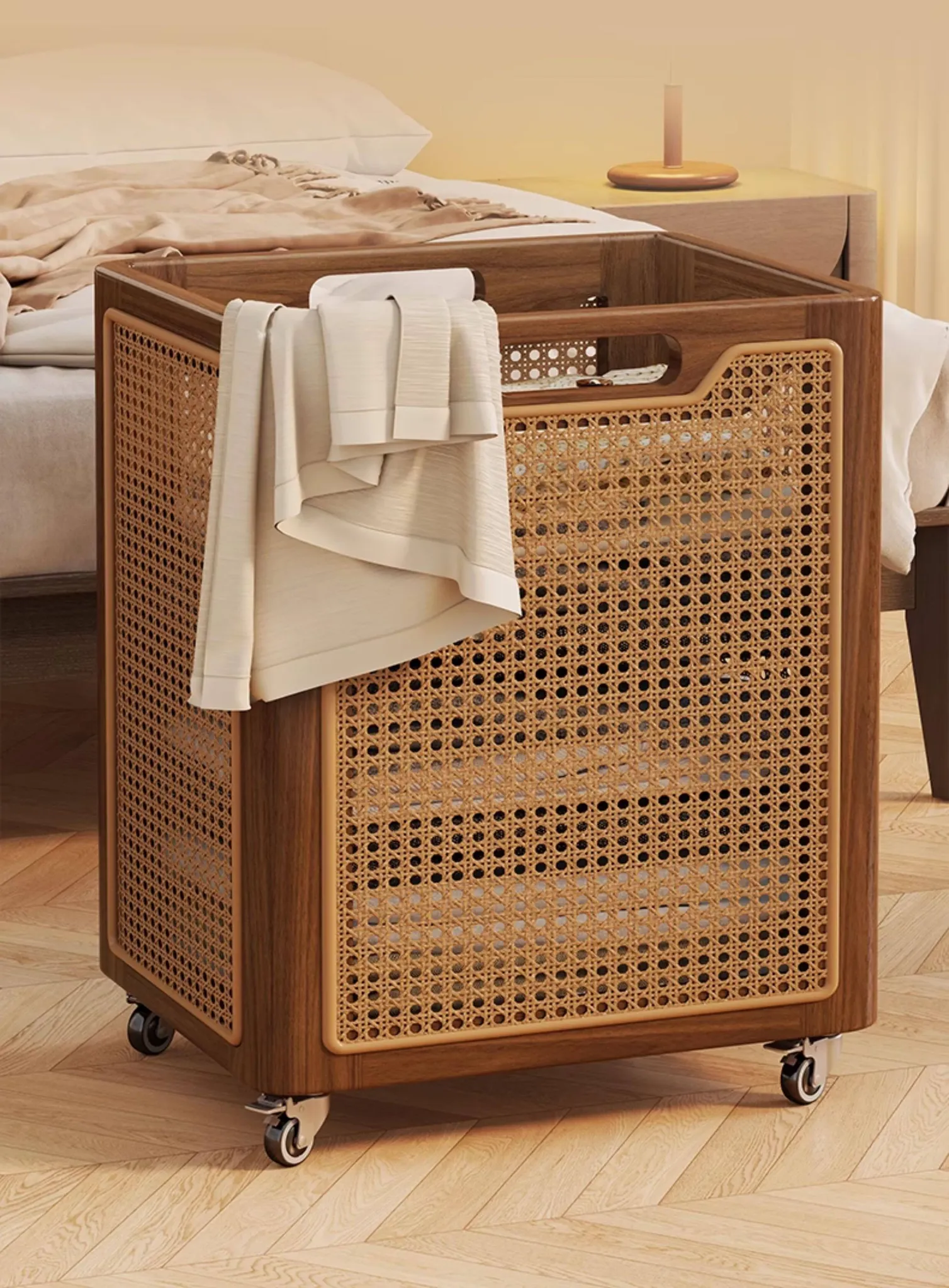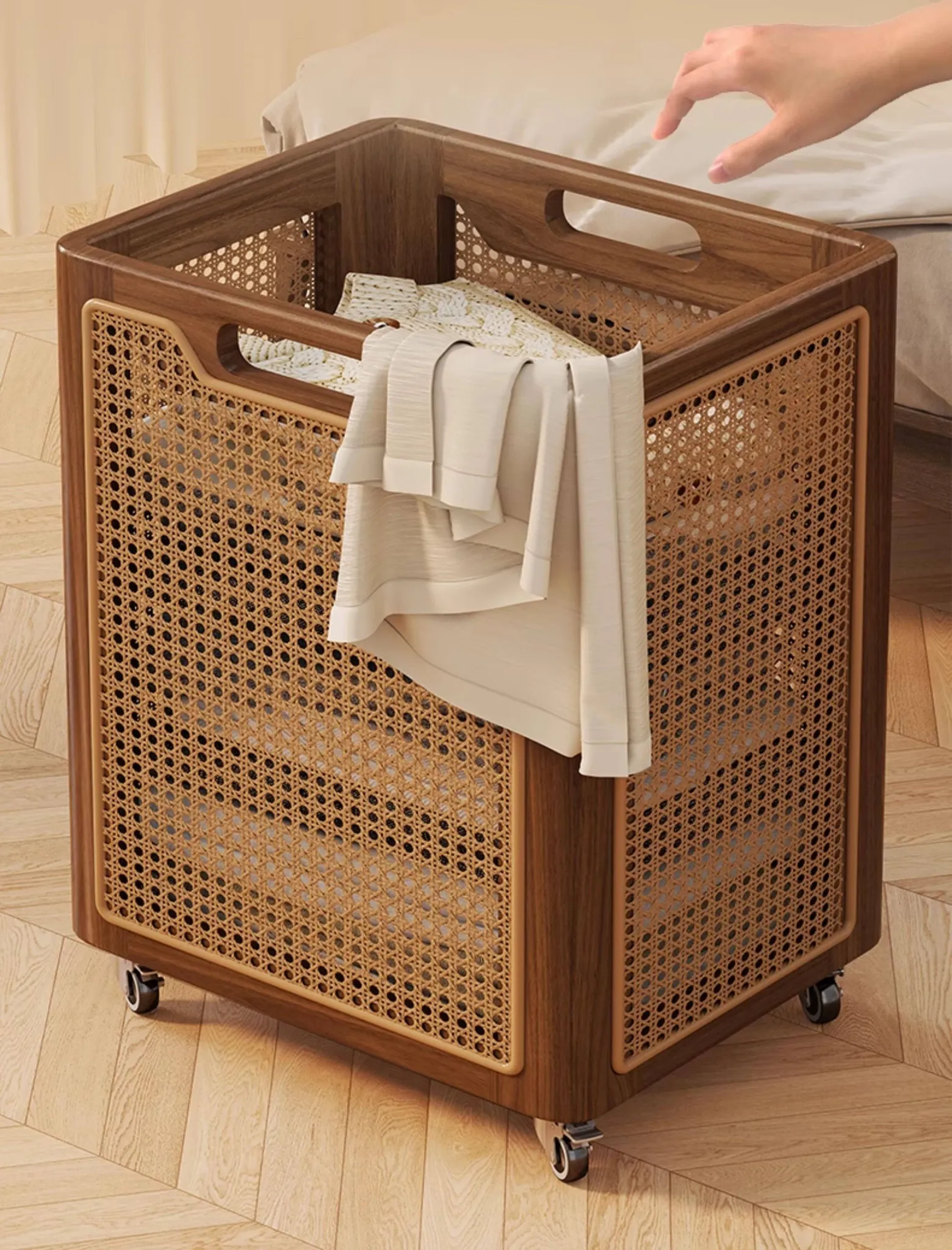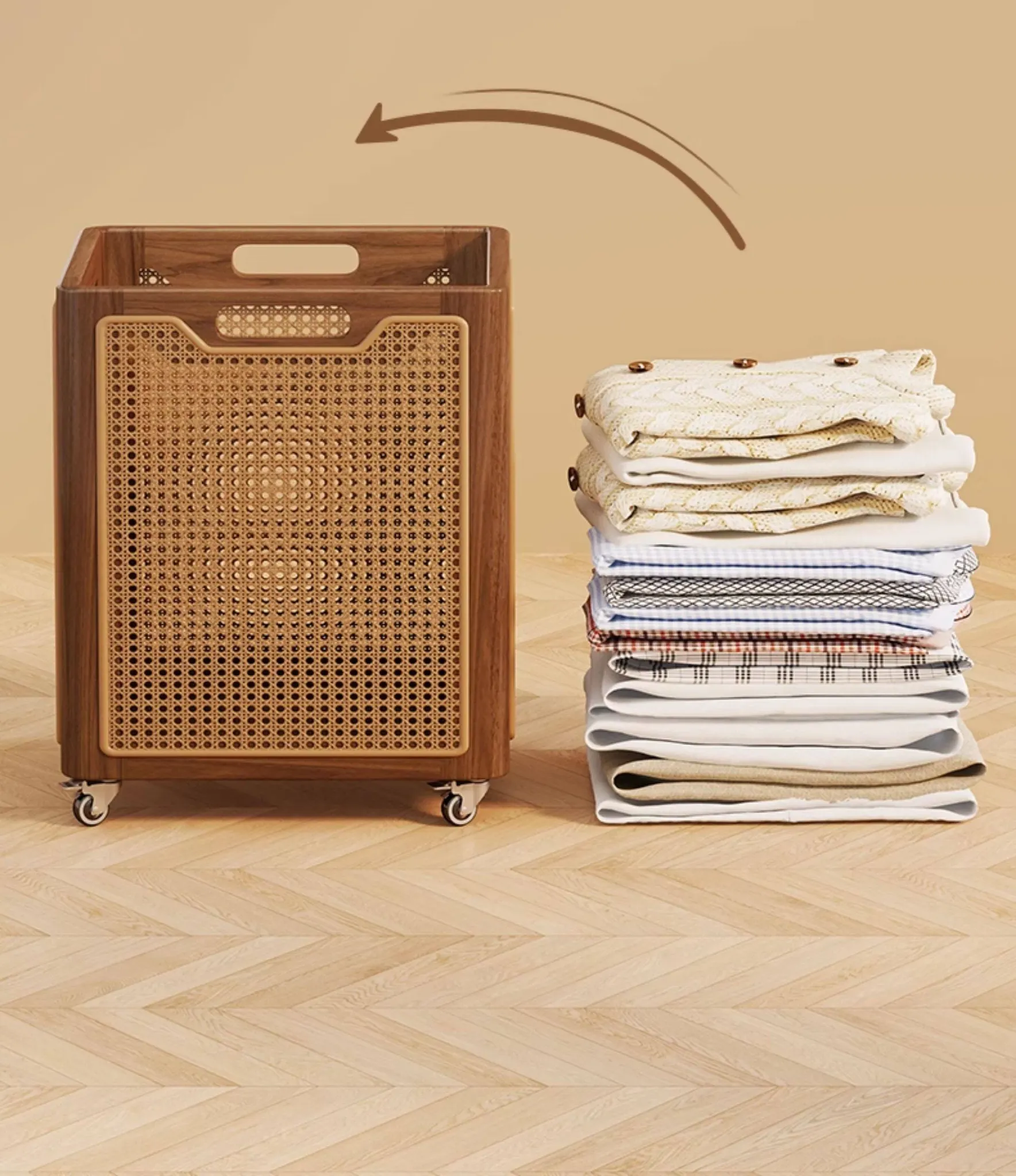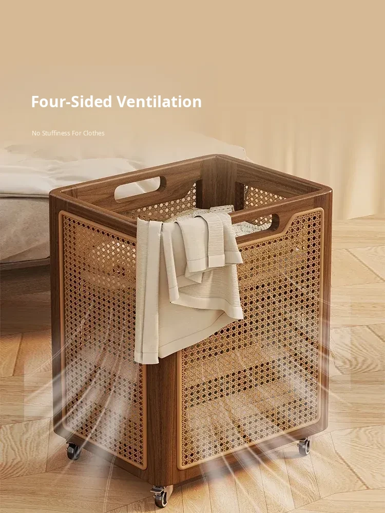 Solid Wood Laundry Basket - Rattan Woven Hamper for Home Use - Large Capacity Storage Bin for Clothes - Perfect for Bedrooms and Balcony Toy Organizing