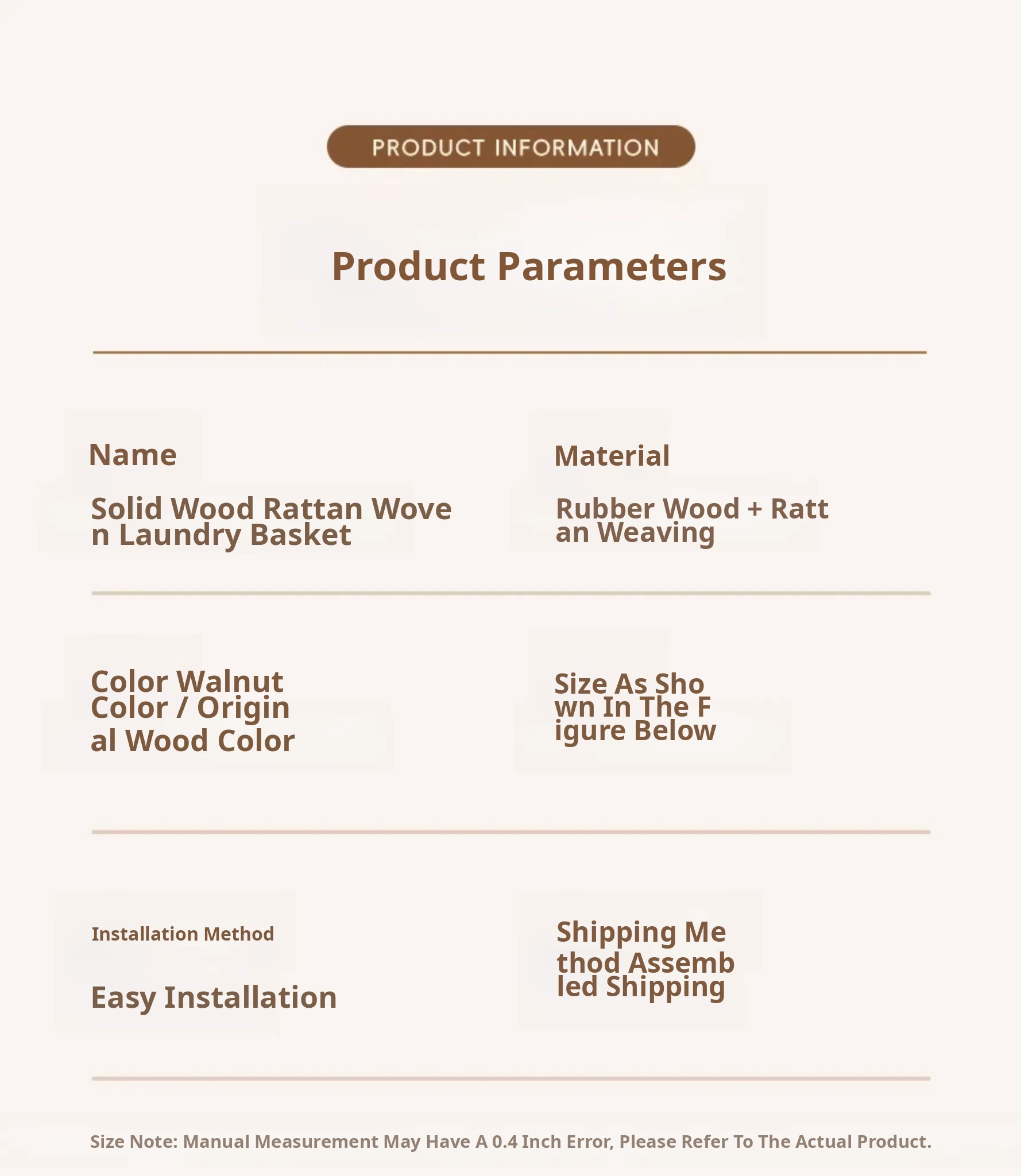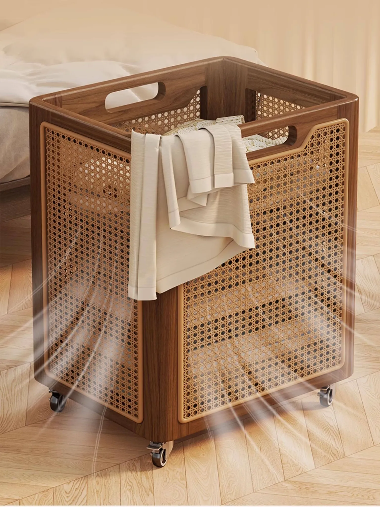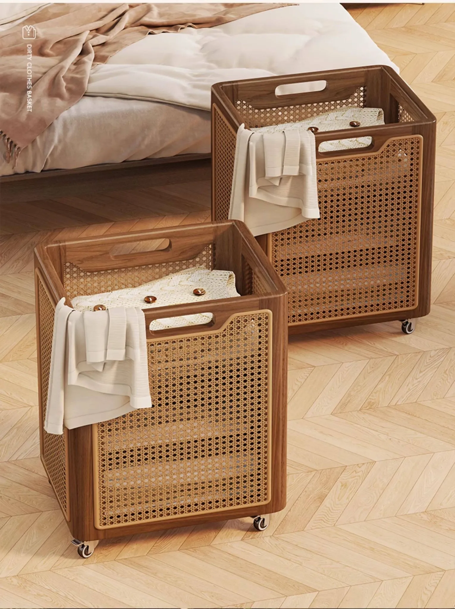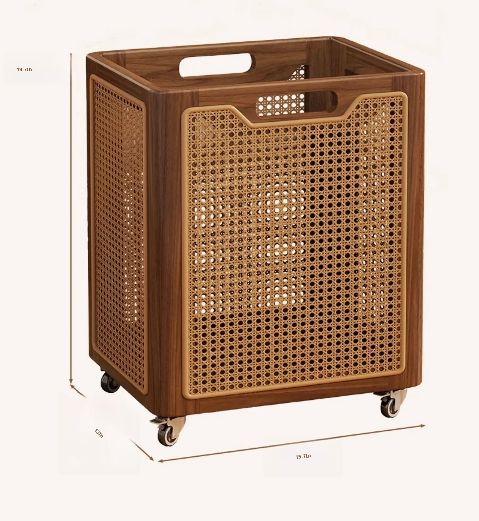 Solid Wood Laundry Basket - Rattan Woven Hamper for Home Use - Large Capacity Storage Bin for Clothes - Perfect for Bedrooms and Balcony Toy Organizing