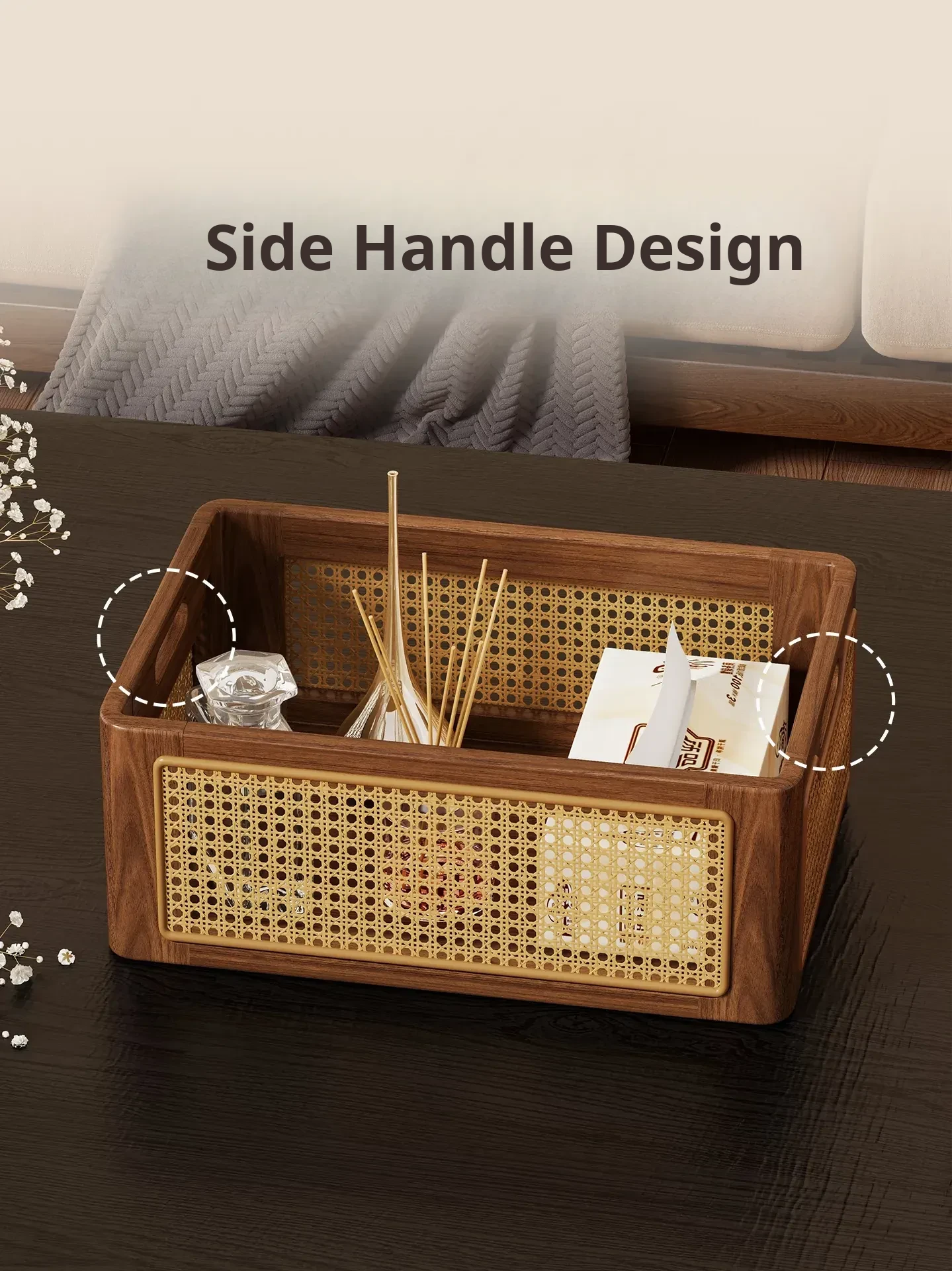 Solid Wood Storage Basket - Stylish Organizer for Home Cabinets, Kitchen Essentials, and Desktop Clutter. Perfect for Household Use and Efficient Storage Solution.