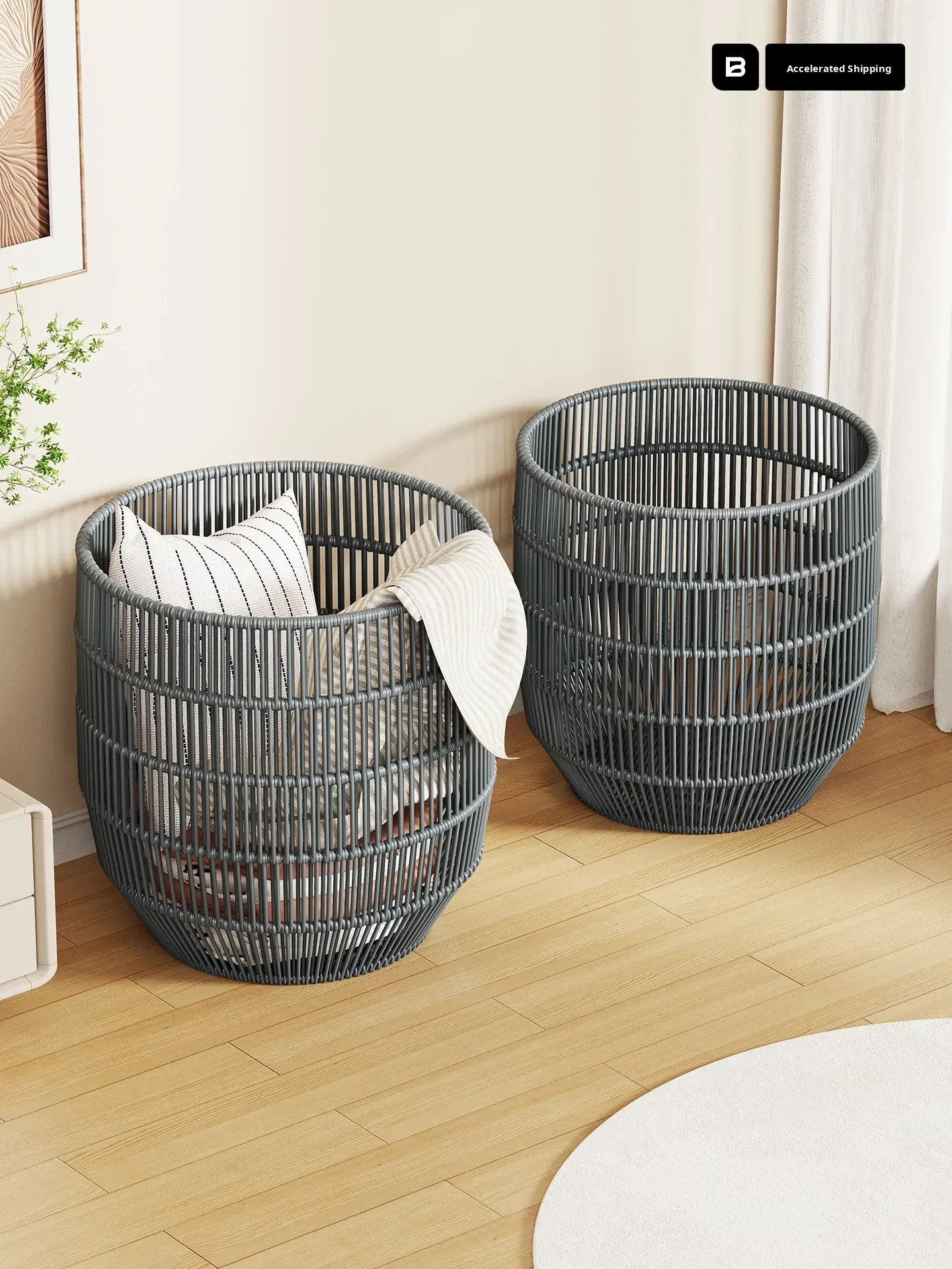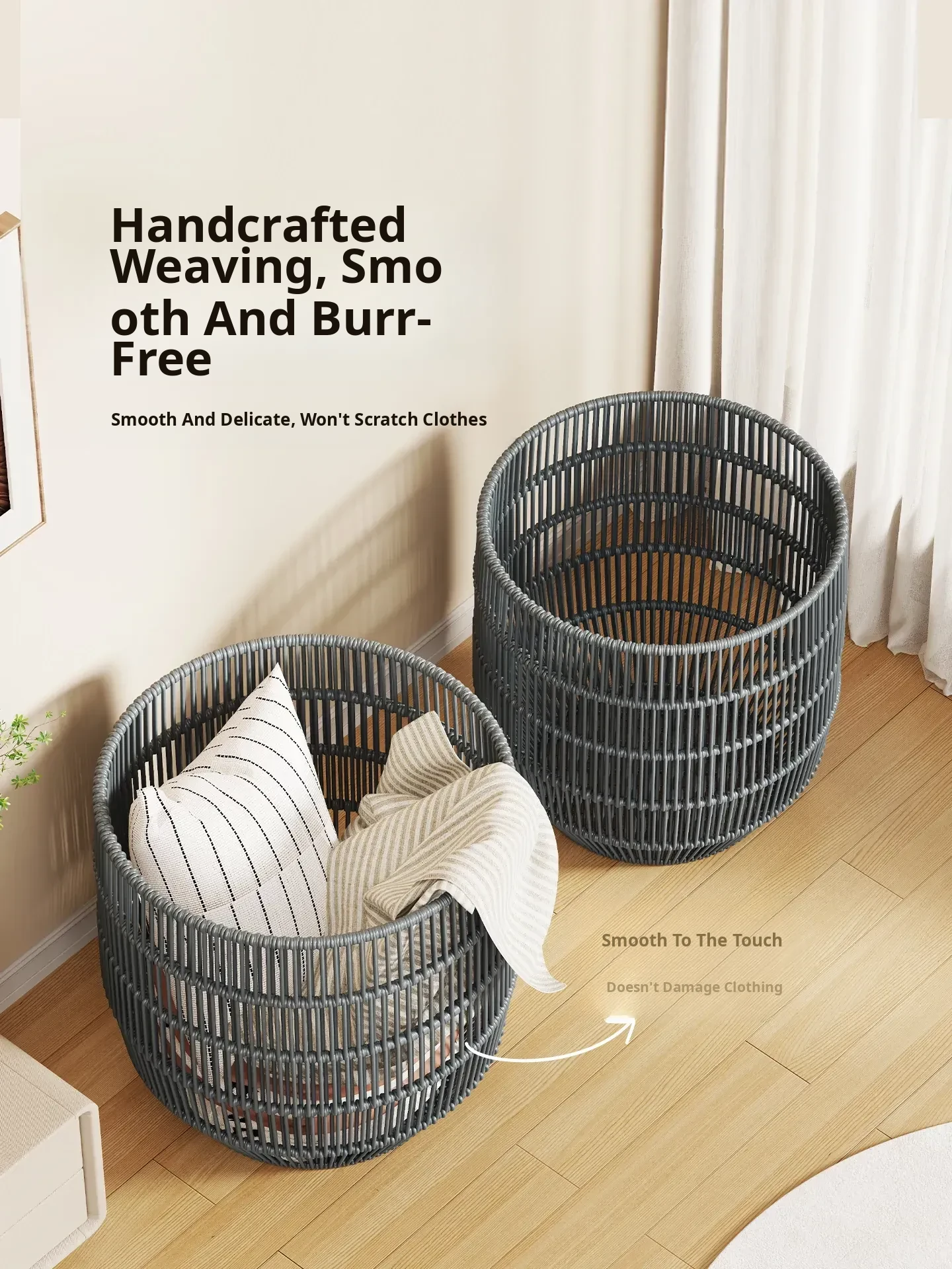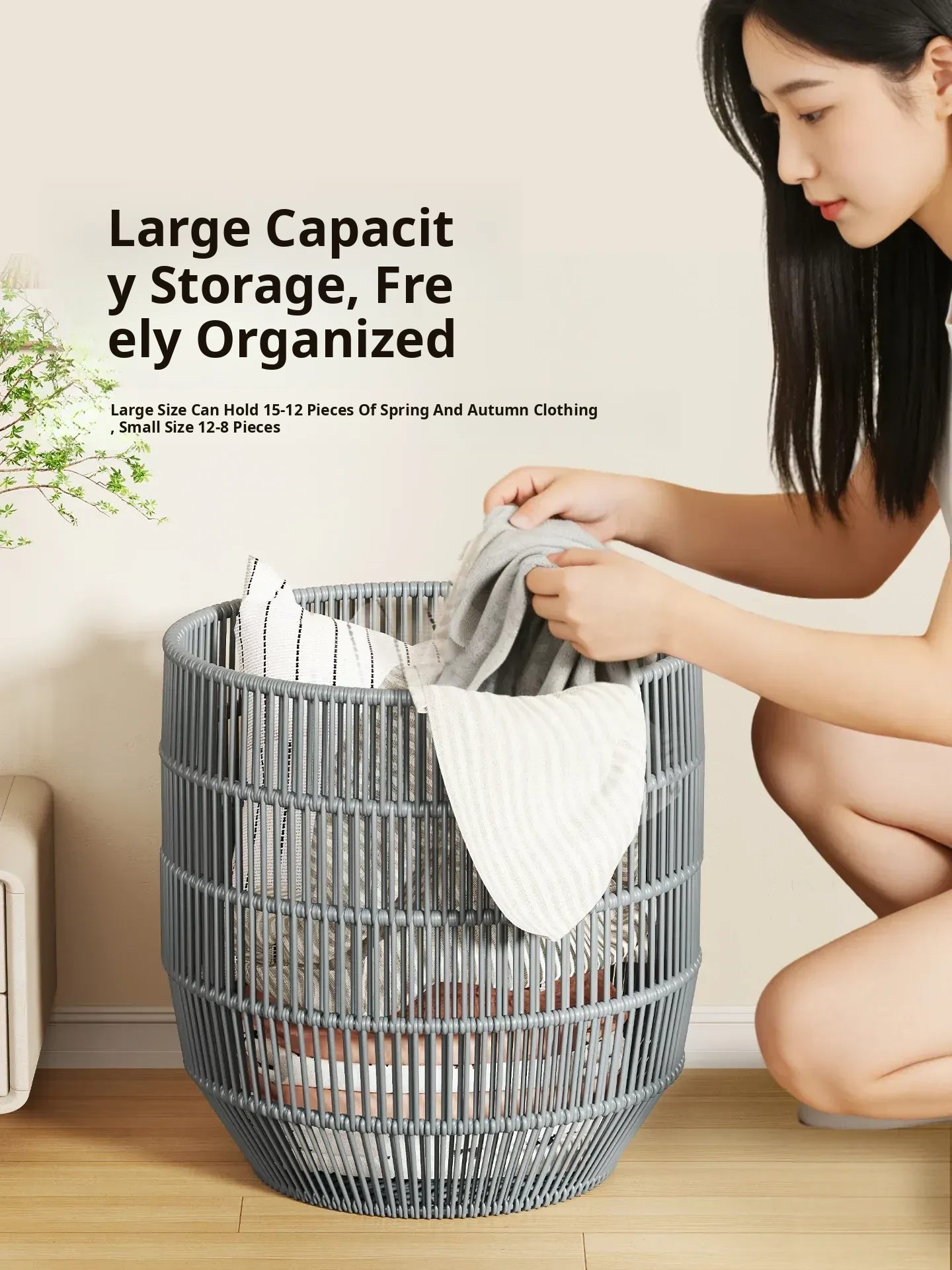 Stylish Rattan-Style Laundry Basket - High-Quality, Large-Capacity Hamper for Home Use, Perfect for Bathrooms and Laundry Rooms, Elegant Storage Solution for Dirty Clothes