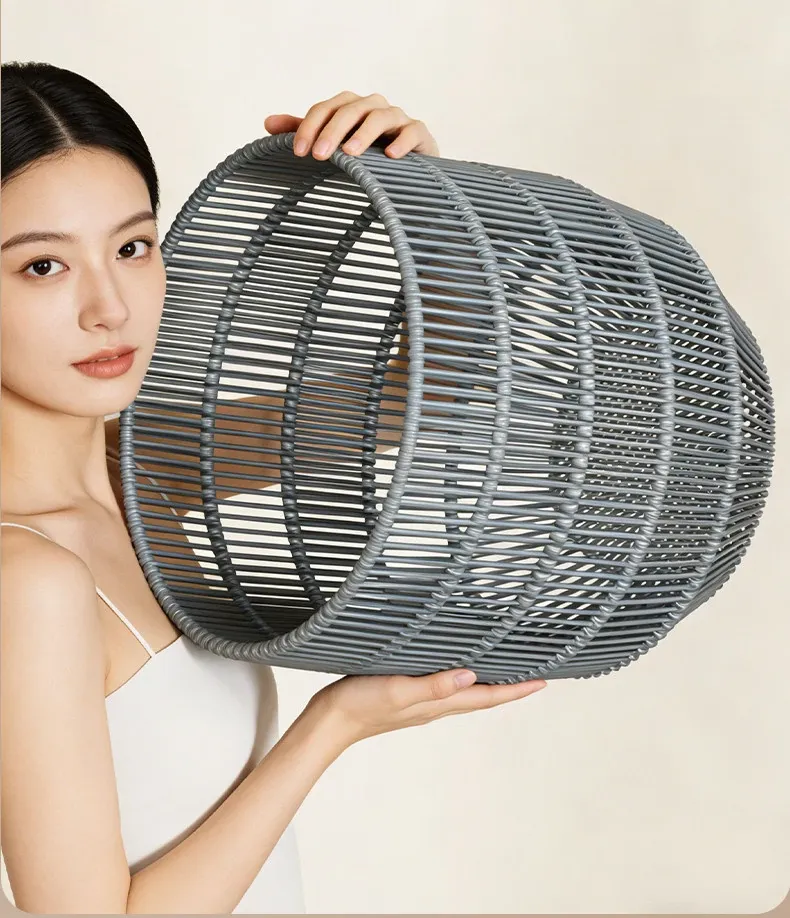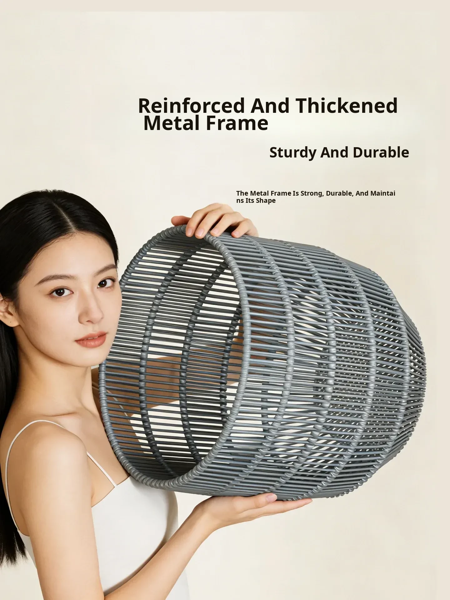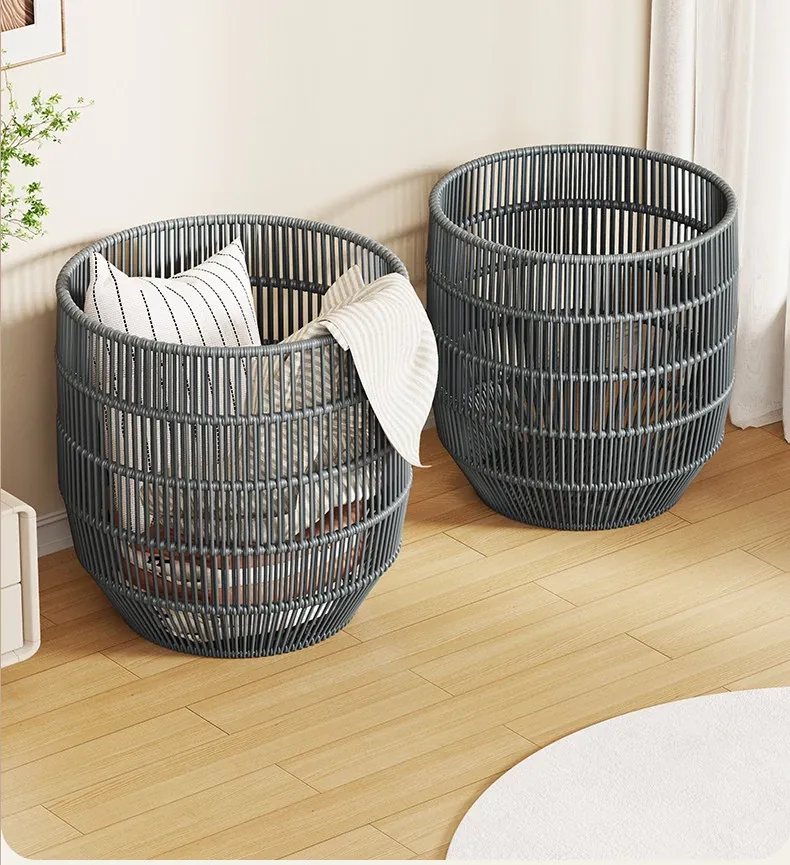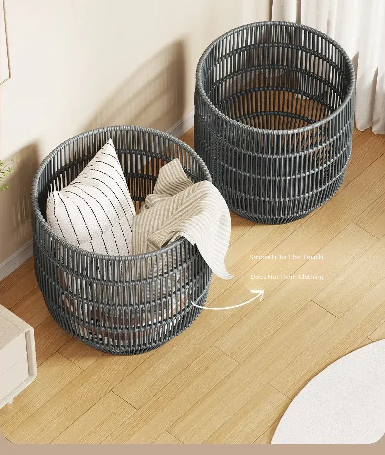 Stylish Rattan-Style Laundry Basket - High-Quality, Large-Capacity Hamper for Home Use, Perfect for Bathrooms and Laundry Rooms, Elegant Storage Solution for Dirty Clothes