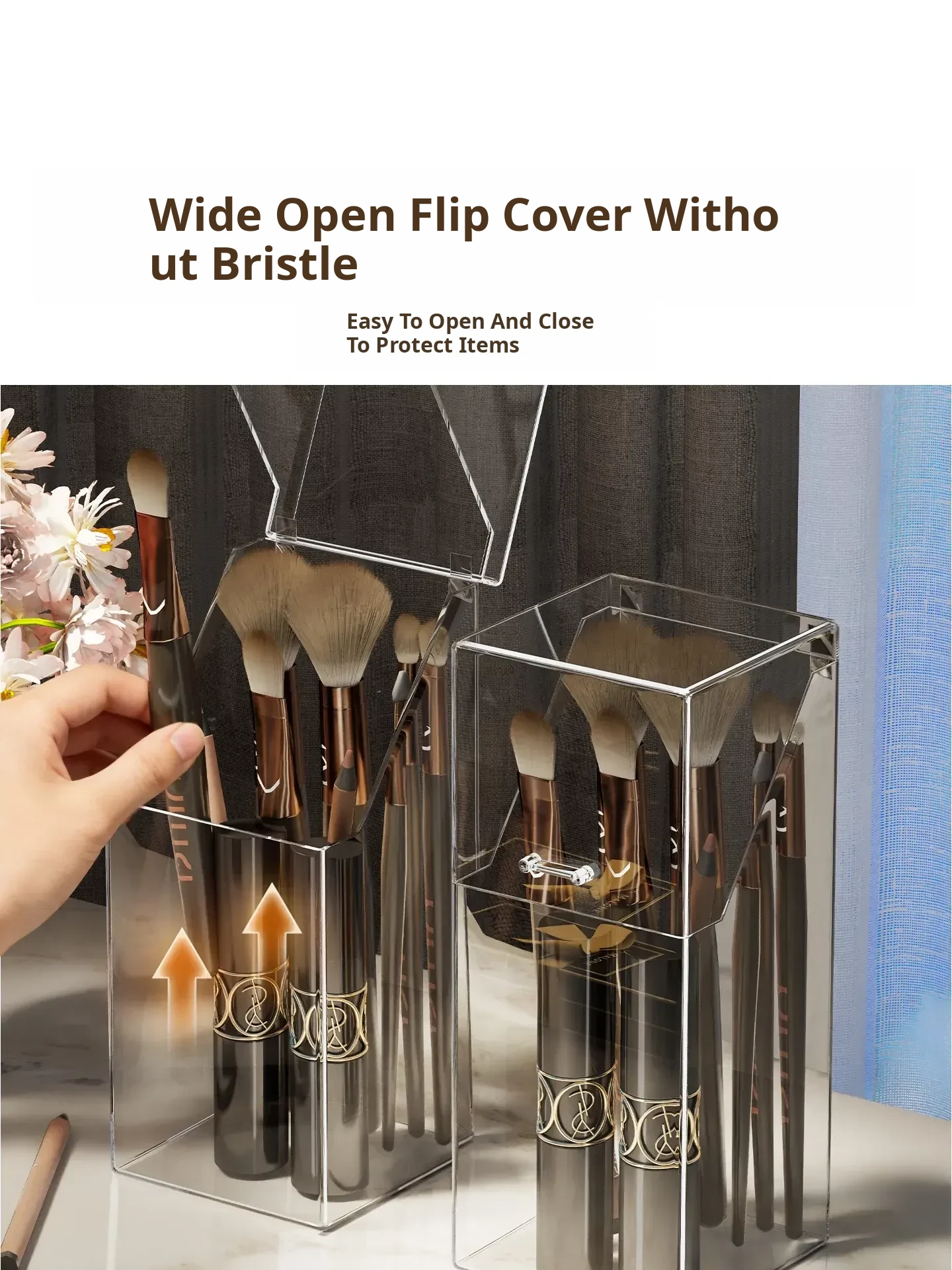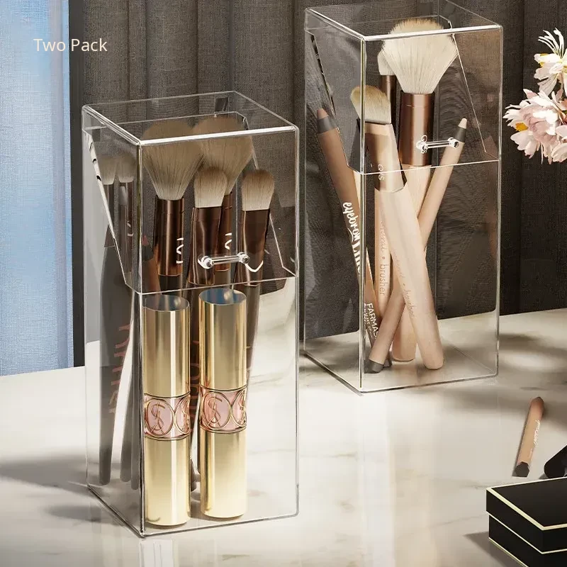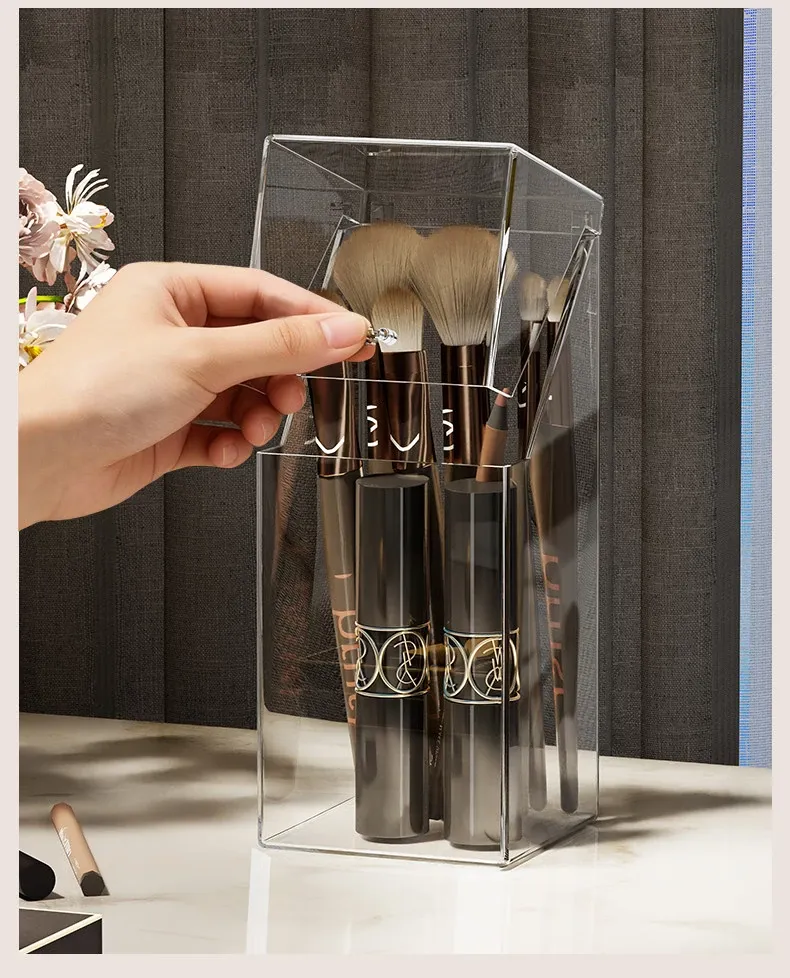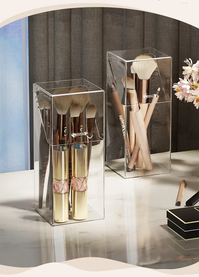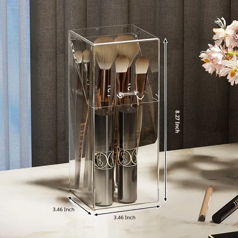 Transparent Makeup Brush Organizer with Lid – Dustproof Cosmetic Storage for Eyeshadow Brushes and Lipsticks – Stylish Vanity Display Holder