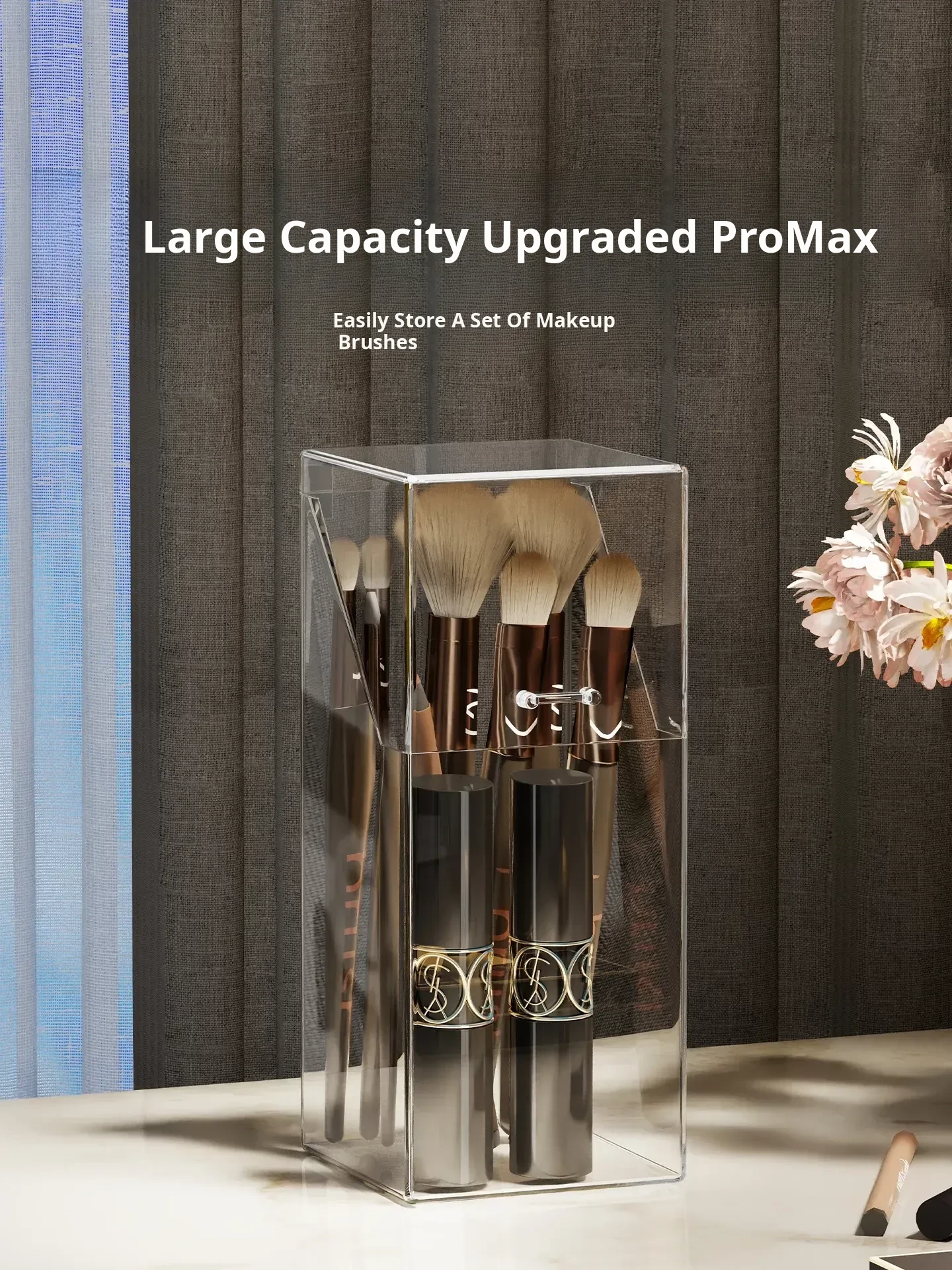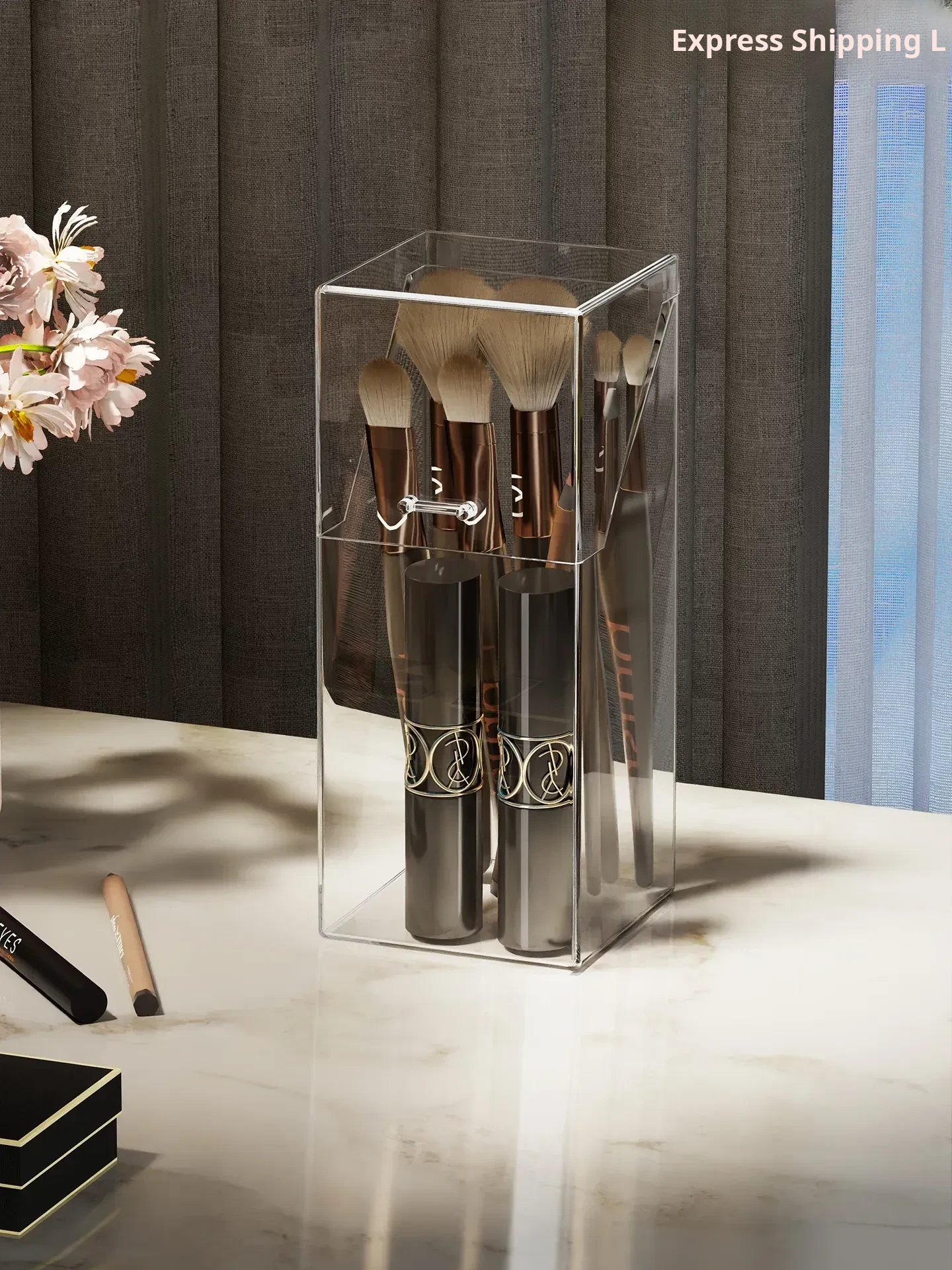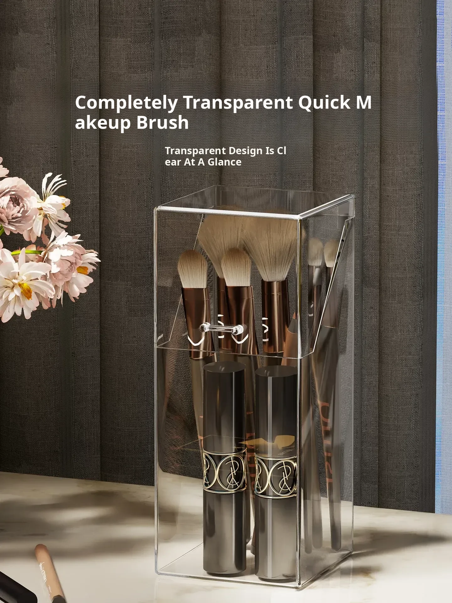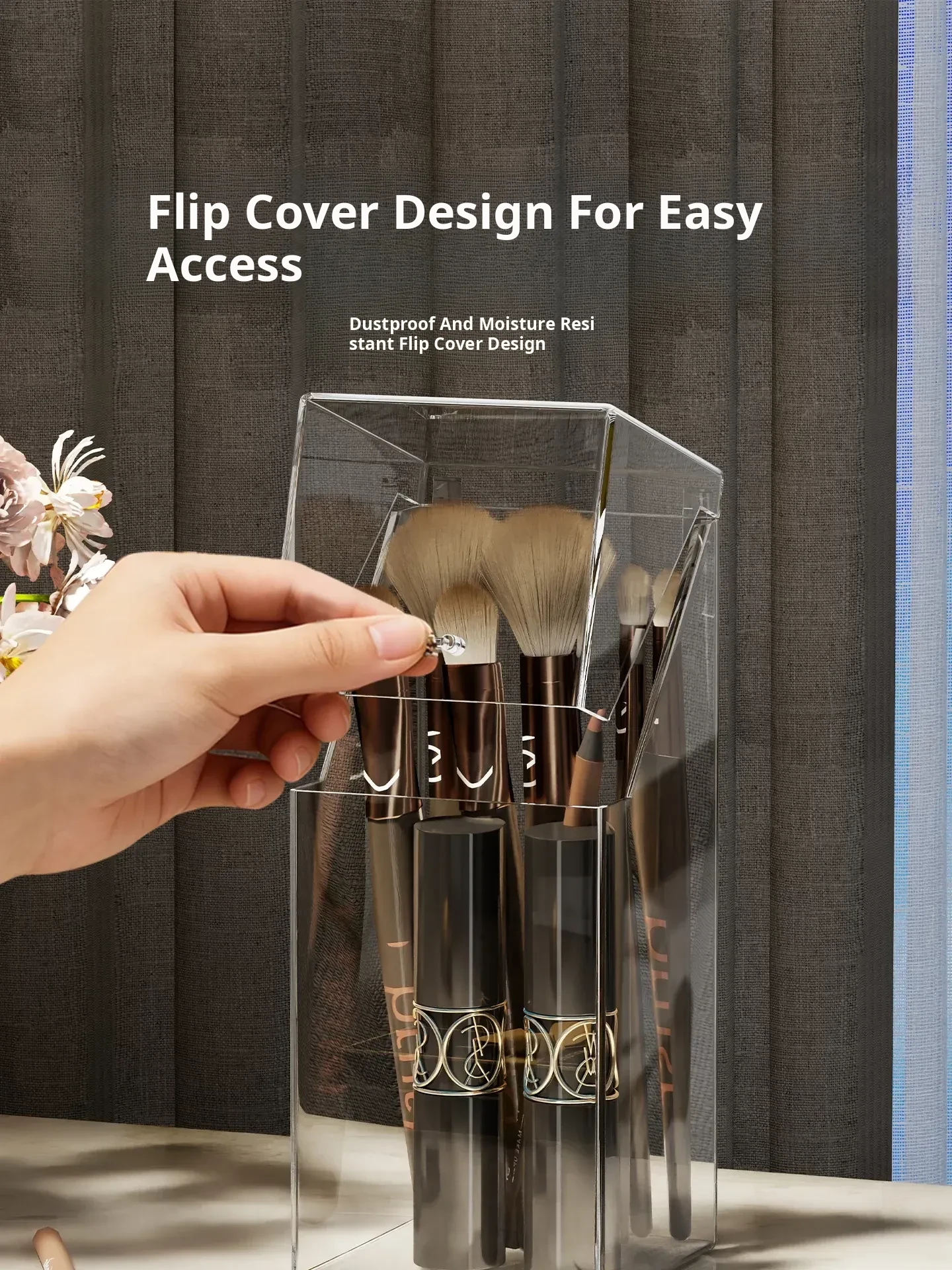 Transparent Makeup Brush Organizer with Lid – Dustproof Cosmetic Storage for Eyeshadow Brushes and Lipsticks – Stylish Vanity Display Holder