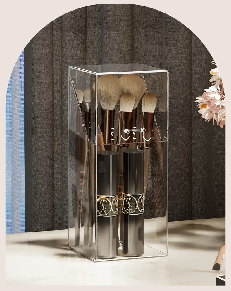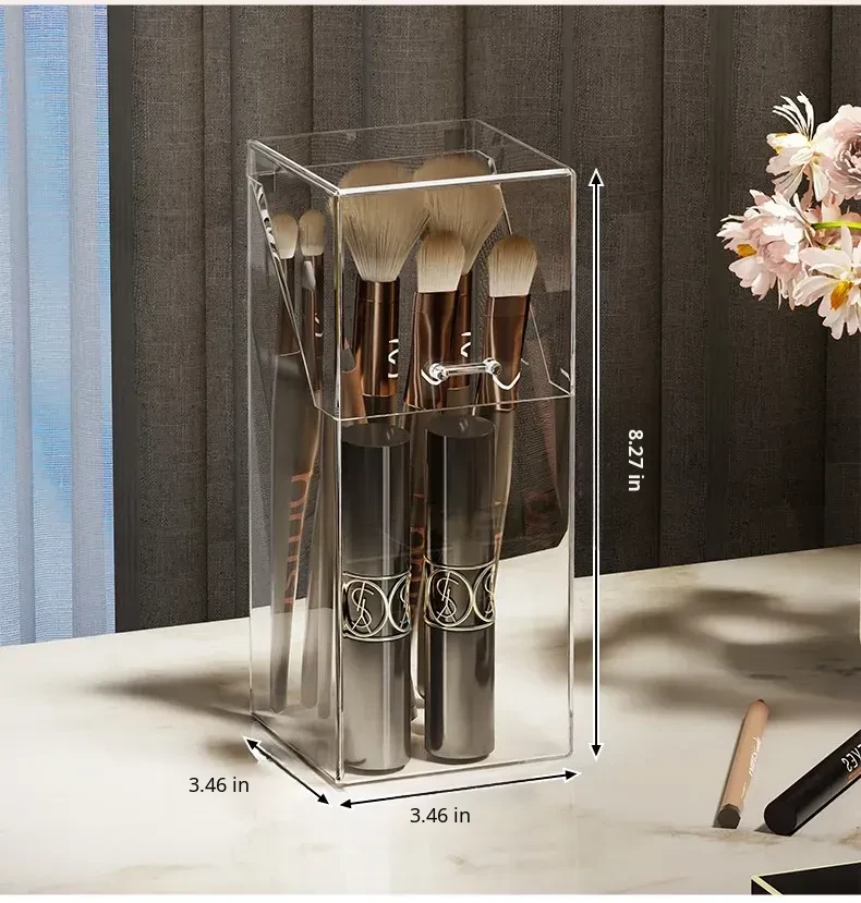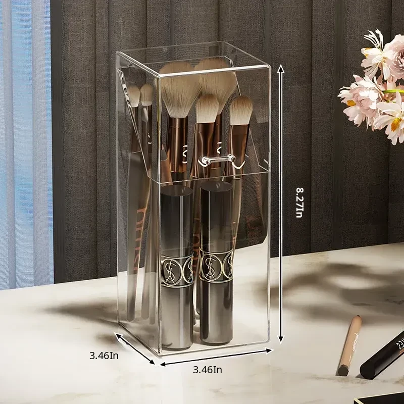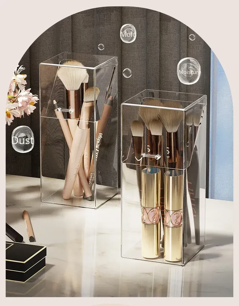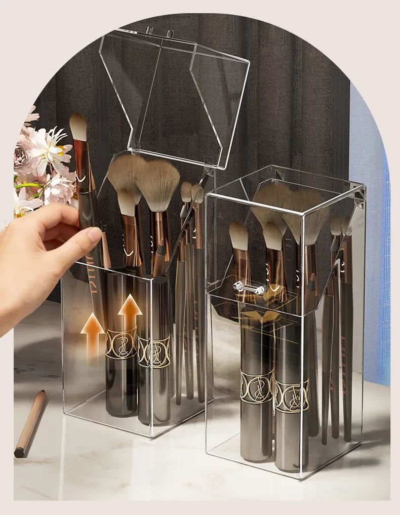 Transparent Makeup Brush Organizer with Lid - Stylish Desktop Storage for Lipstick, Eyeshadow Brushes, and Cosmetics, Dustproof Makeup Holder for a Clutter-Free Space