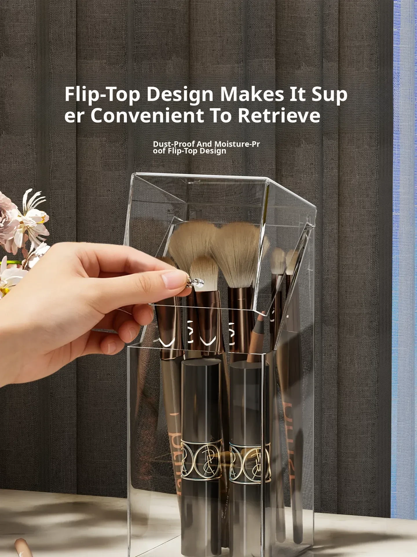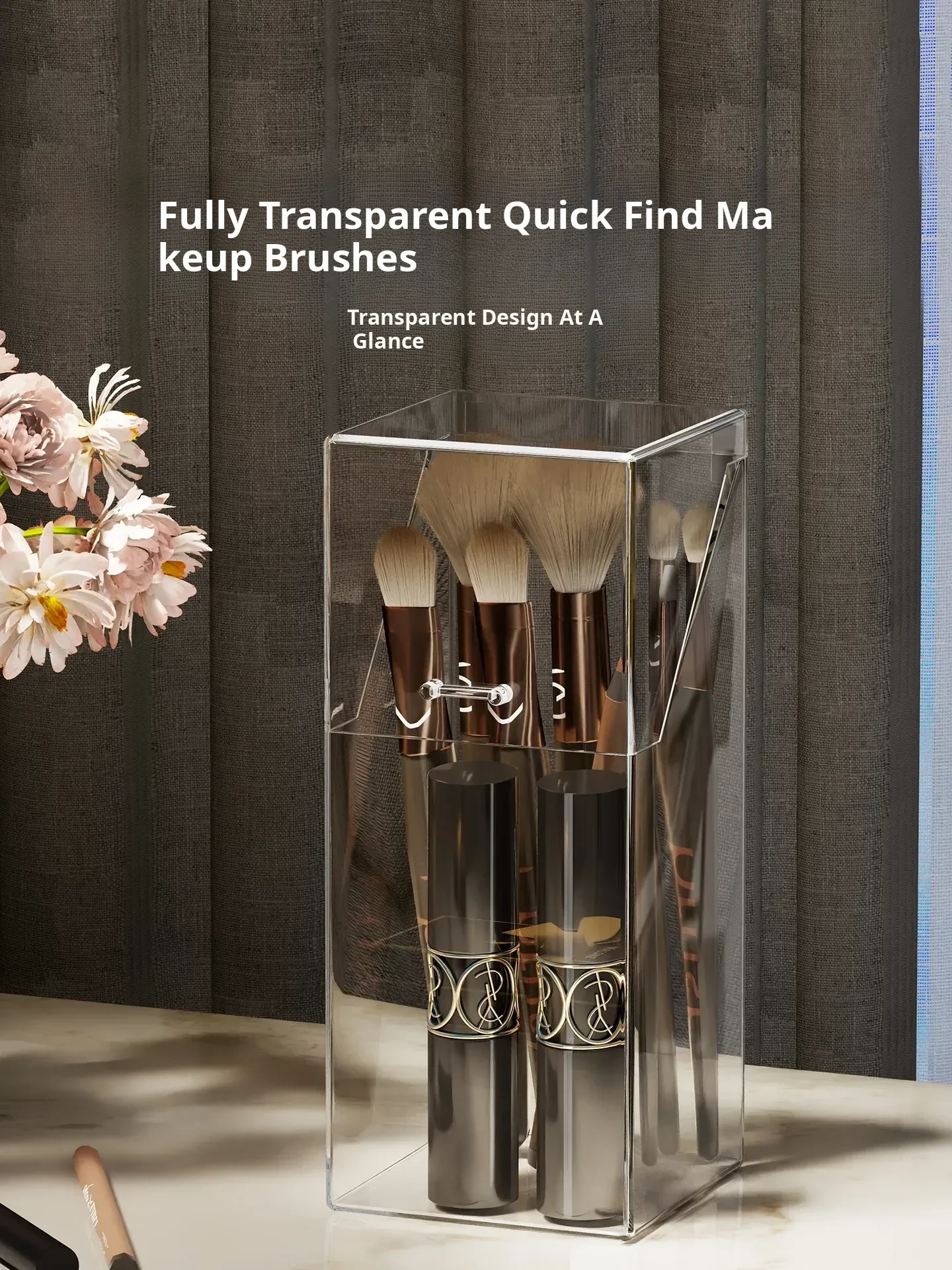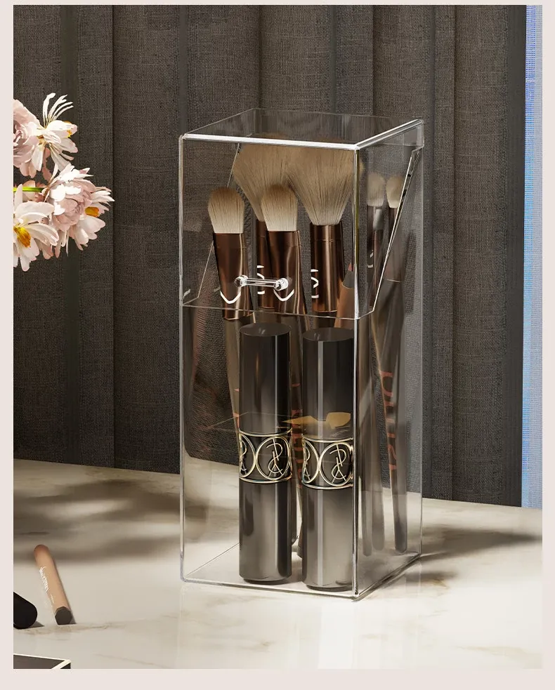 Transparent Makeup Brush Organizer with Lid - Stylish Desktop Storage for Lipstick, Eyeshadow Brushes, and Cosmetics, Dustproof Makeup Holder for a Clutter-Free Space