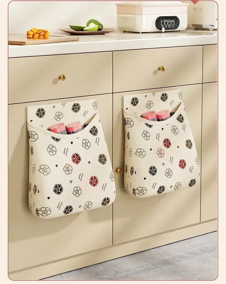 Wall-Mounted Storage Bag Organizer for Kitchen - Versatile Plastic Bag and Cling Film Holder with Magic Tape Pocket - Keep Your Space Tidy and Efficient!