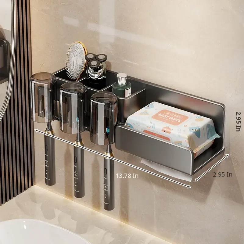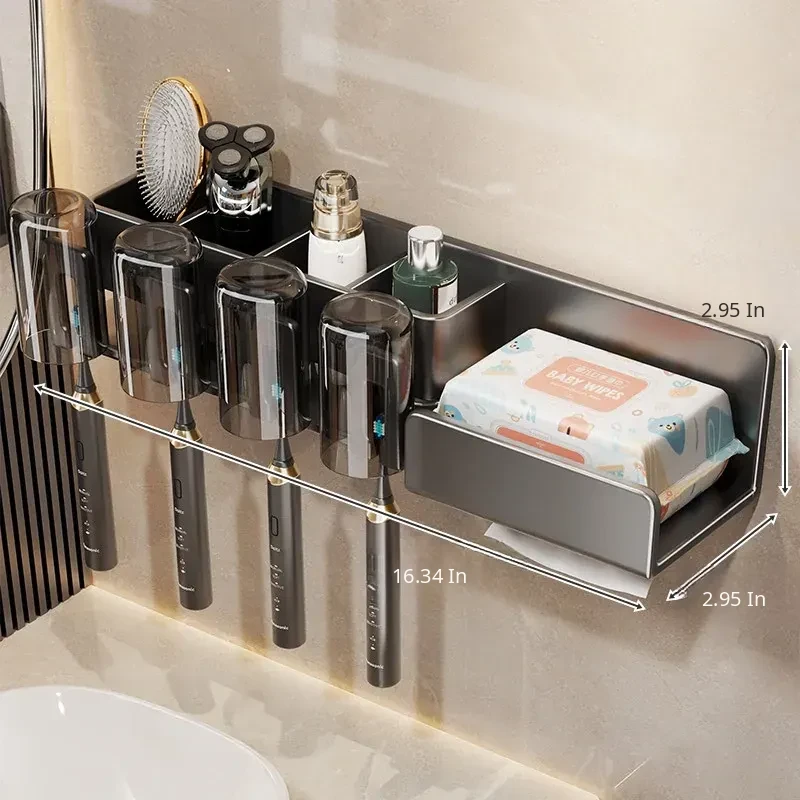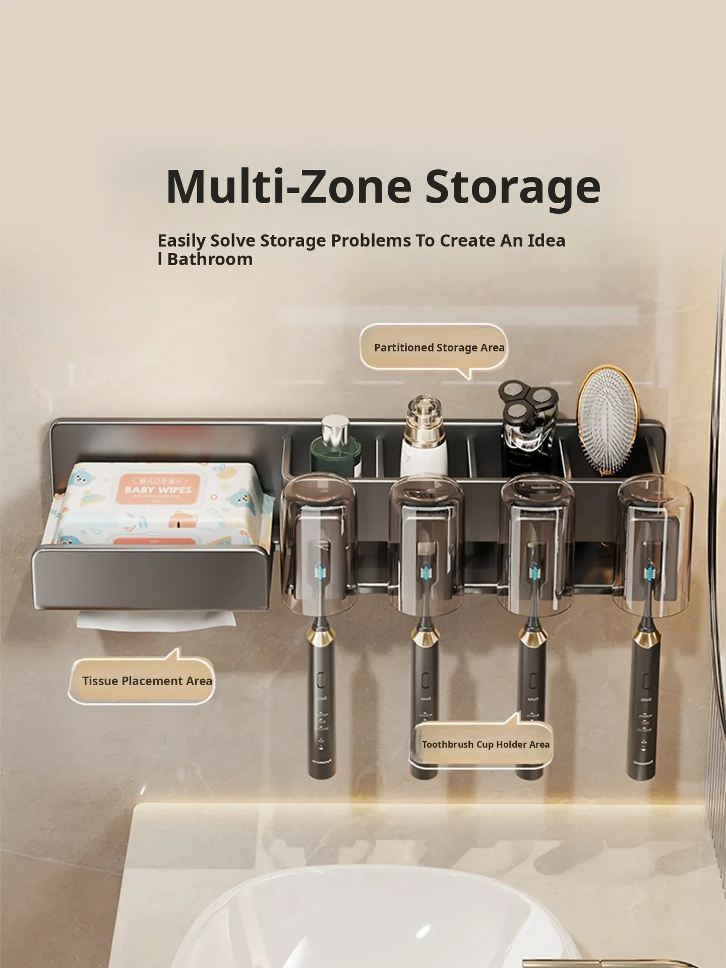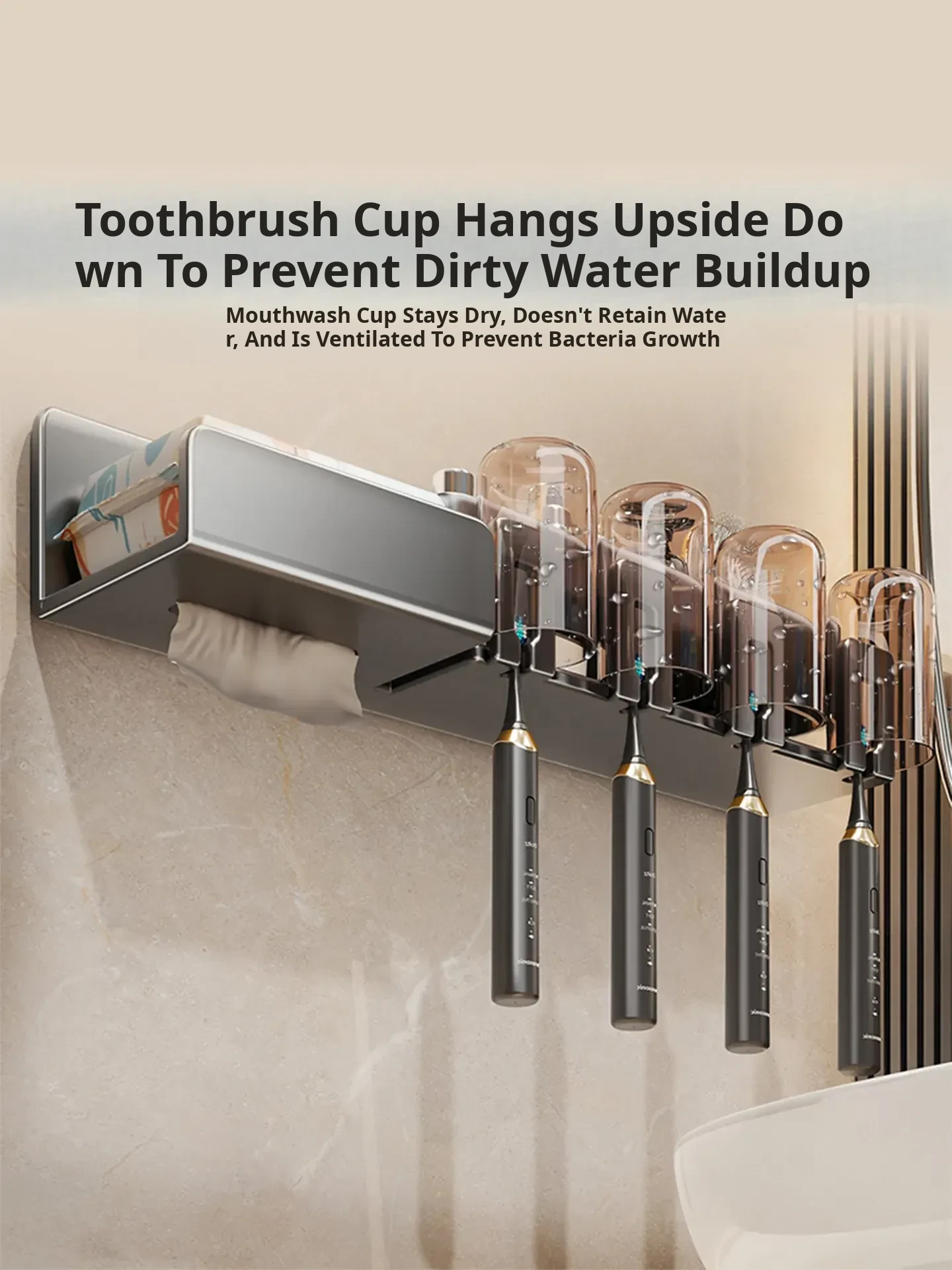 Wall-Mounted Toothbrush Holder with No Drilling - All-in-One Storage Rack for Bathroom, Includes Toothbrush and Rinsing Cup Organizer, Perfect for Space-Saving and Keeping Your Bathroom Neat and Tidy!