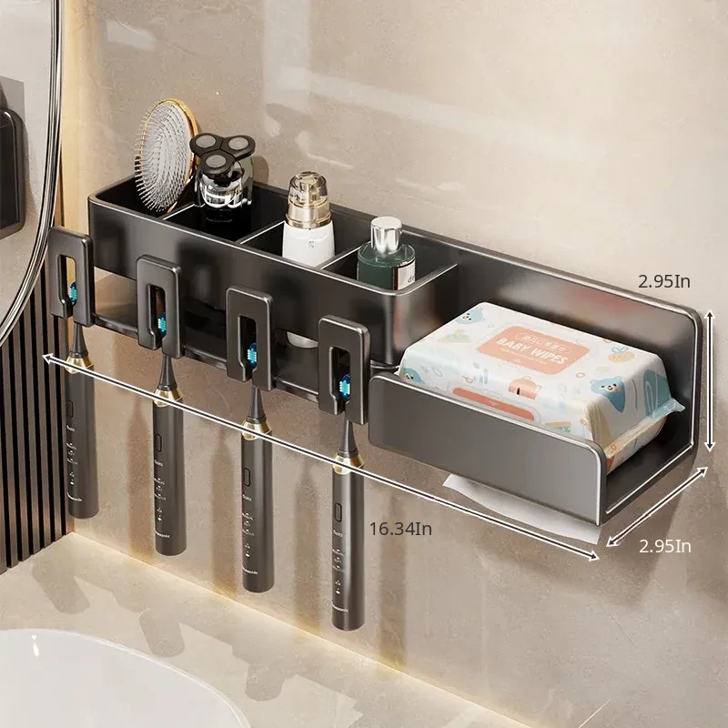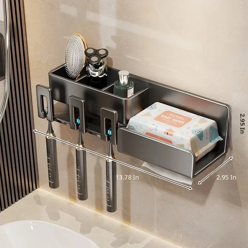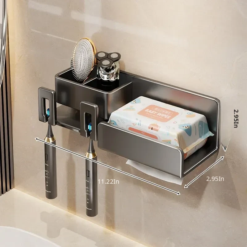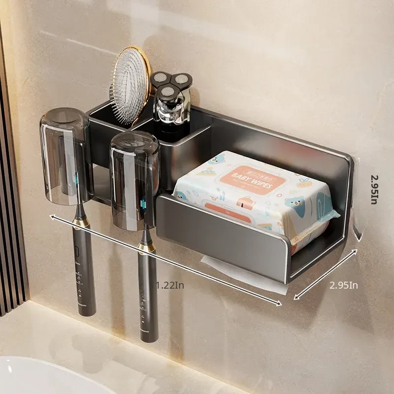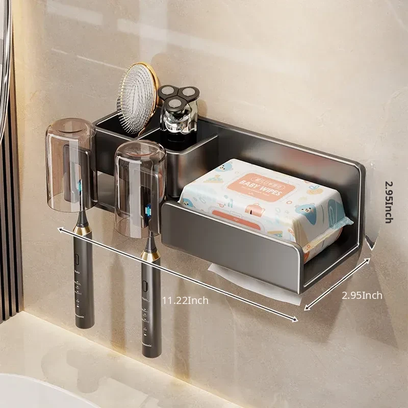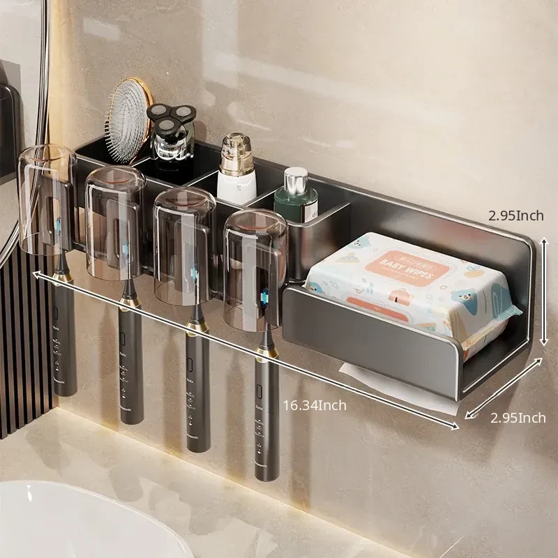 Wall-Mounted Toothbrush Holder with No Drilling - All-in-One Storage Rack for Bathroom, Includes Toothbrush and Rinsing Cup Organizer, Perfect for Space-Saving and Keeping Your Bathroom Neat and Tidy!
