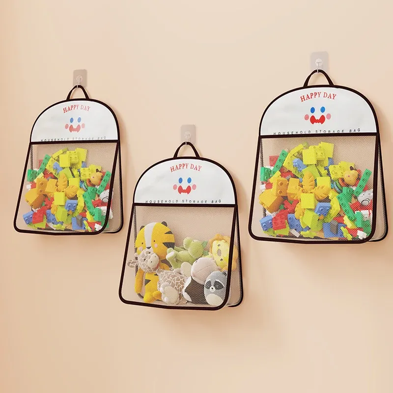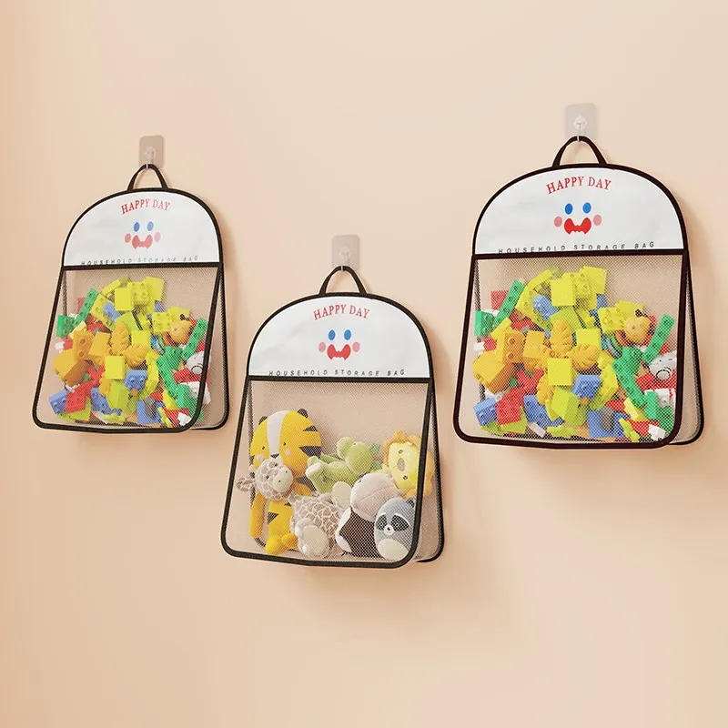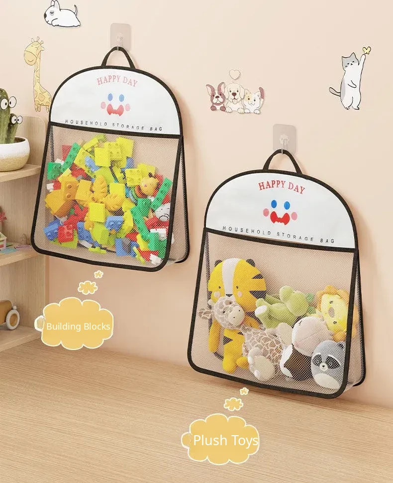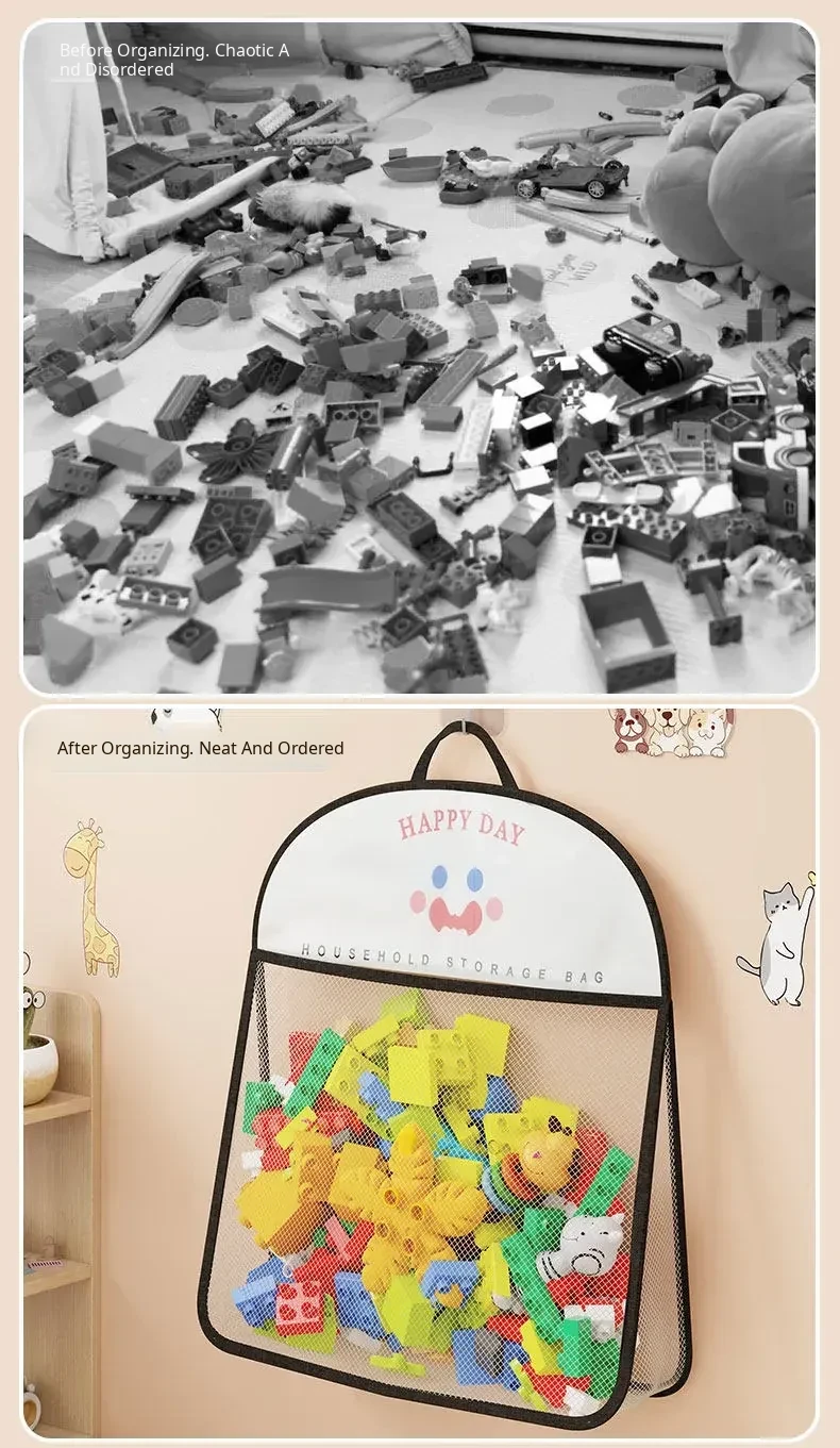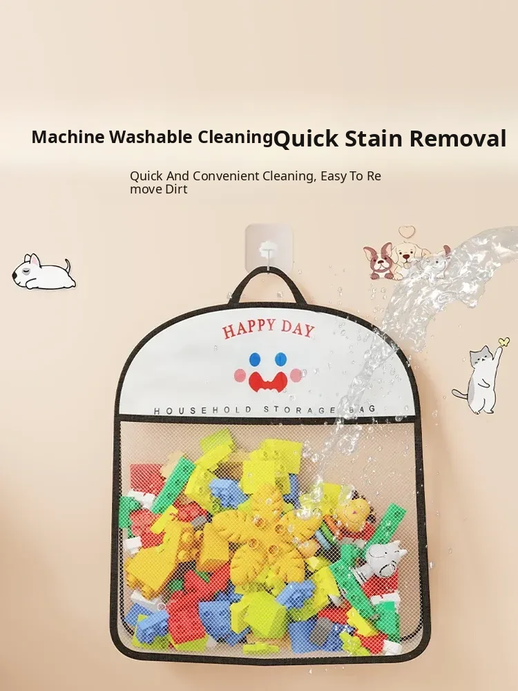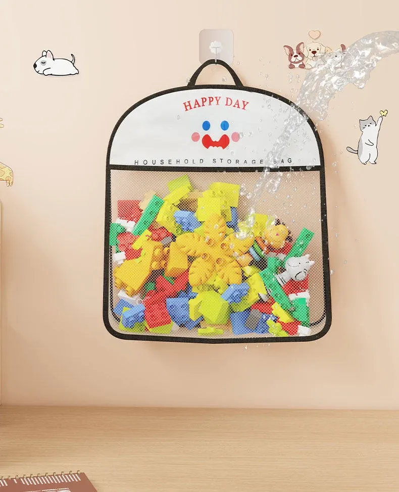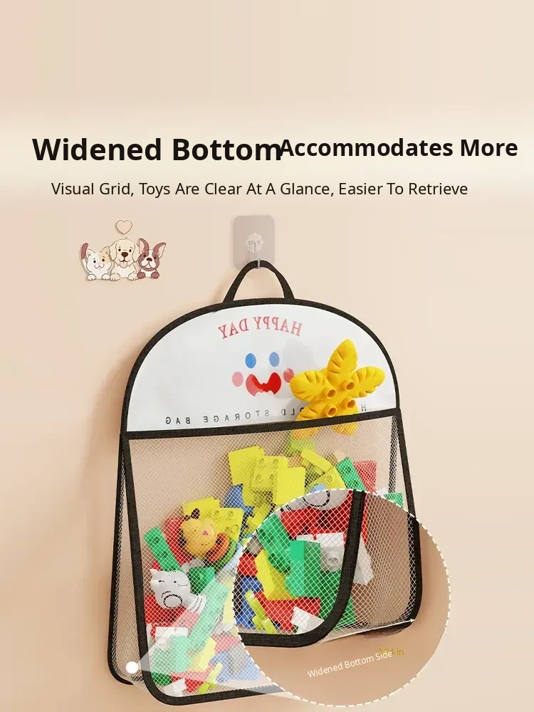 Wall-Mounted Toy Storage Bag for Kids - Perfect for Organizing Bath Toys, Building Blocks, and Socks - Waterproof Mesh Pocket for Easy Draining and Neat Organization!