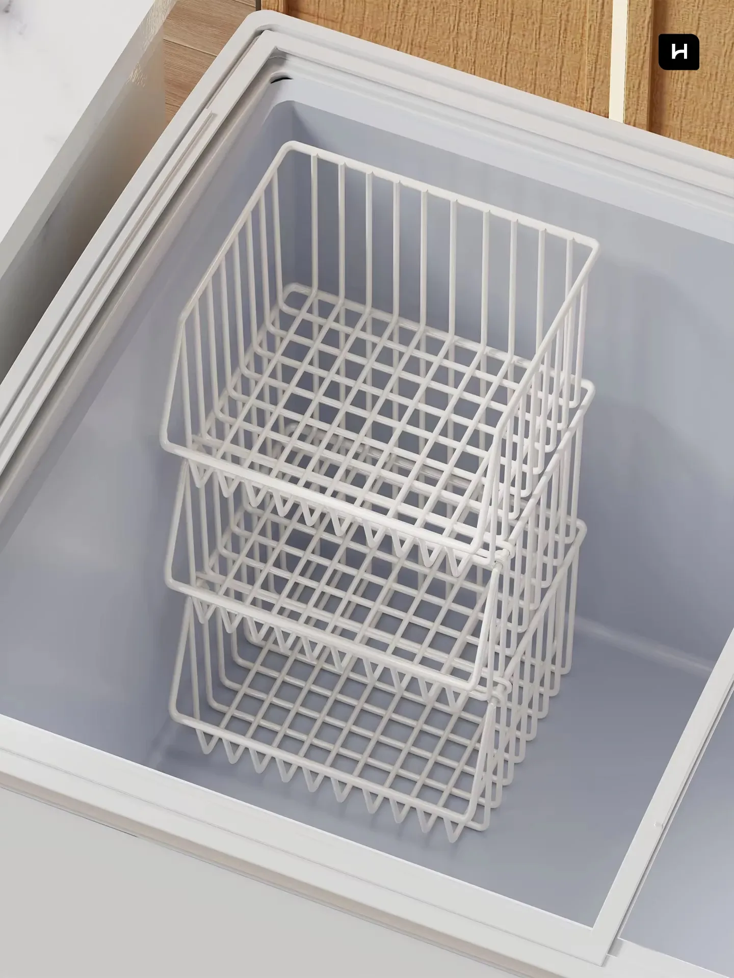 "Ultimate Freezer Organizer: Adjustable Storage Baskets & Dividers for Efficient Cold Storage - Maximize Space with Versatile Compartments!"